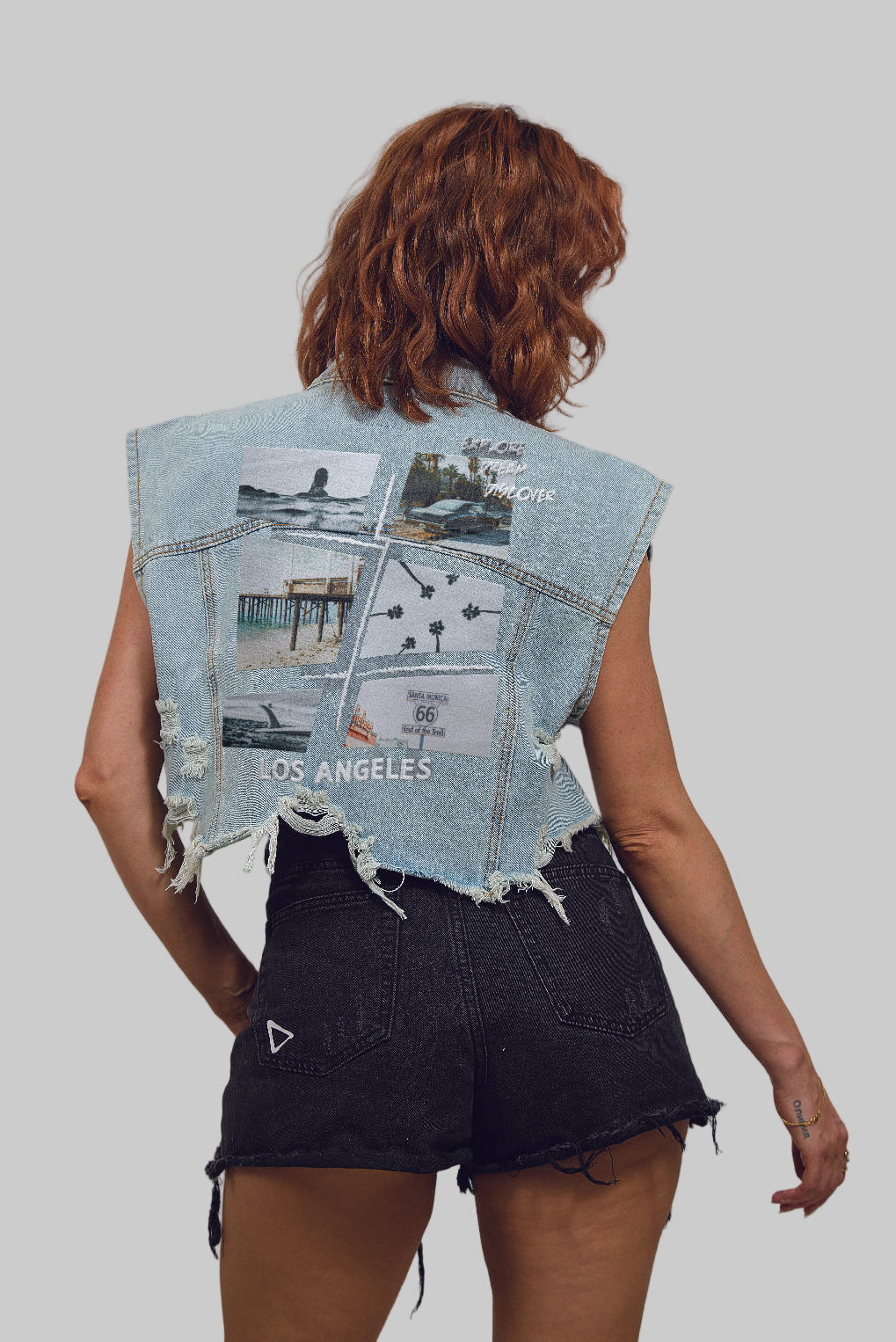 CITY OF ANGEL Cream font Women Cropped Denim Jacket