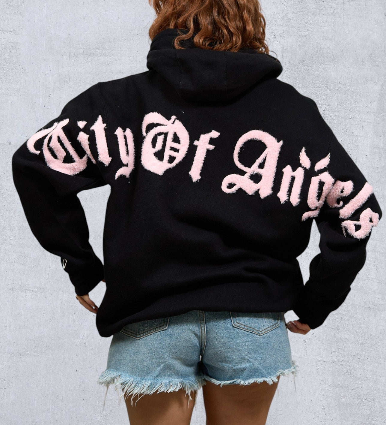 CITY OF ANGELS Pink Font Women Hooded sweatshirt