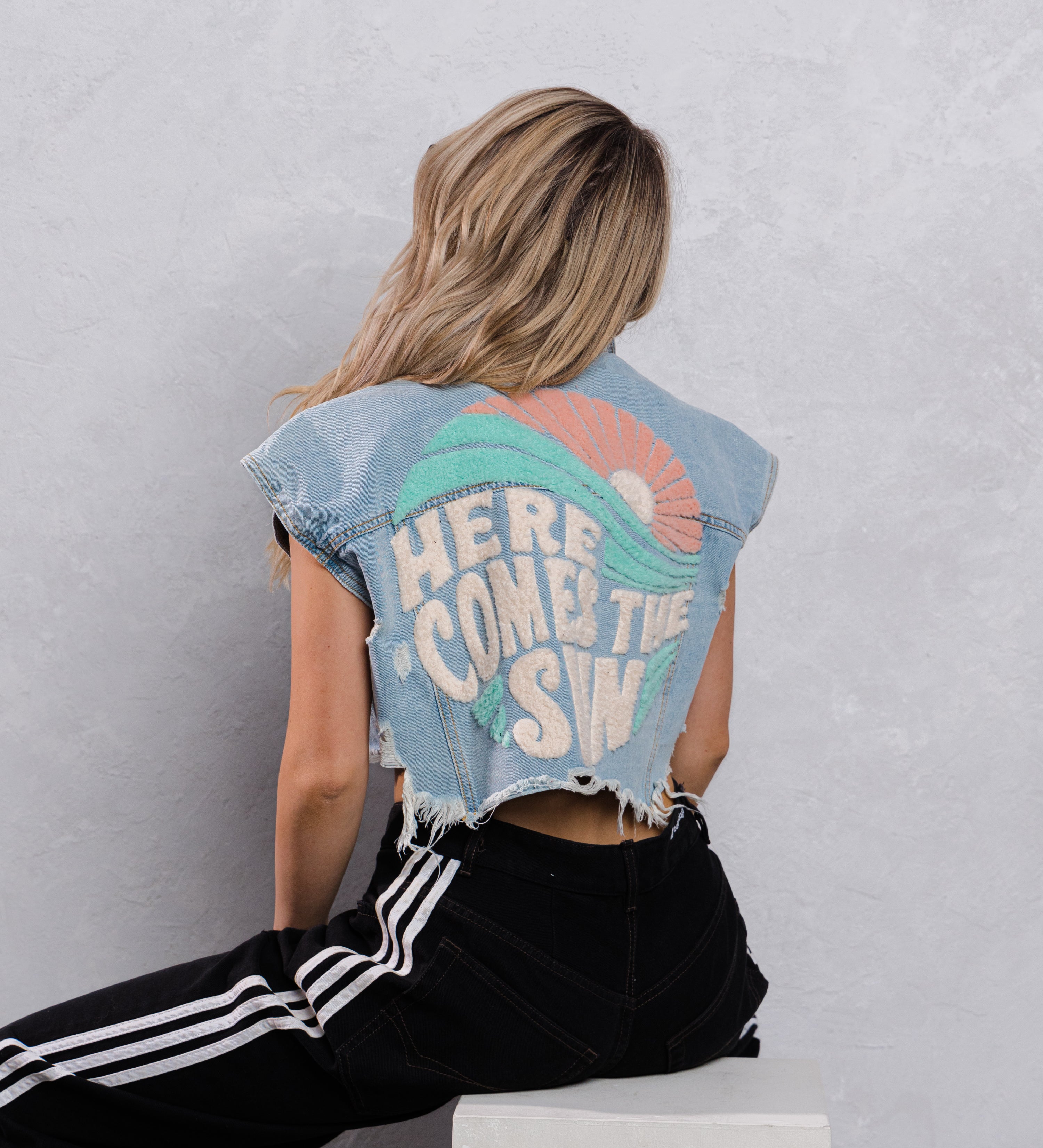 HERE COMES THE SUN Crop Denim Vest