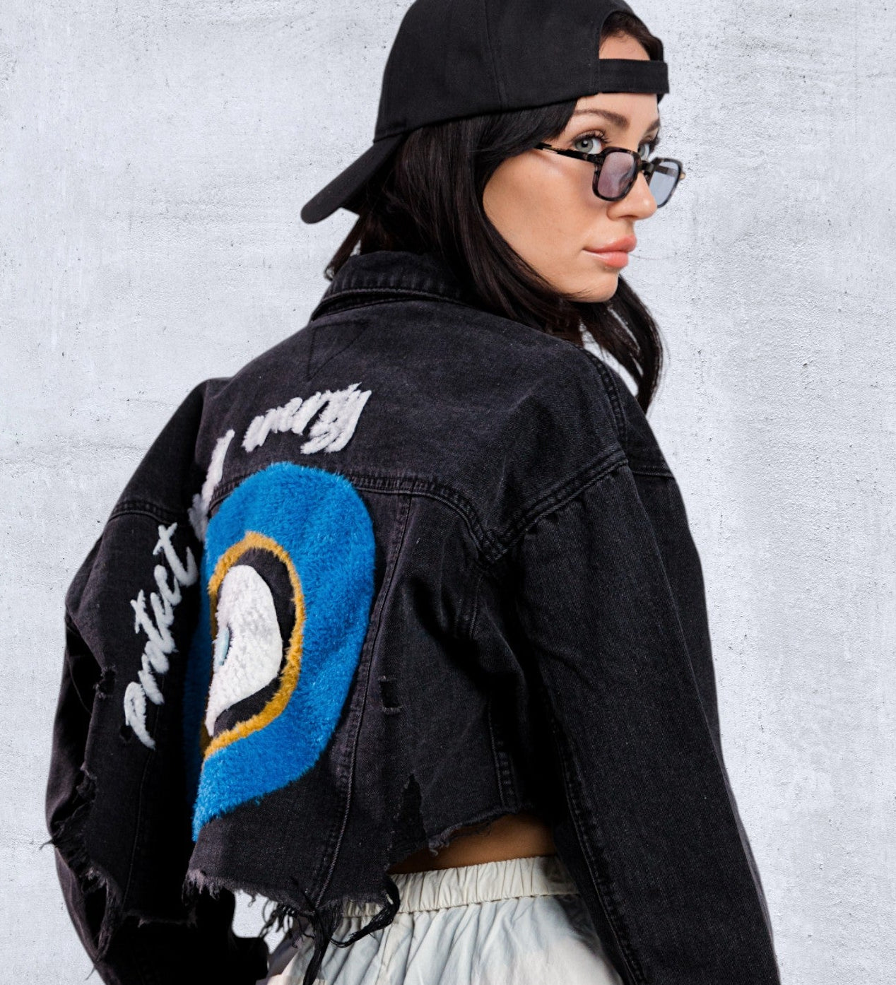PROTECT YOUR ENERGY Crop Denim Jacket