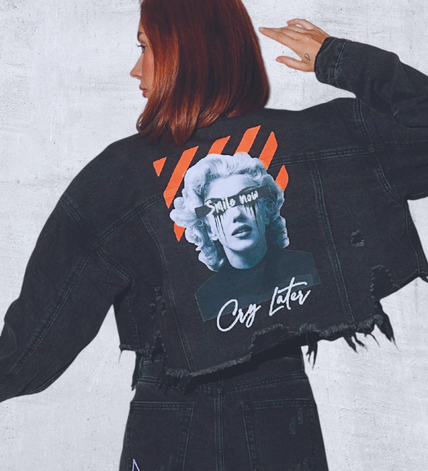 SMILE NOW CRY LATER Crop Denim Jacket