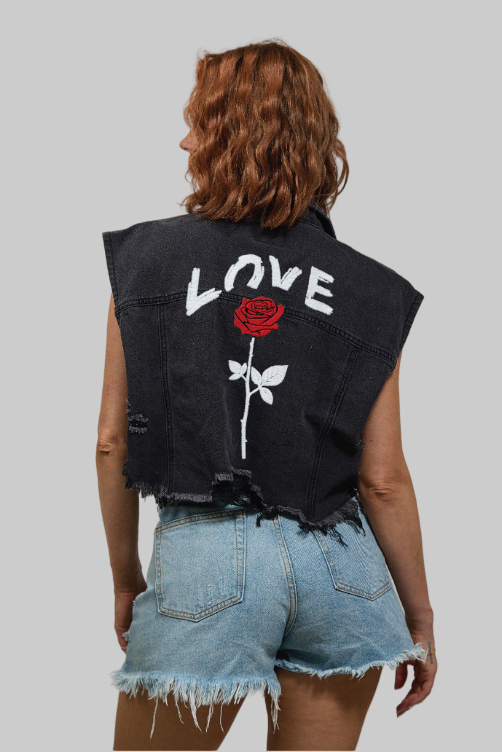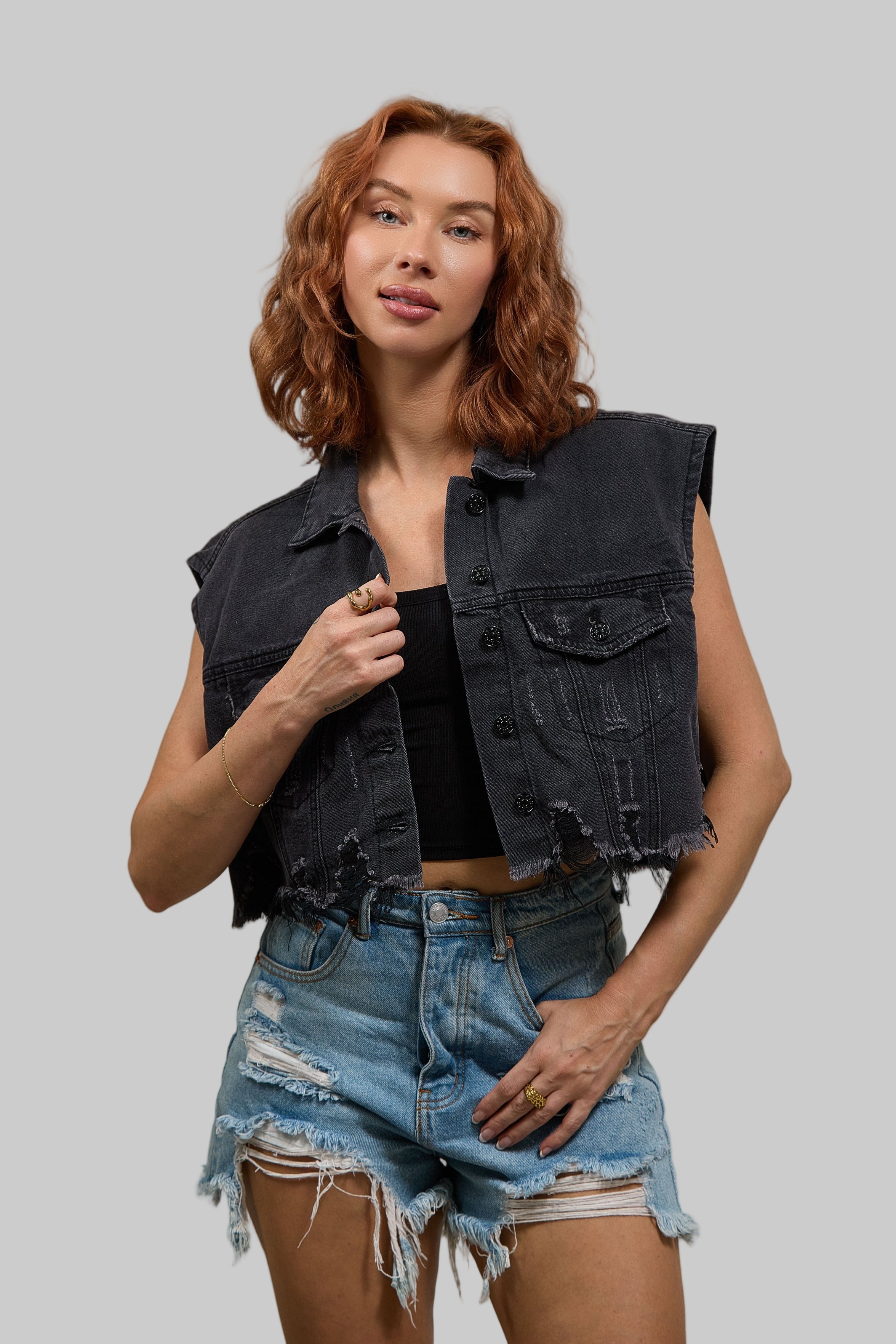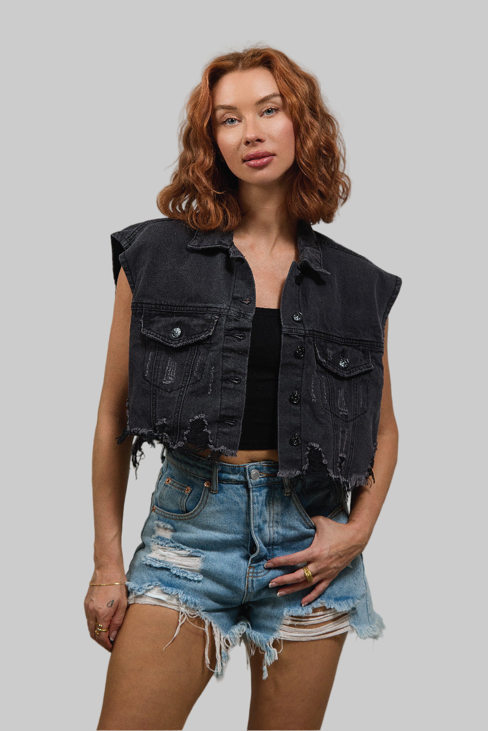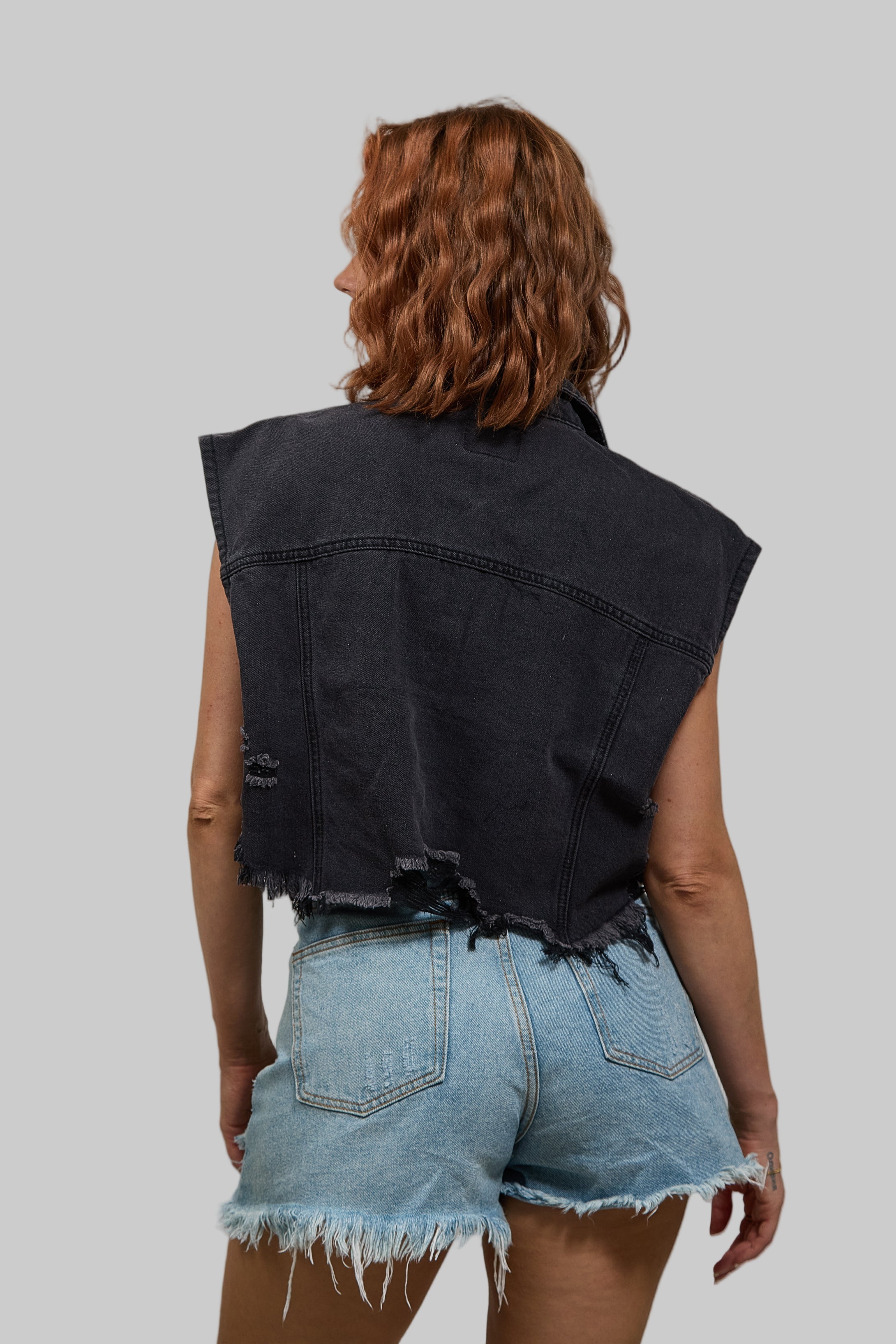 MARILYN SMILE NOW CRY LATER Crop Denim Vest