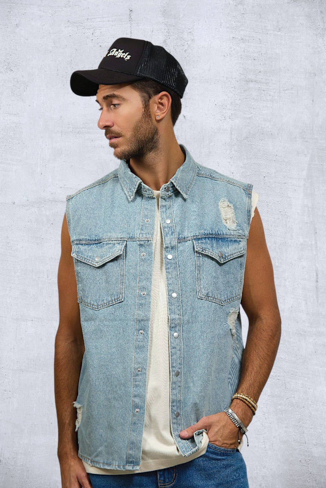CITY OF ANGELS Men Denim Vest Jacket