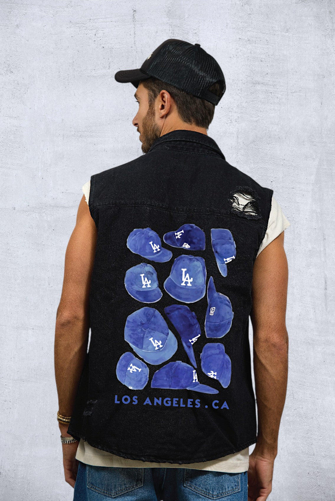 LA DODGERS Men Denim Vest Jacket
