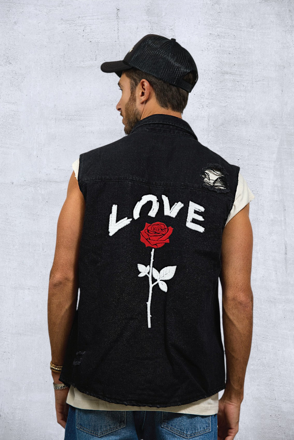 LOVE ROSE Men Denim Vest Jacket