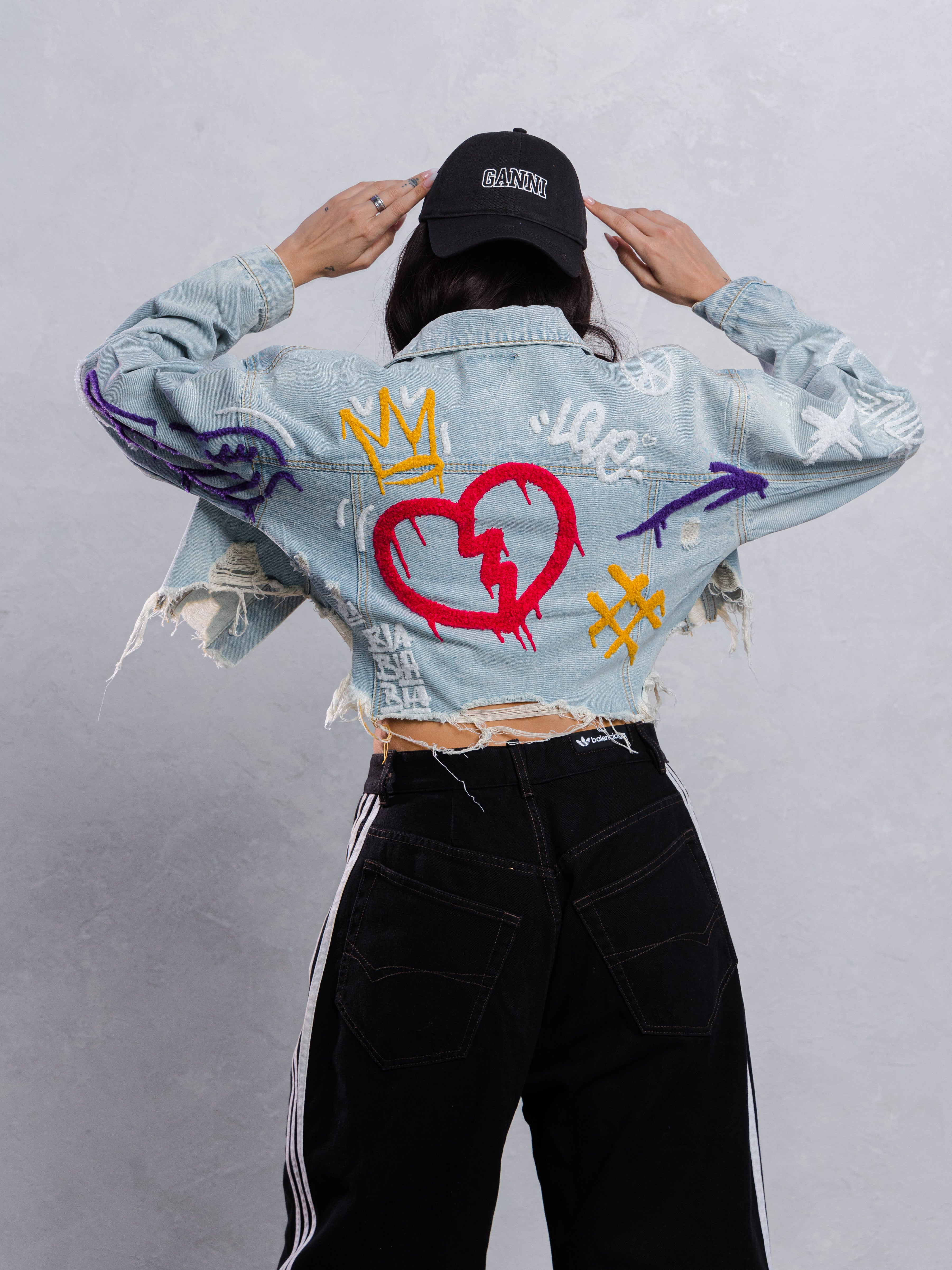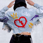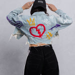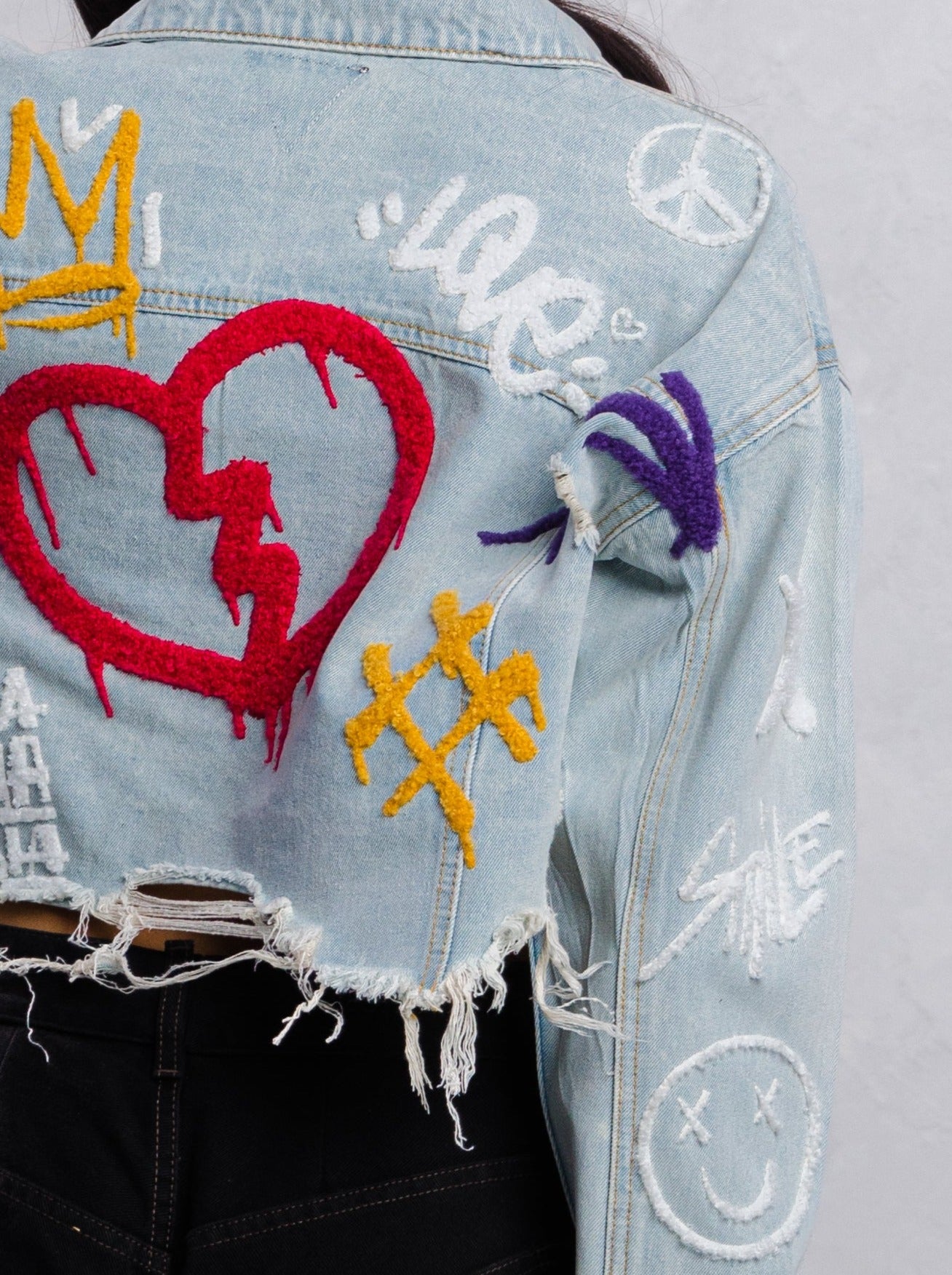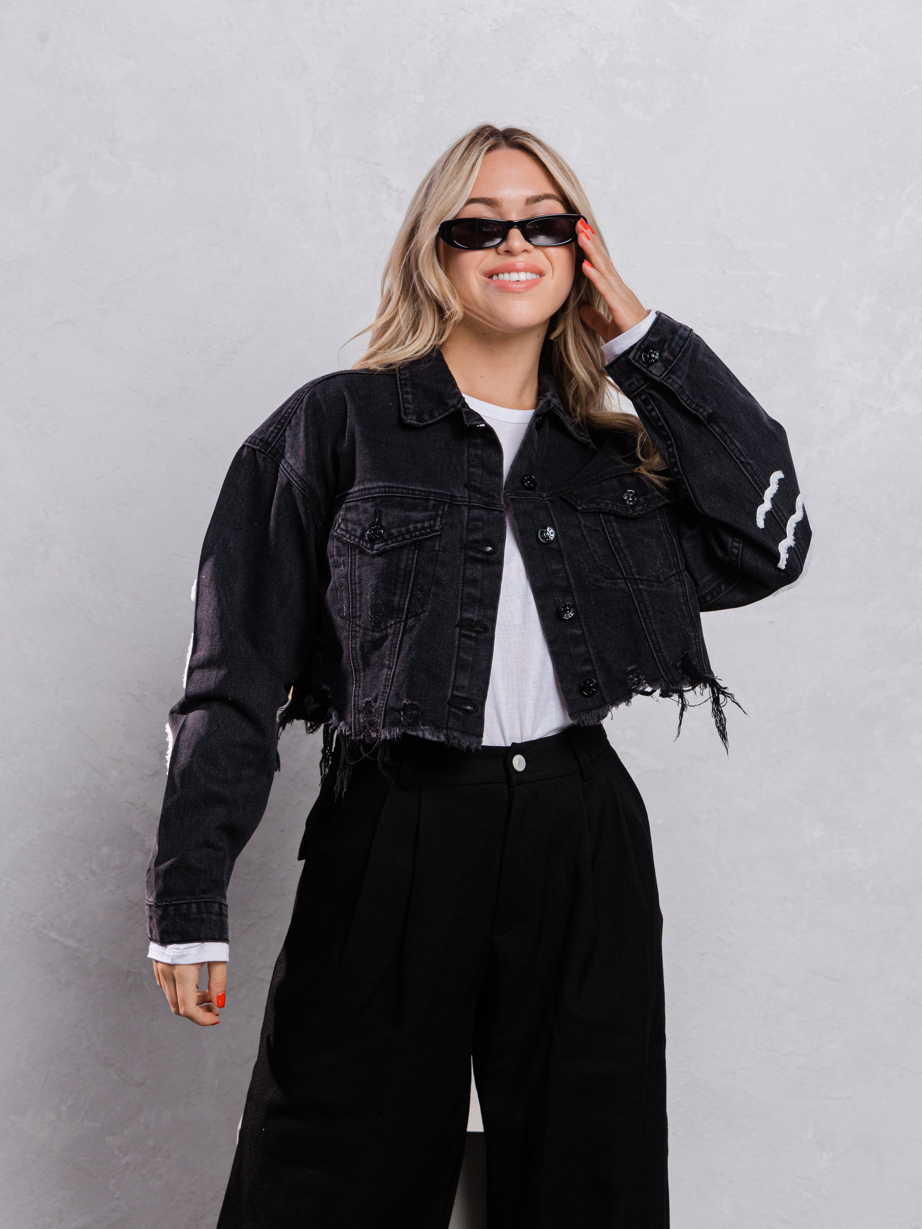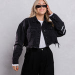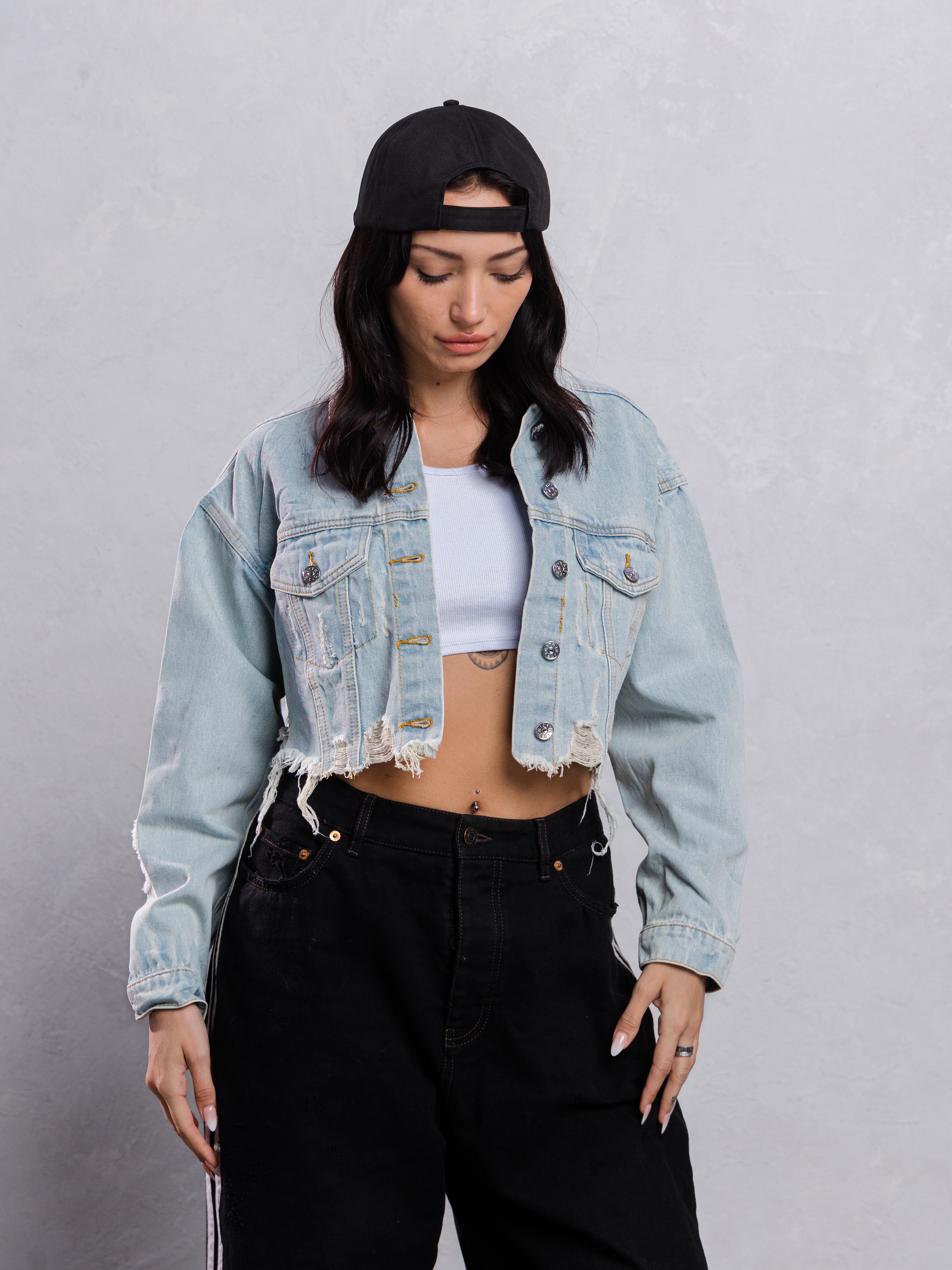 Cropped Distressed Denim Jacket, crafted distressed hemline,
