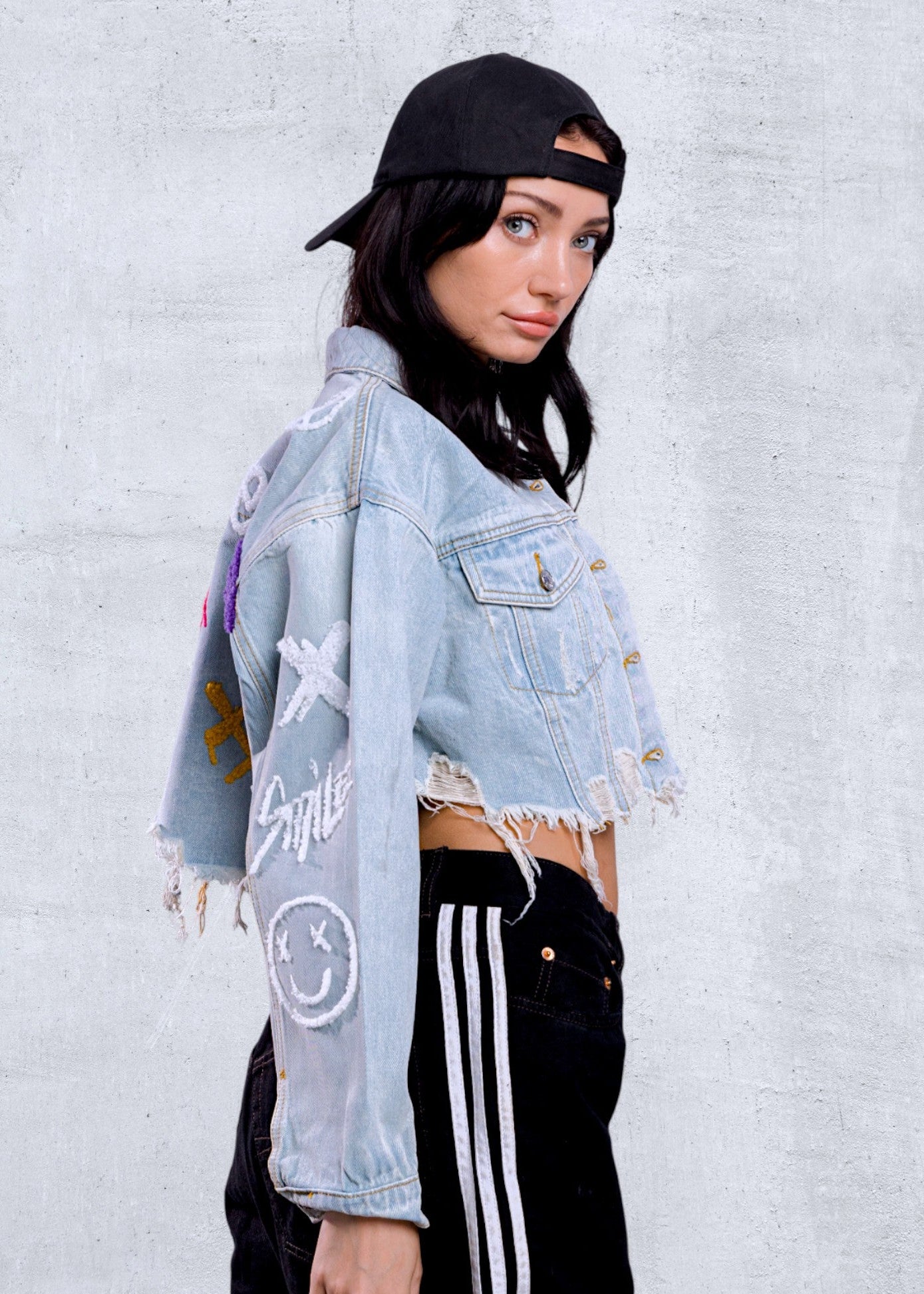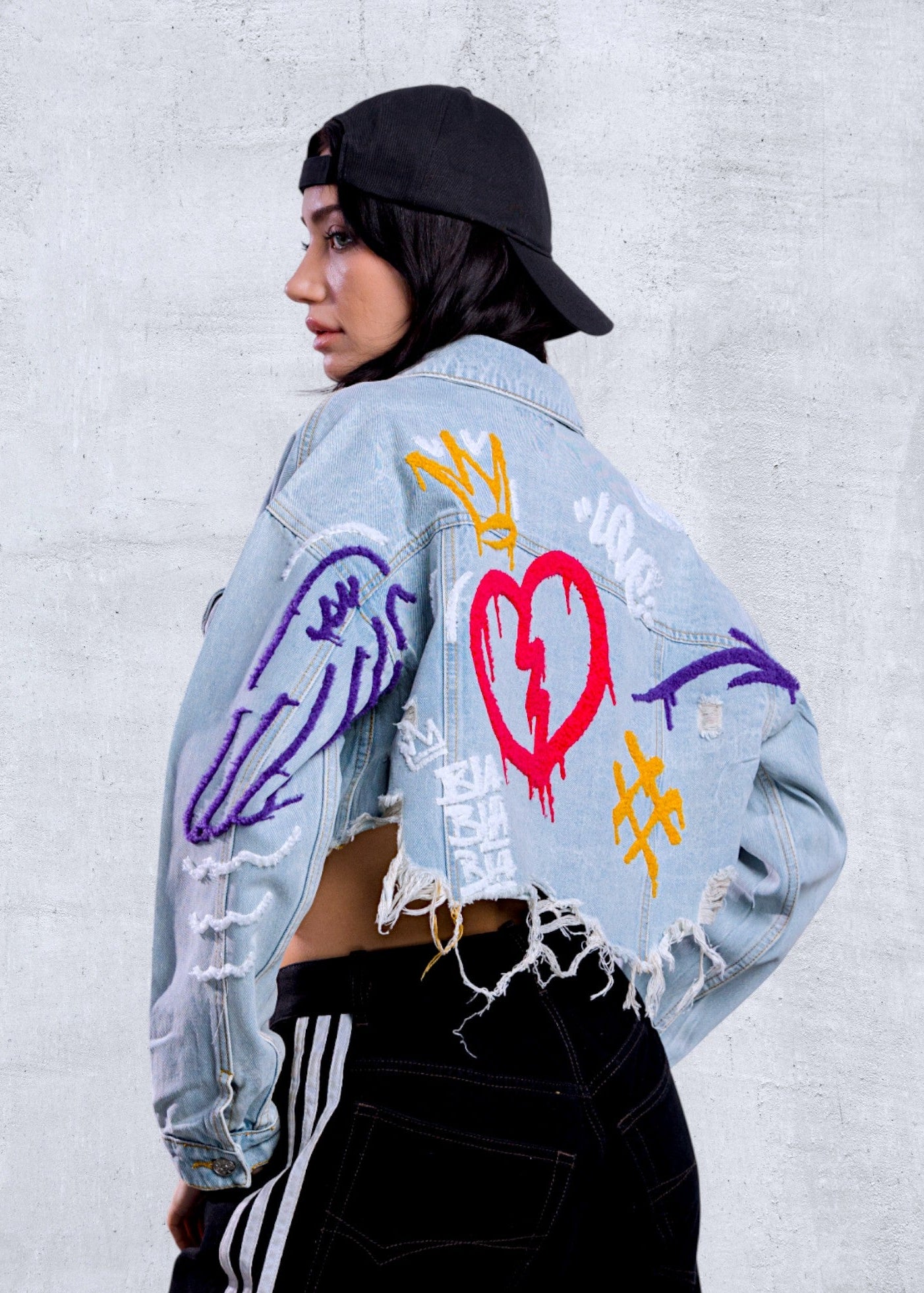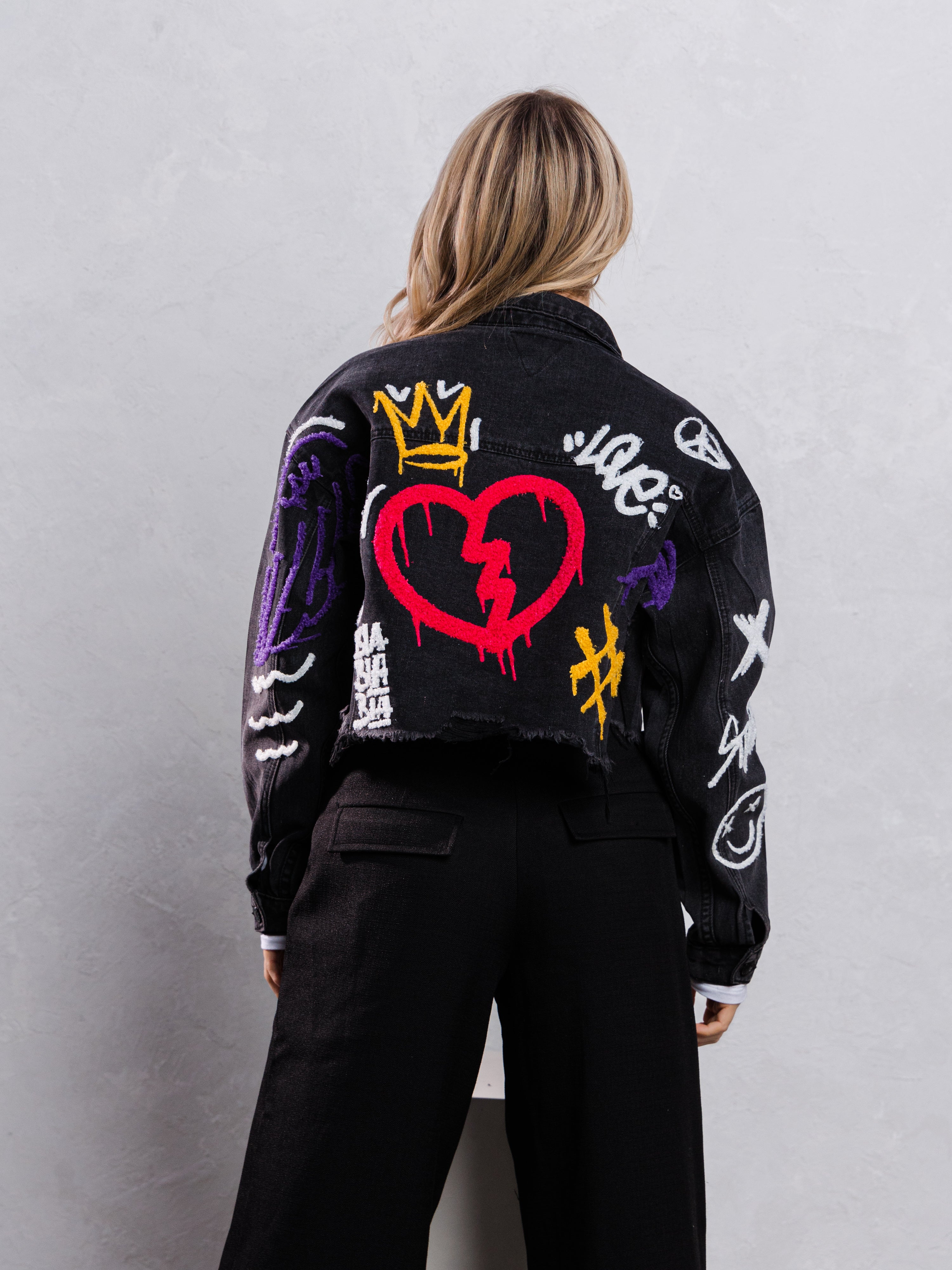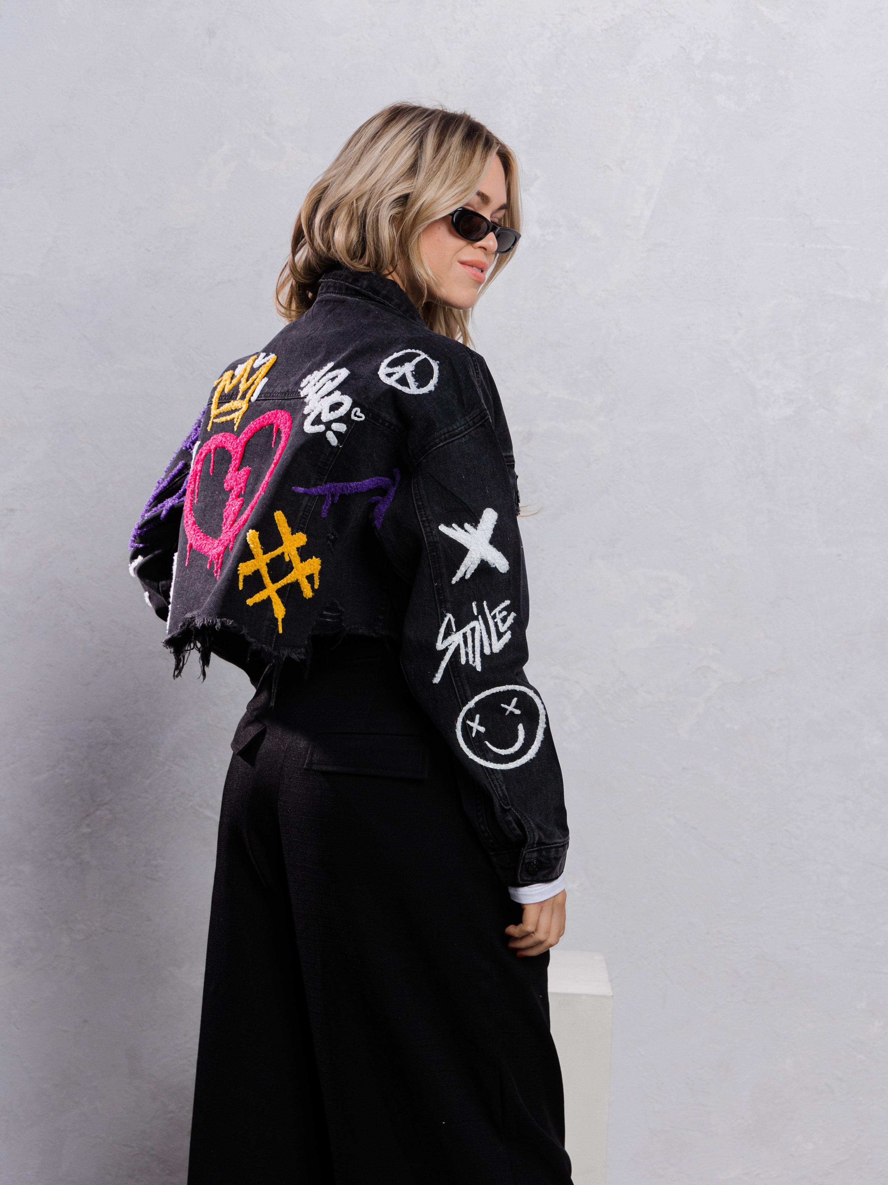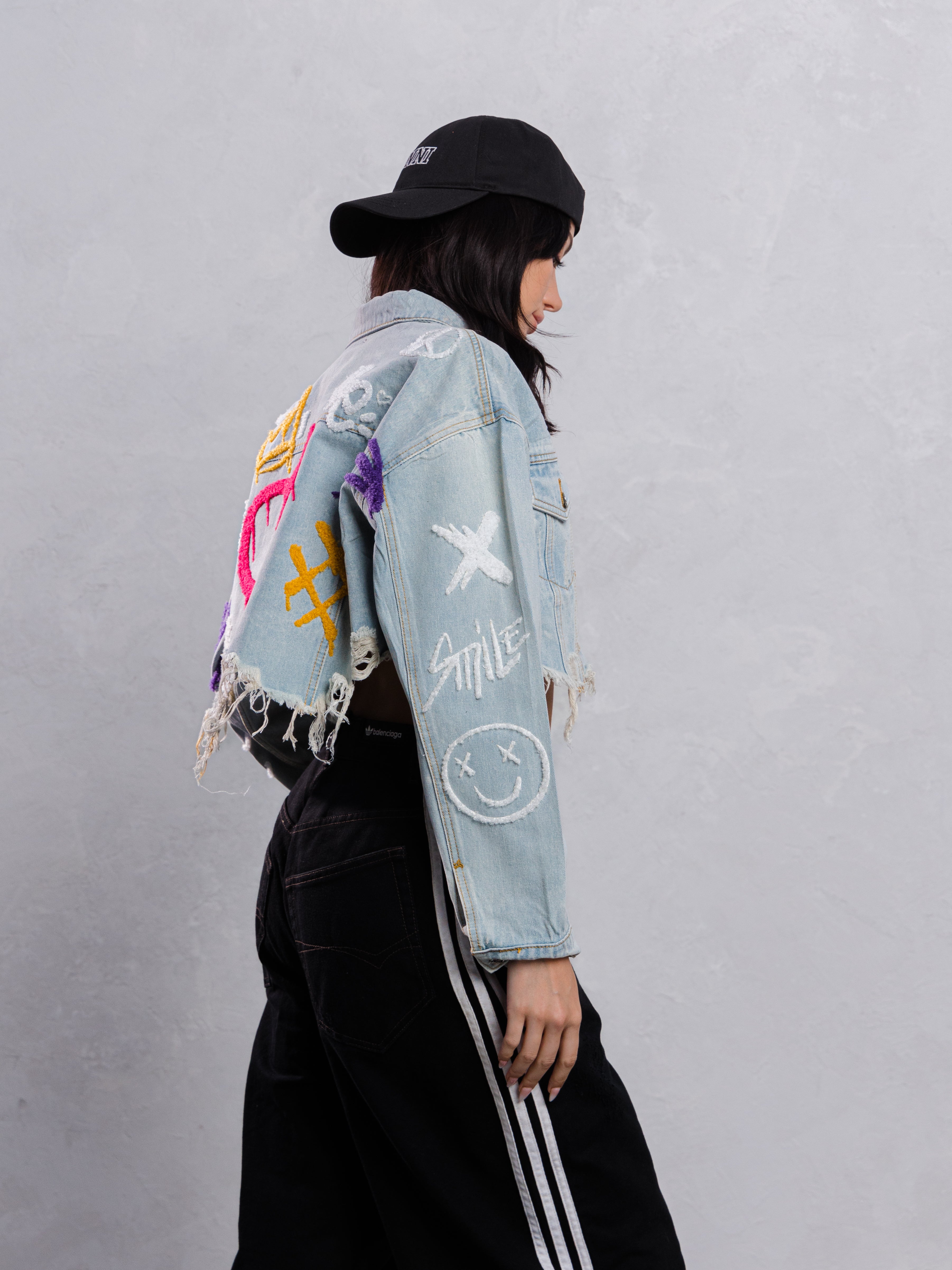 Cropped Distressed Denim Jacket, crafted distressed hemline,