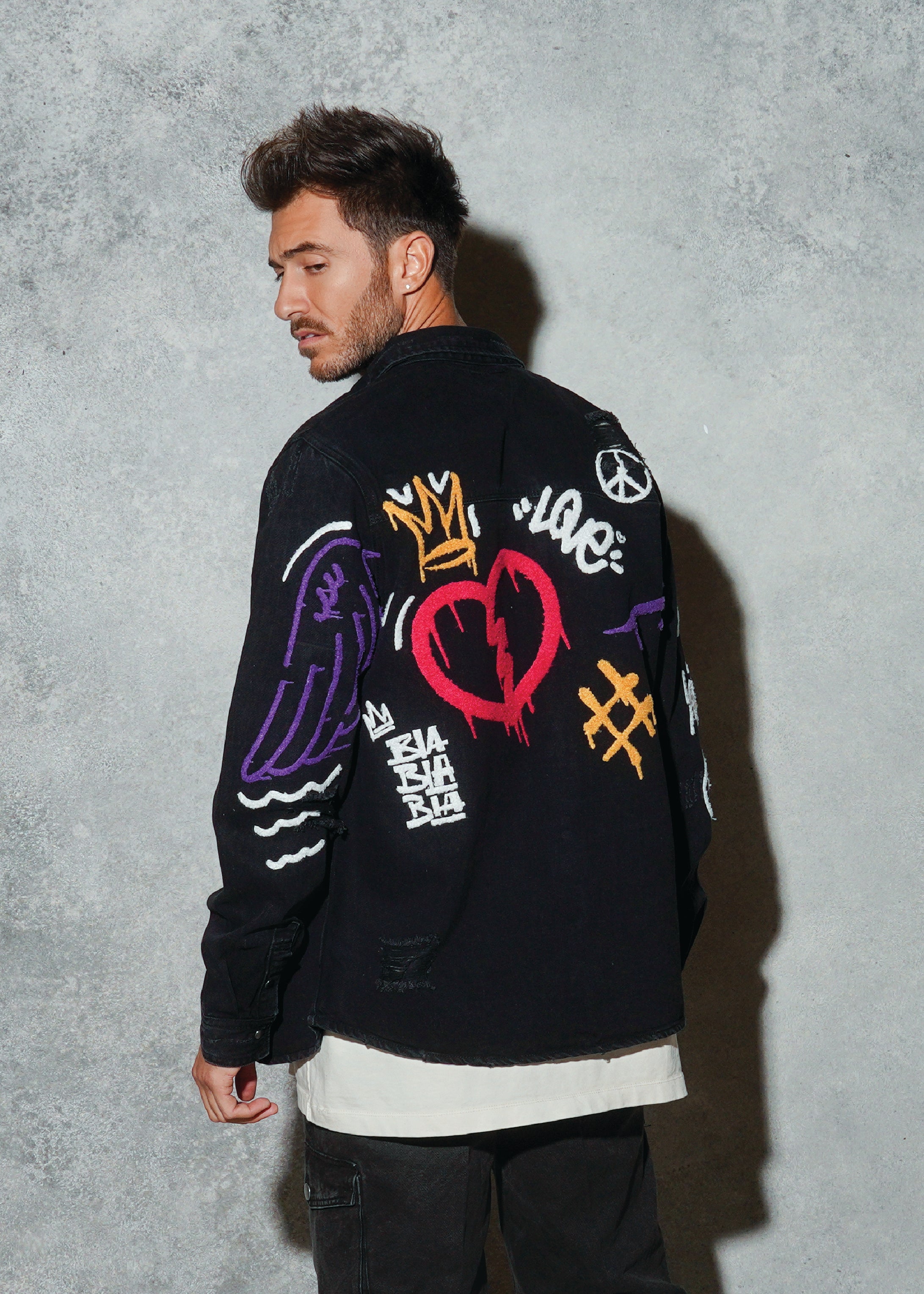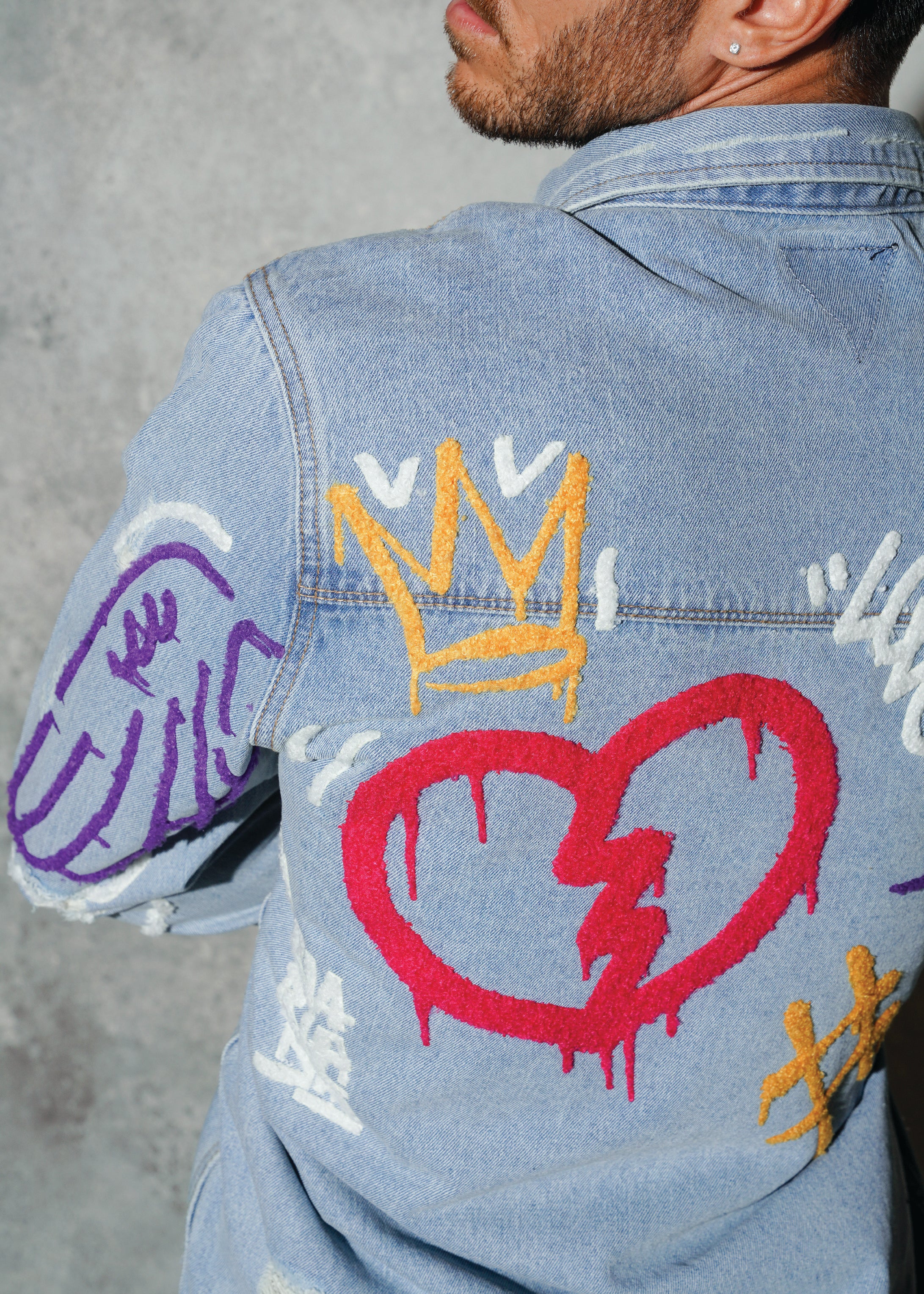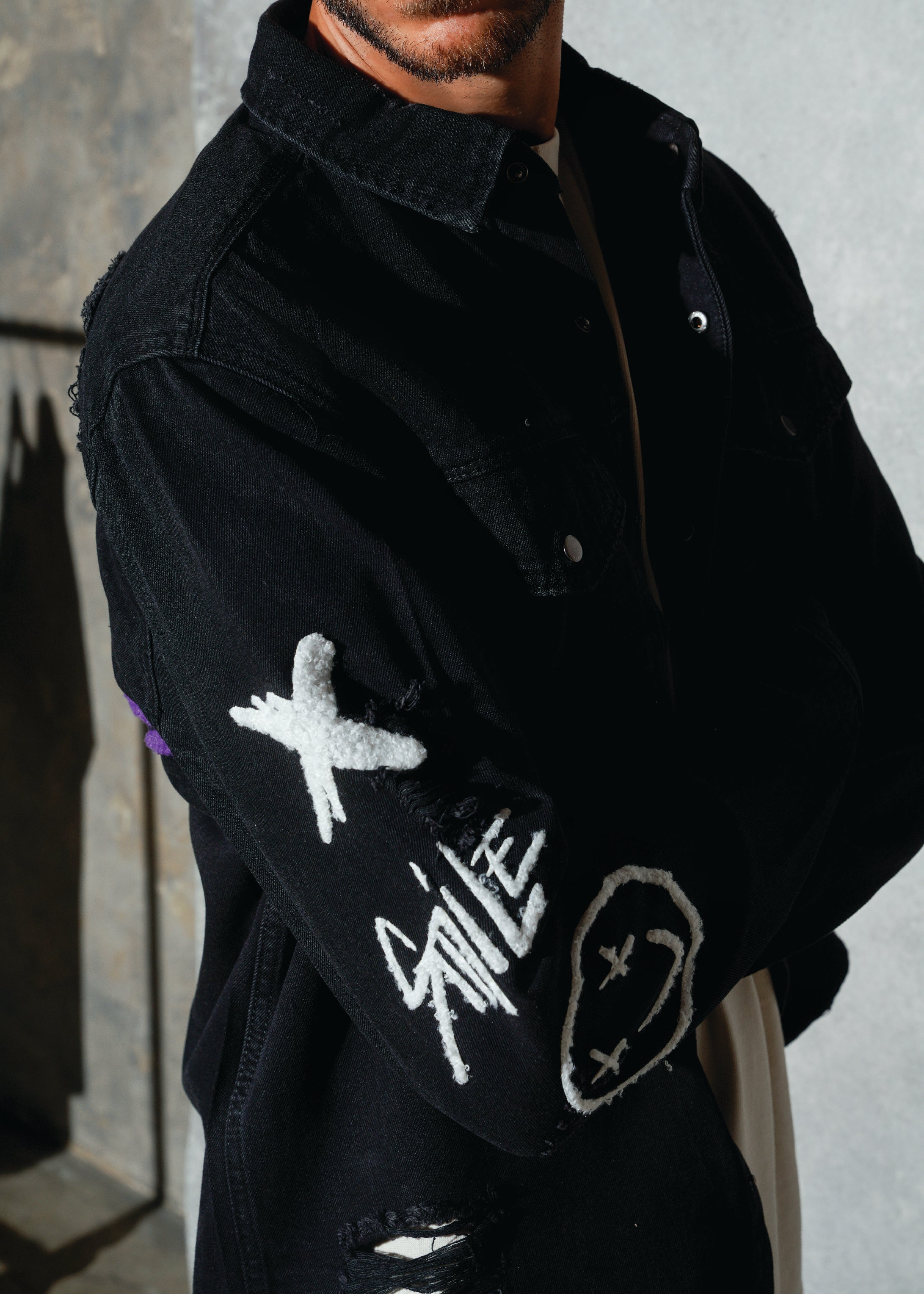 Featuring a crafted 3D Fuzzy texture Patch design on the back .