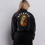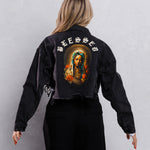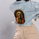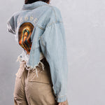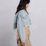 Cropped Distressed Denim Jacket, crafted distressed hemline,