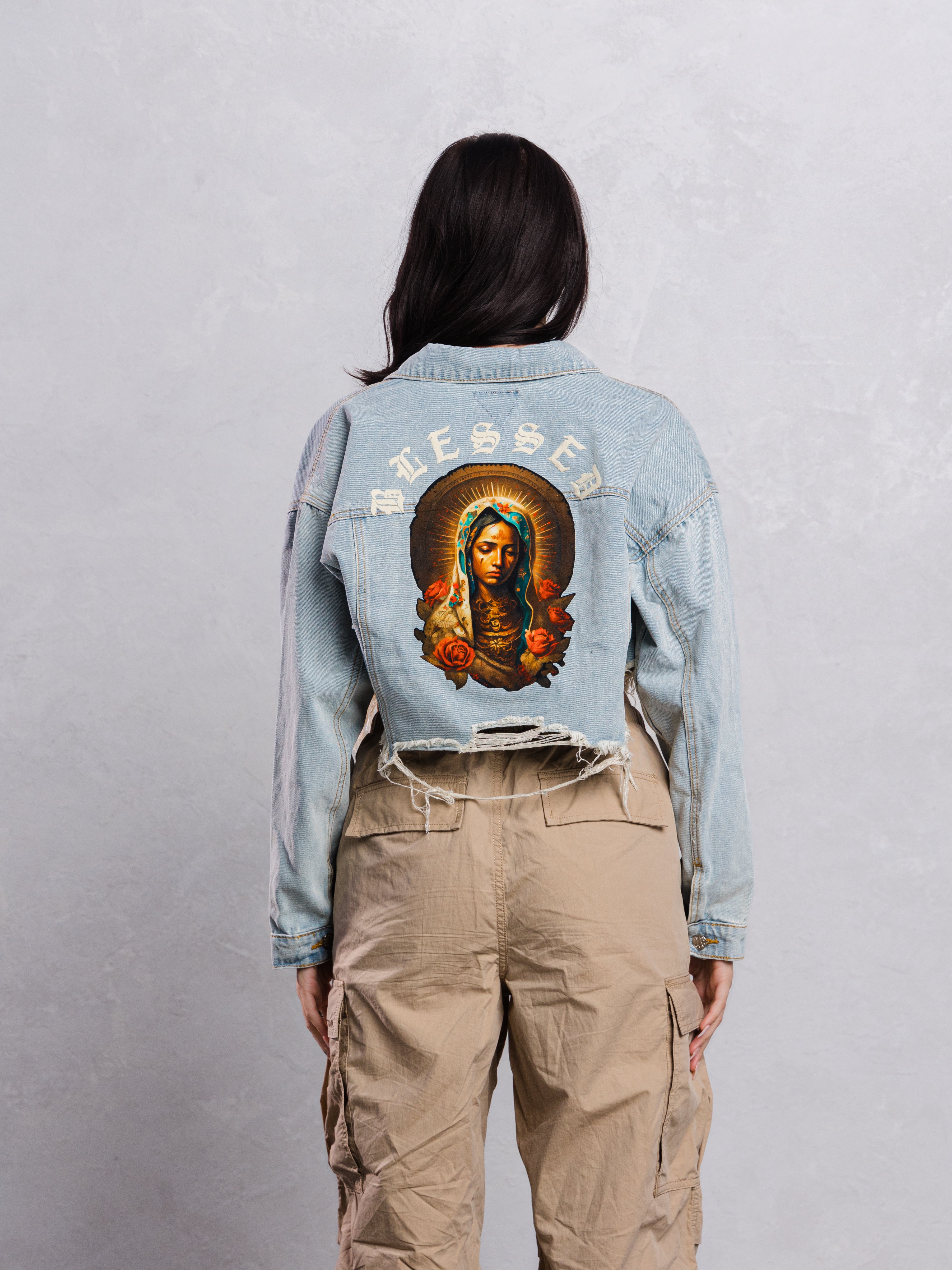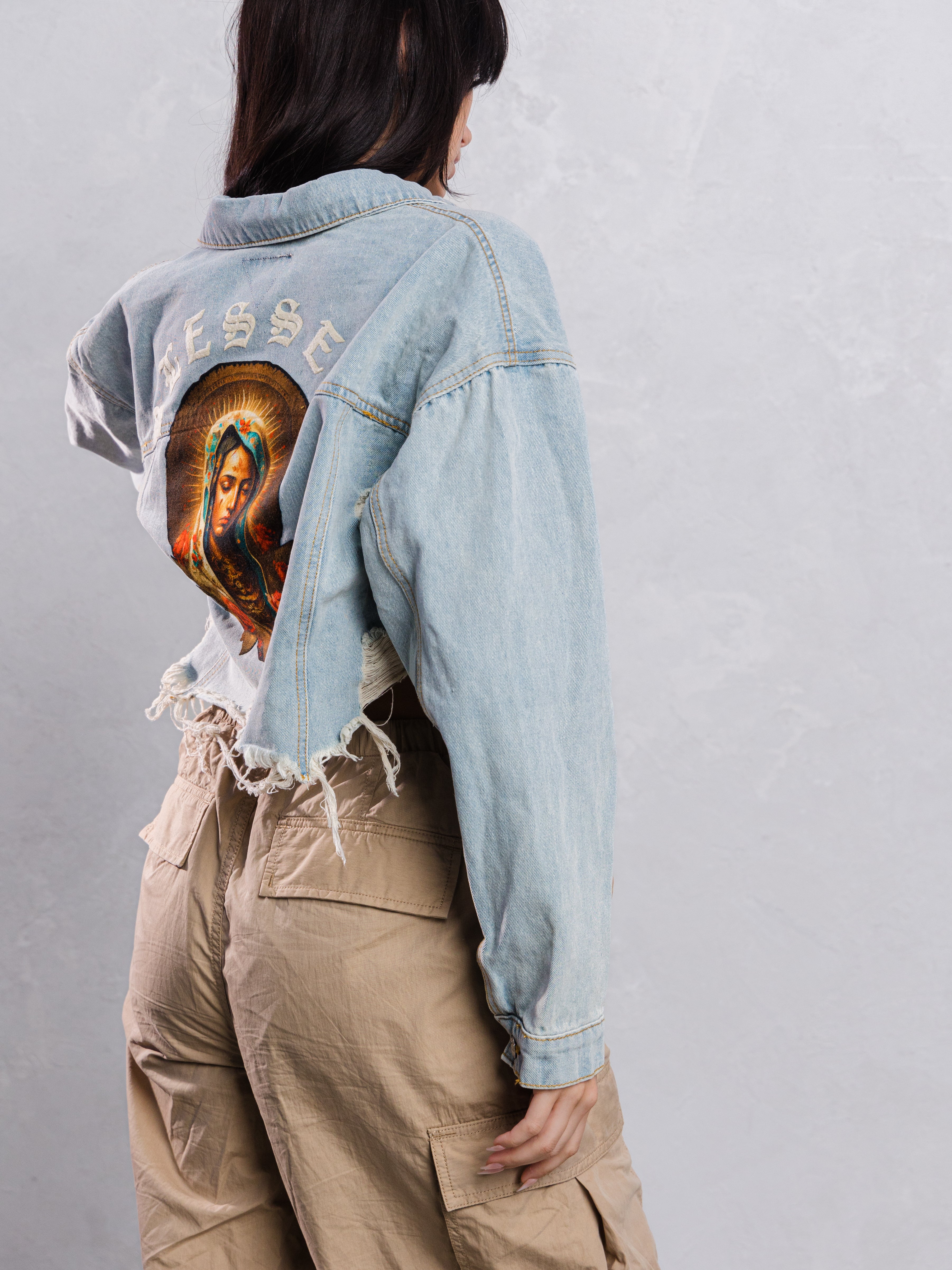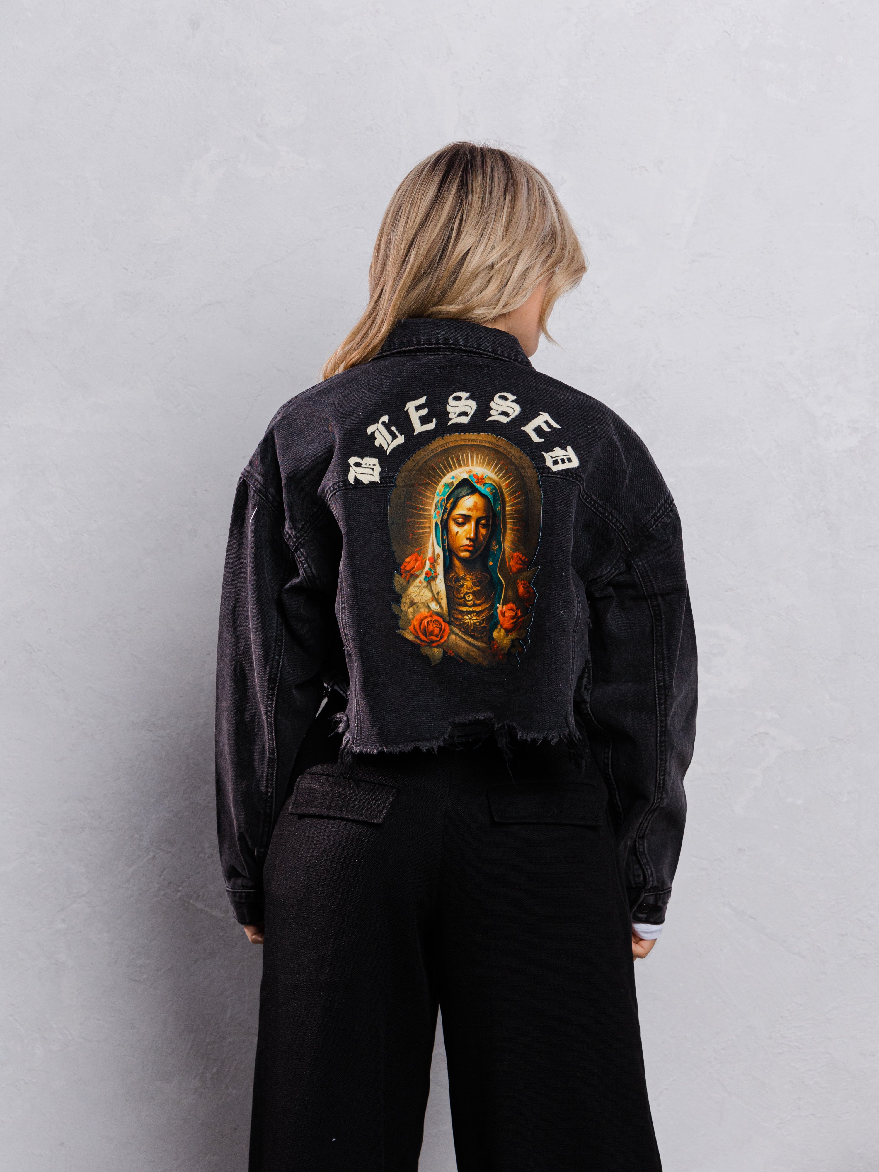 BLESSED Virgin Mary Crop Denim Jacket
