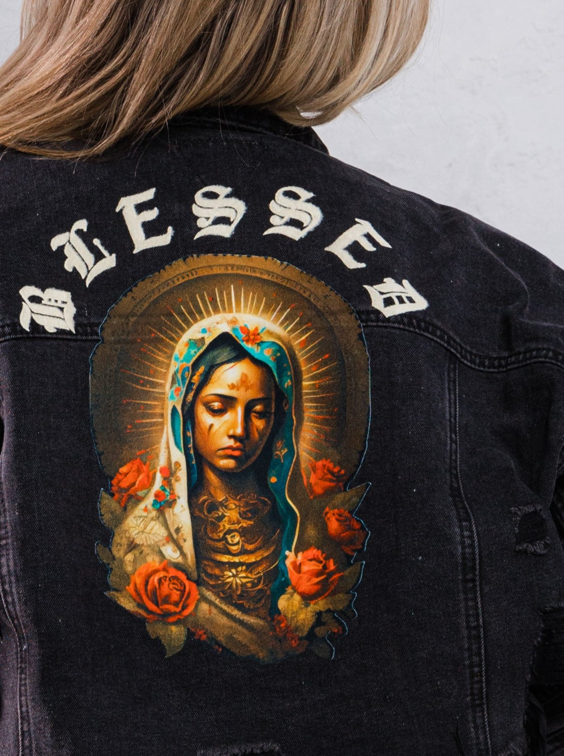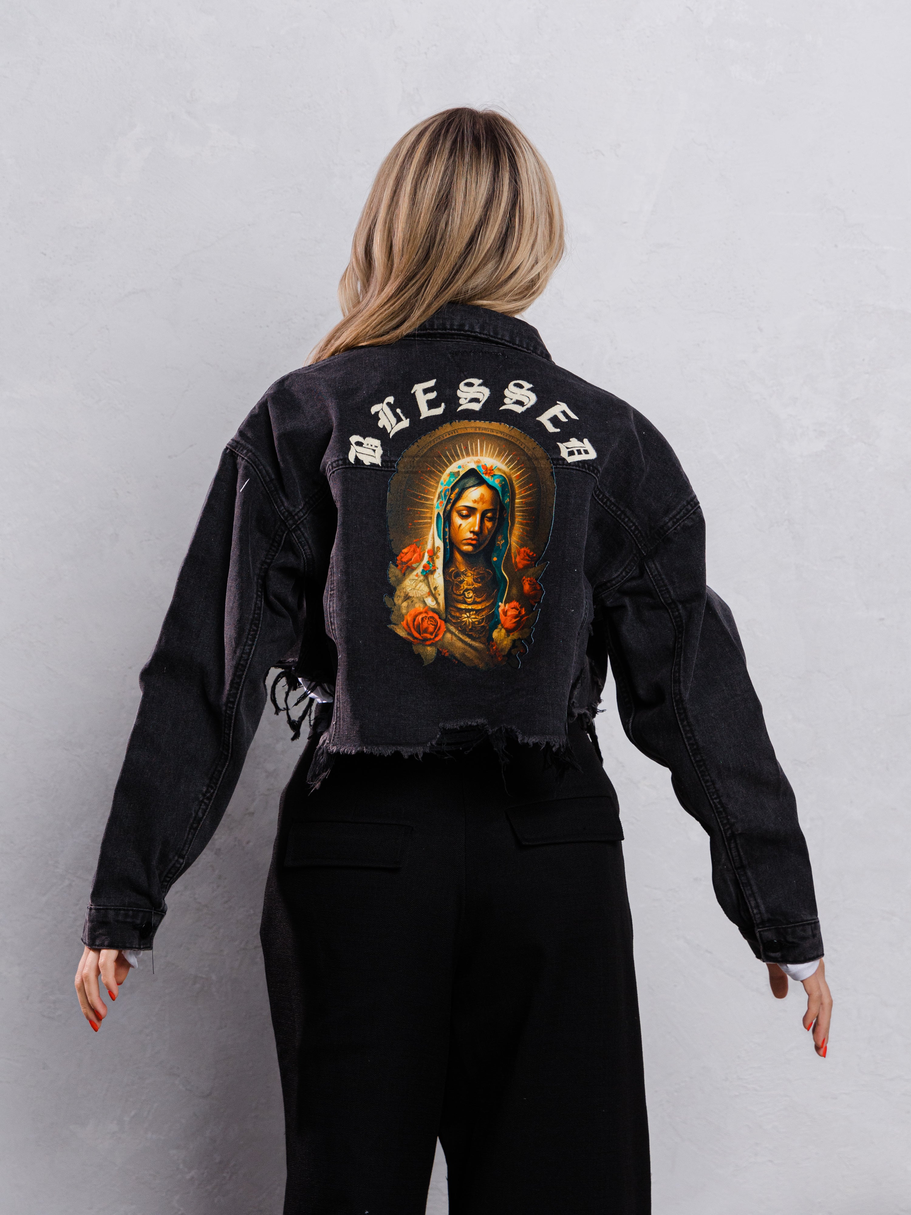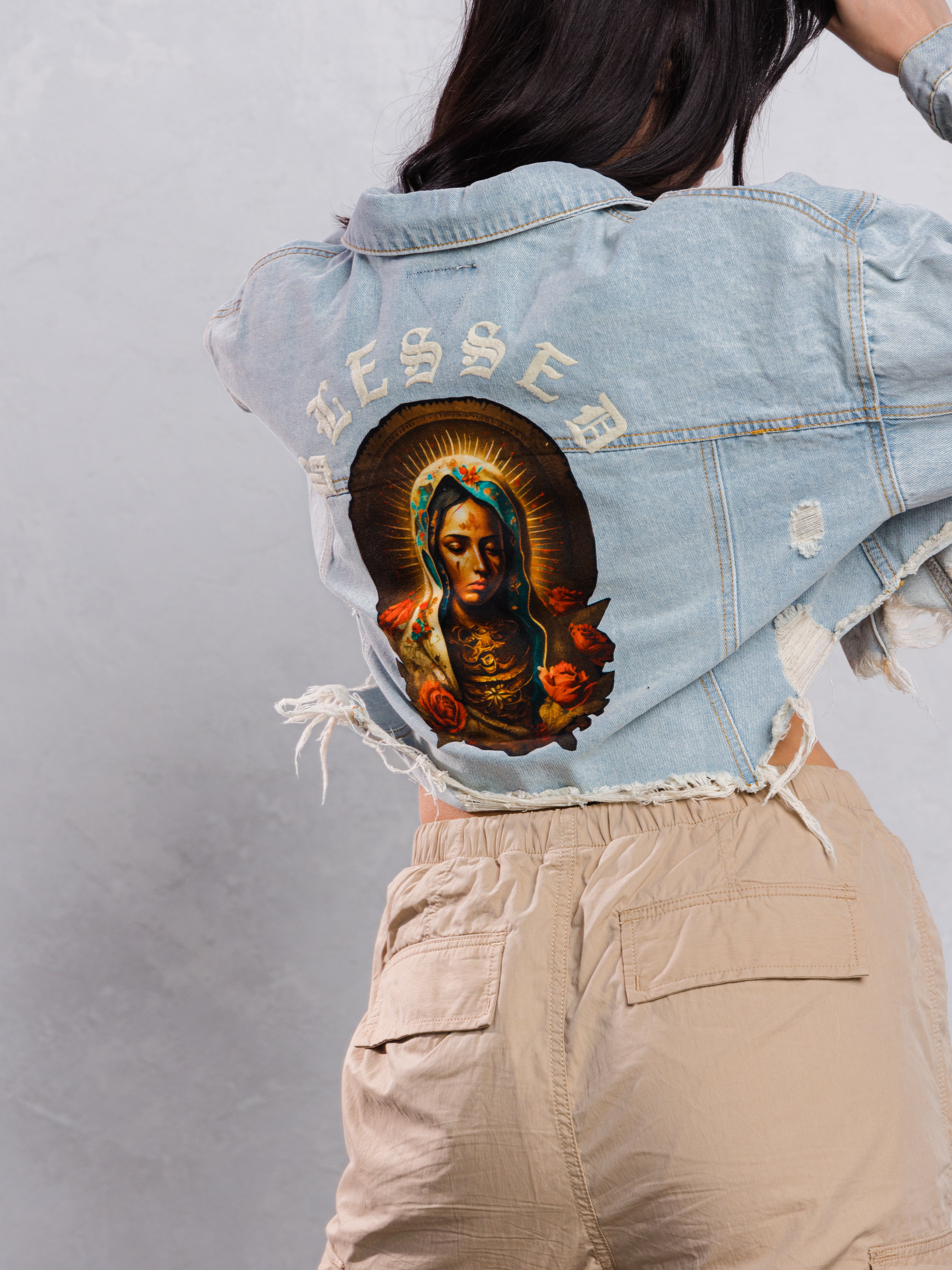 BLESSED Virgin Mary Crop Denim Jacket