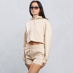 Fashionable Comfort: Achieve both fashion and comfort with this stylish cropped sweatsuit set.