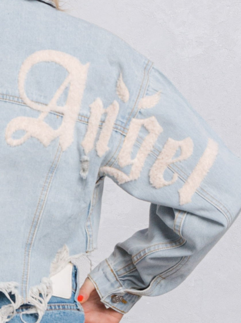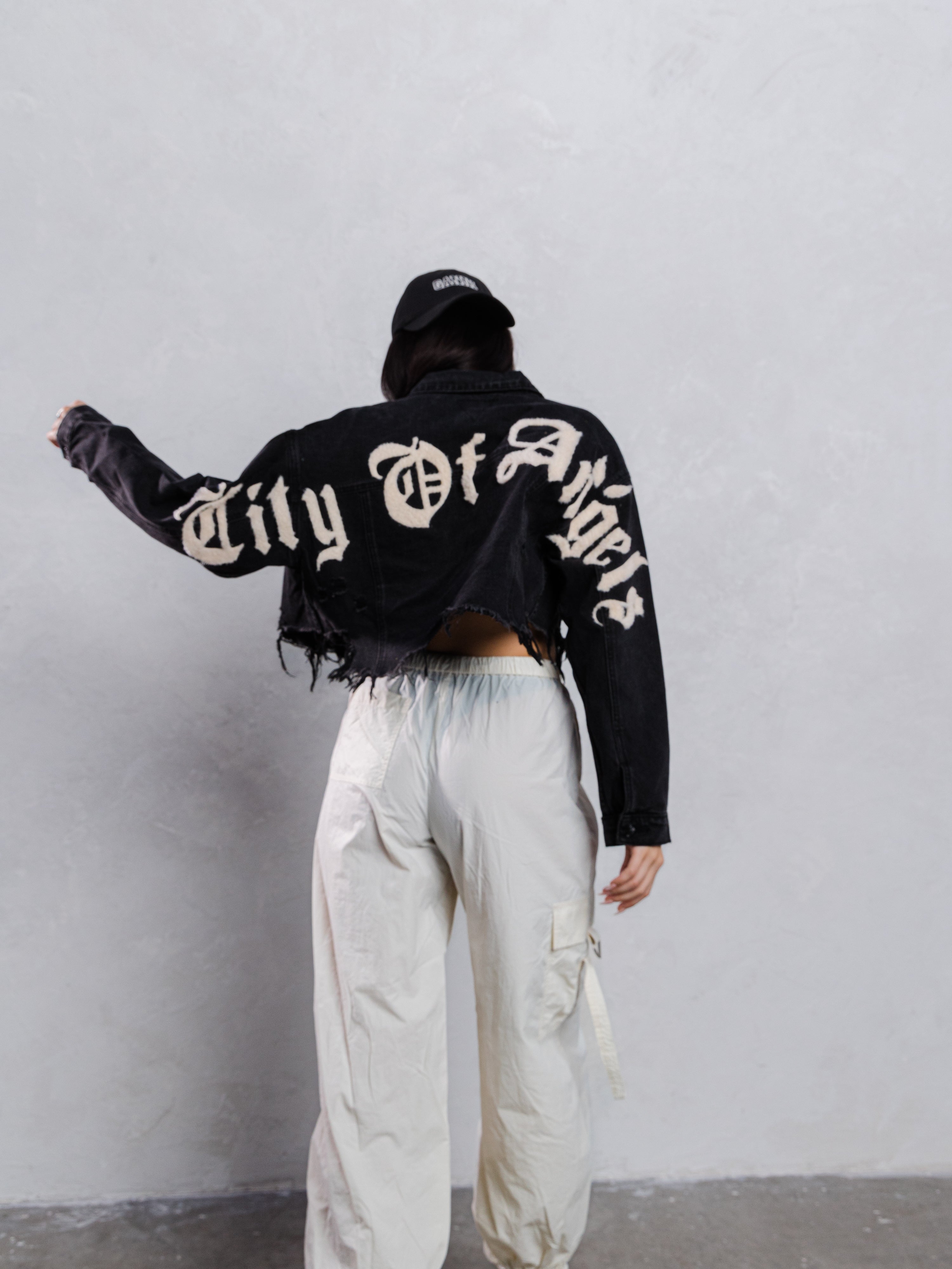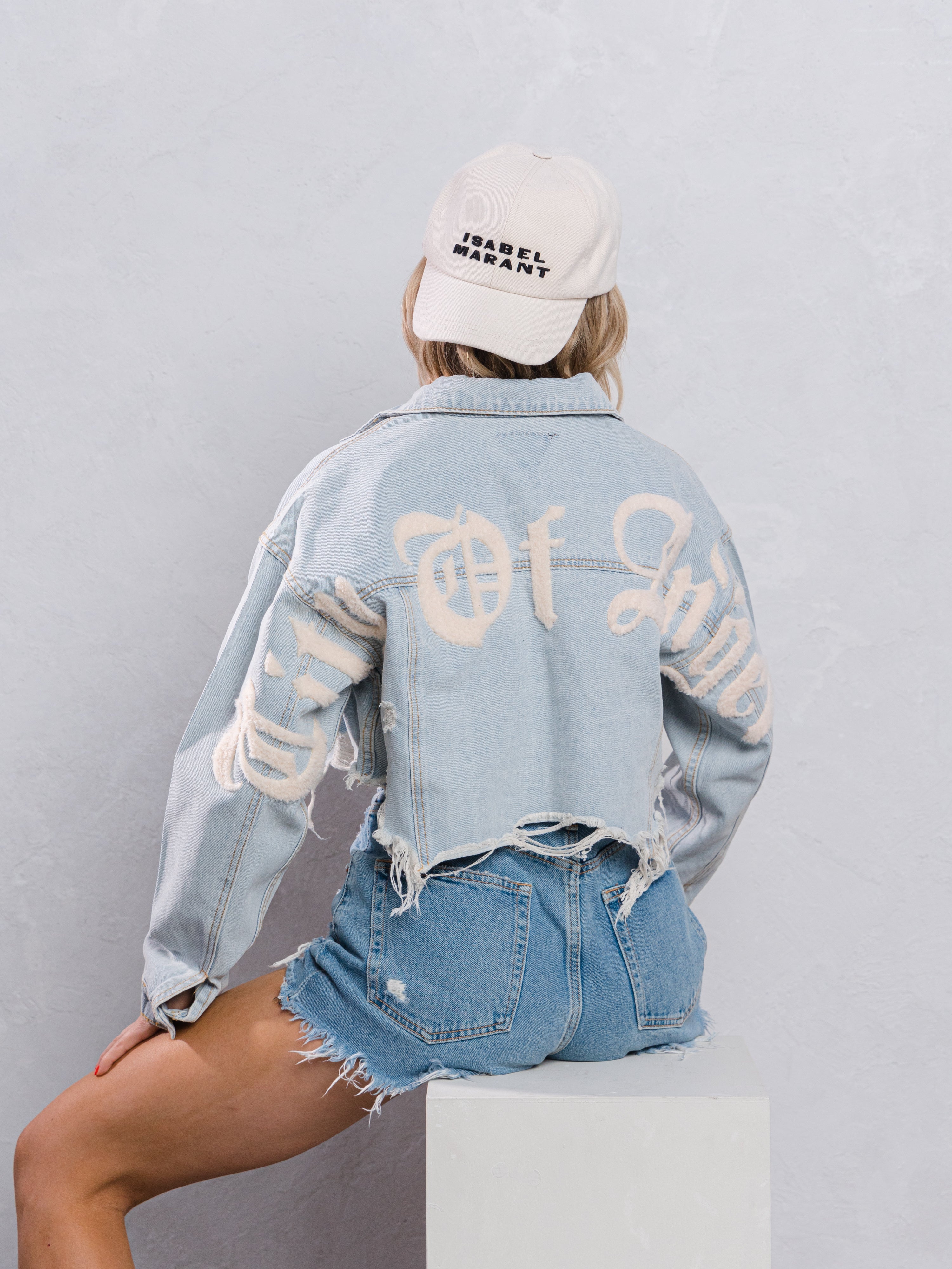 CITY OF ANGEL Cream font Crop Denim Jacket