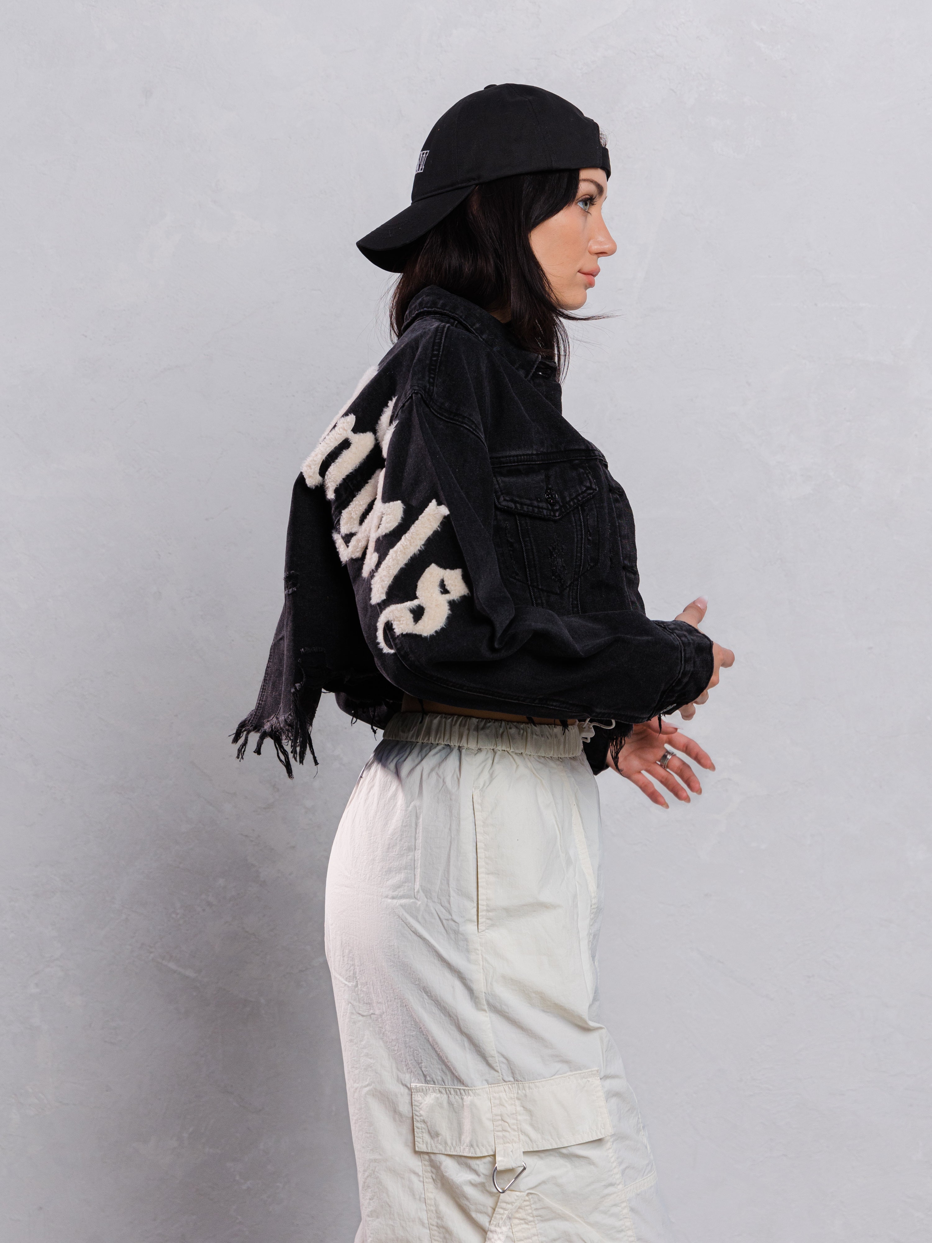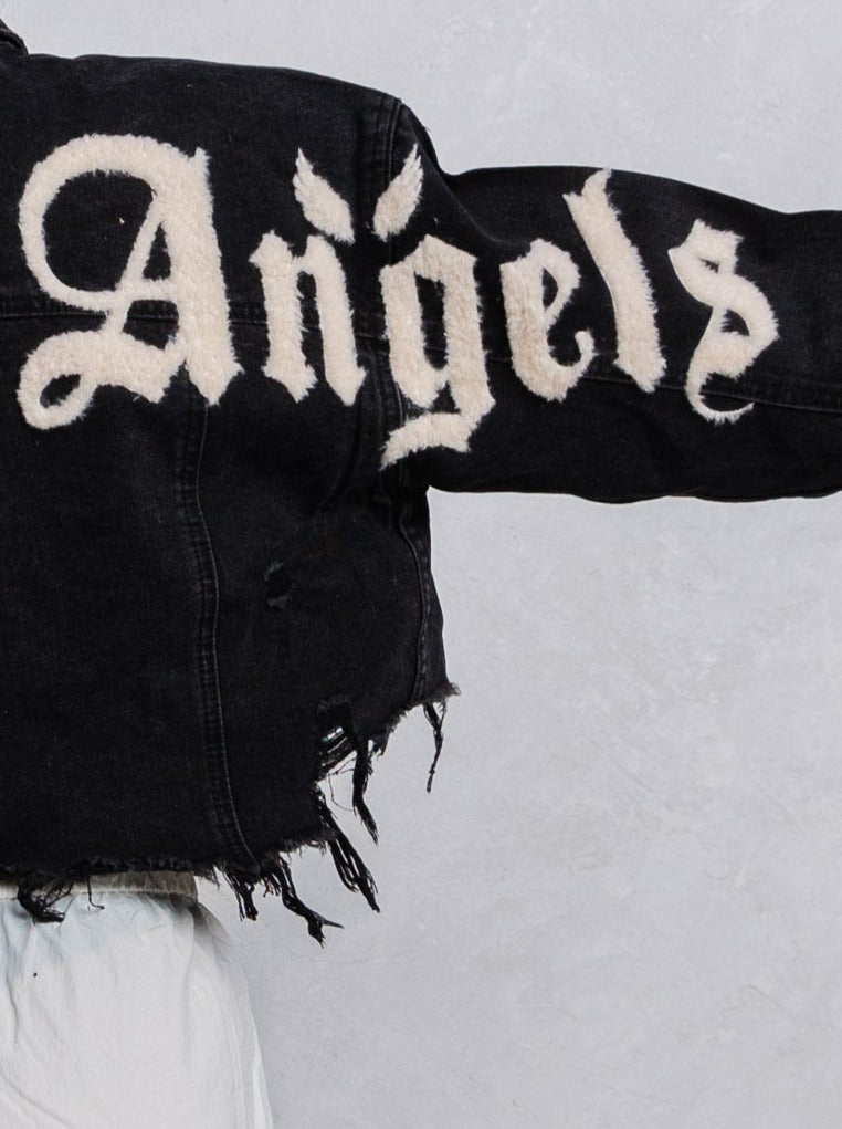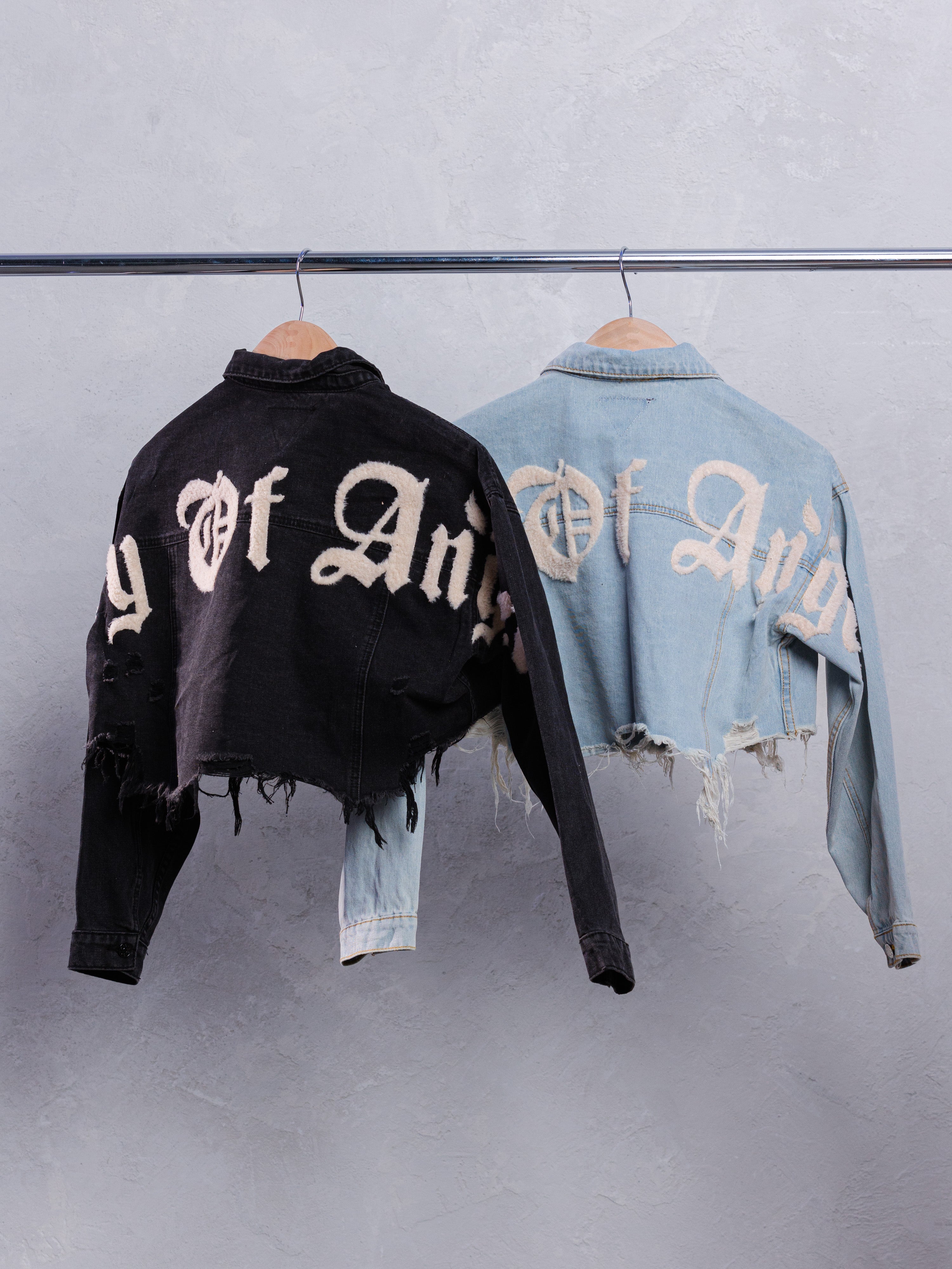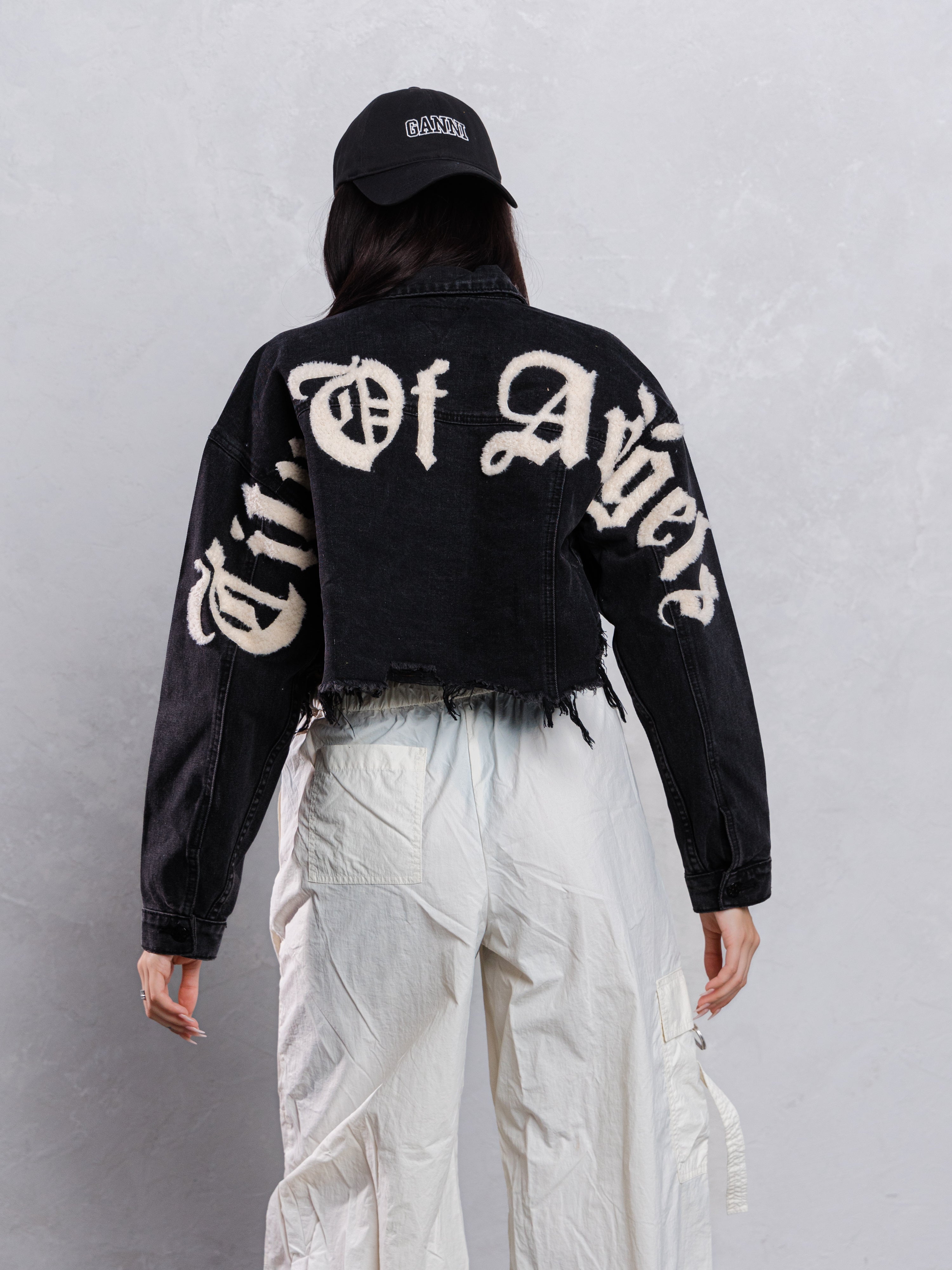 CITY OF ANGEL Cream font Crop Denim Jacket
