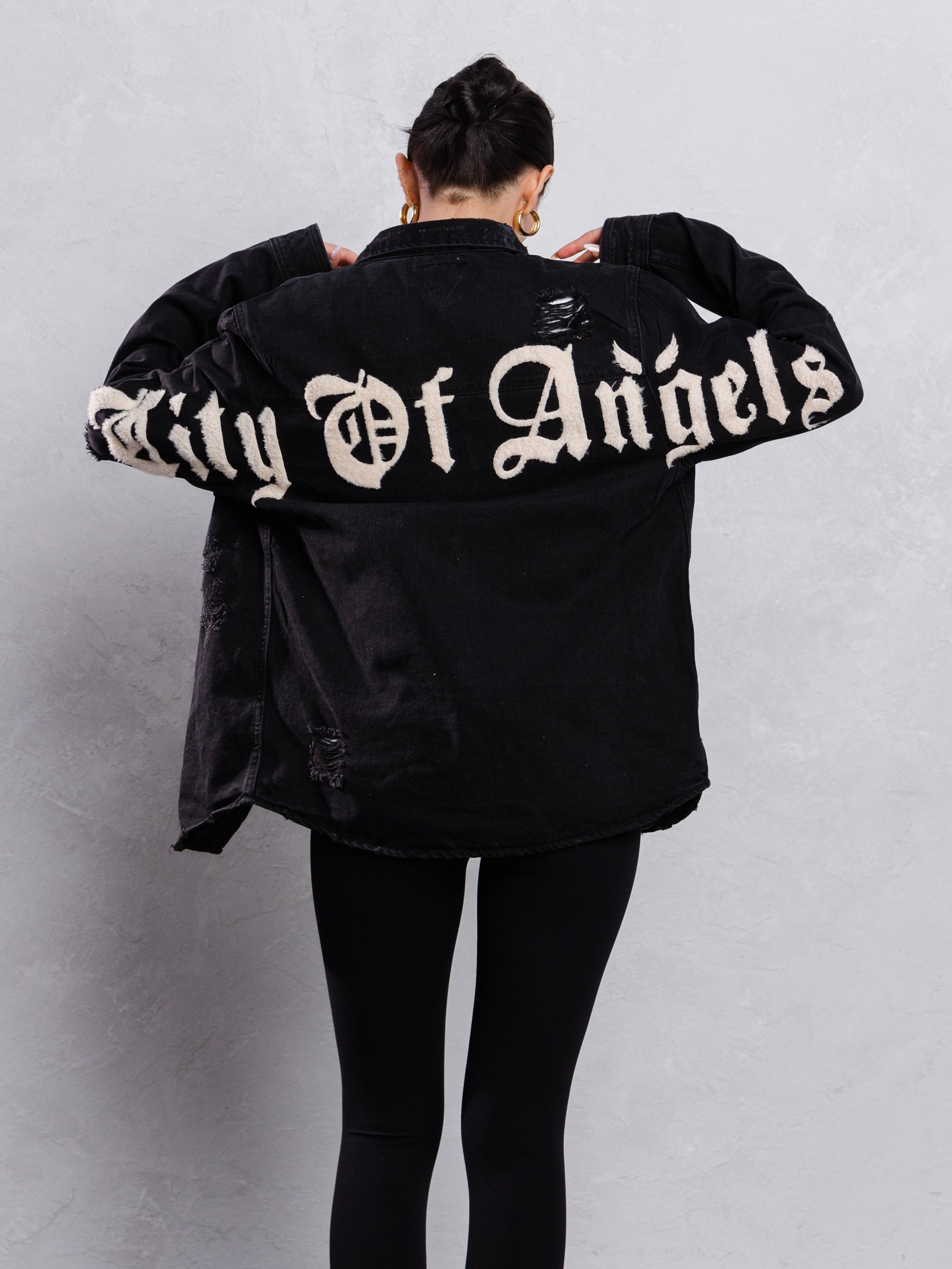 CITY OF ANGEL Cream Font Shirt Jacket