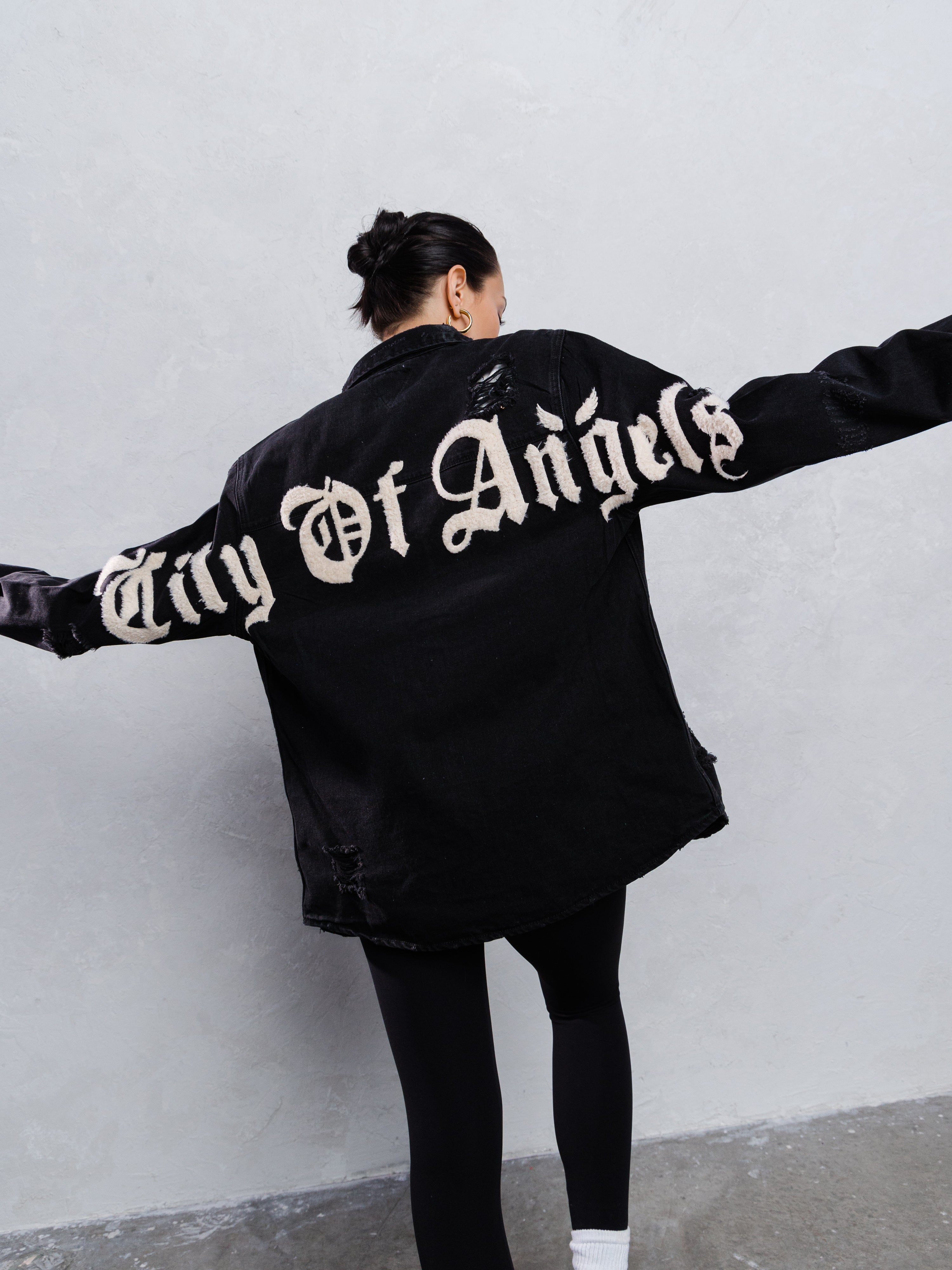 CITY OF ANGEL Cream Font Shirt Jacket