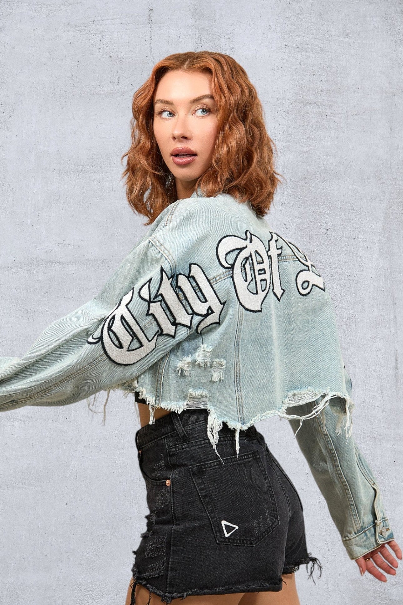 CITY OF ANGELS Double layer Women Cropped Denim Jacket