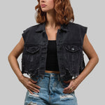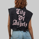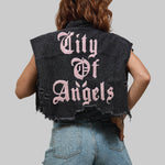 CITY OF ANGELS (PINK FONT) Crop Denim Vest Jacket