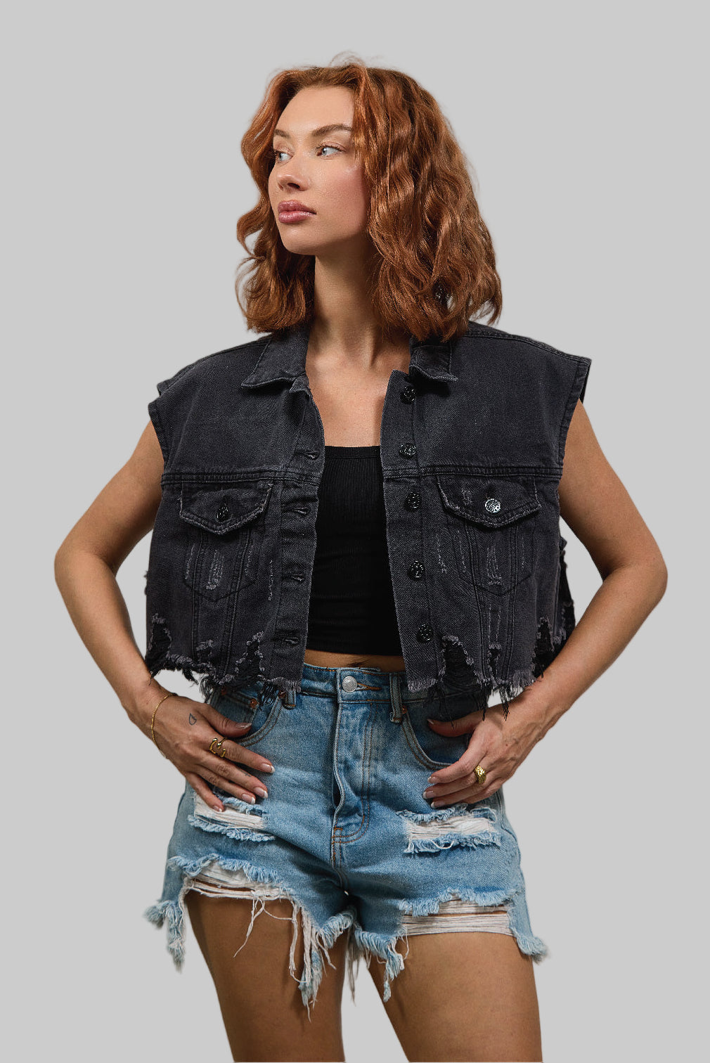 Cropped Distressed Denim Jacket, crafted distressed hemline,