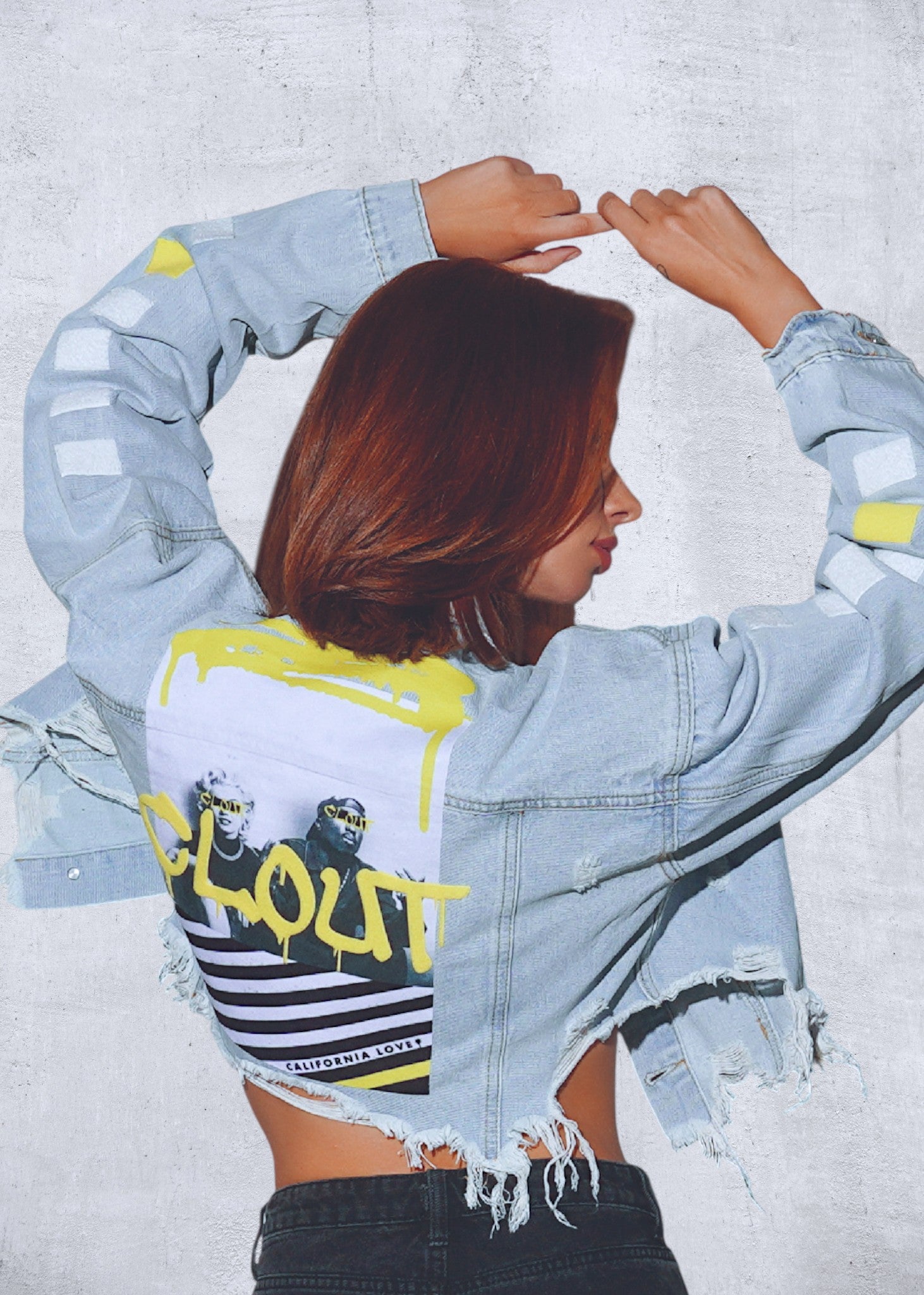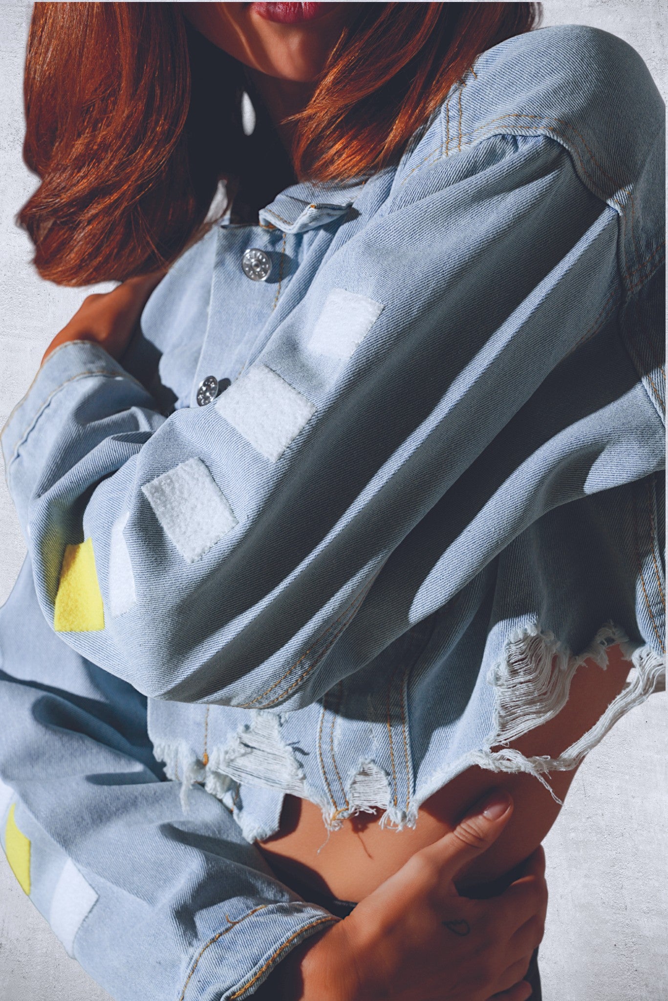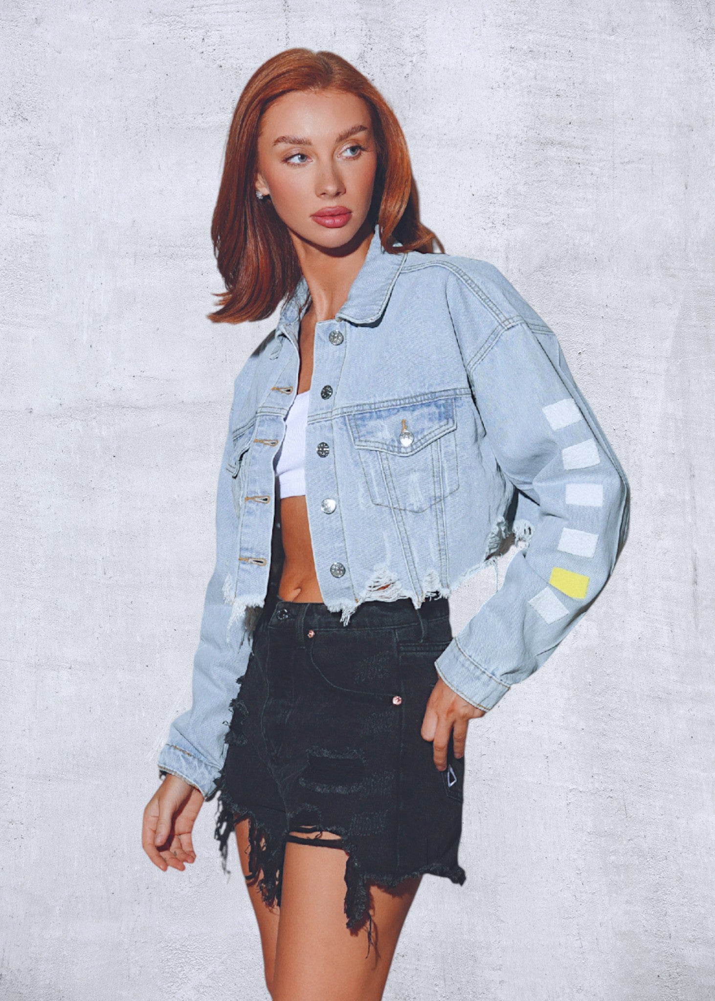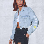 Cropped Distressed Denim Jacket, crafted distressed hemline,