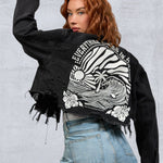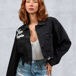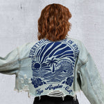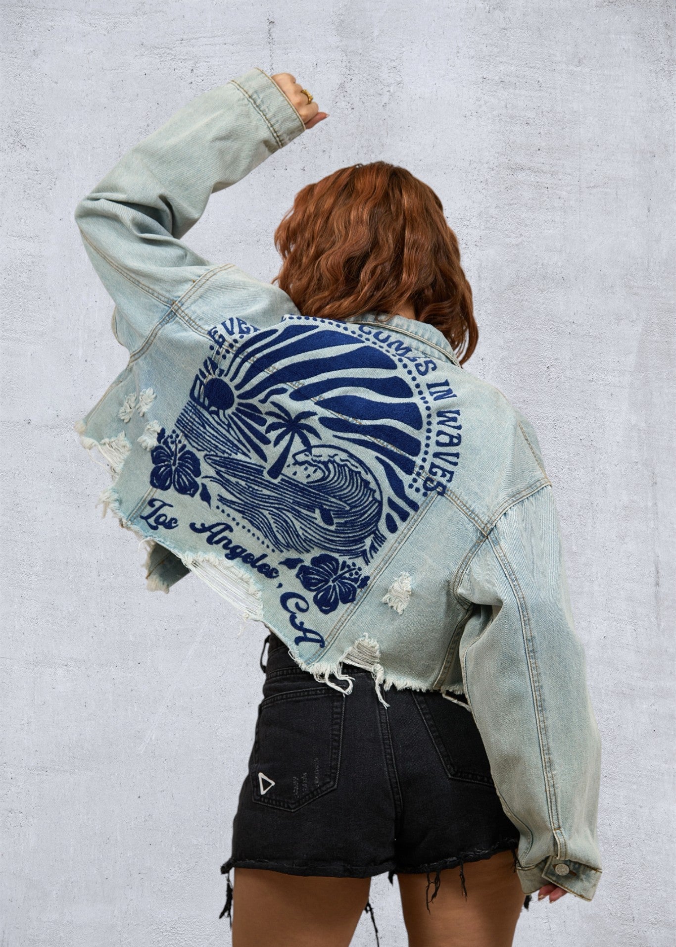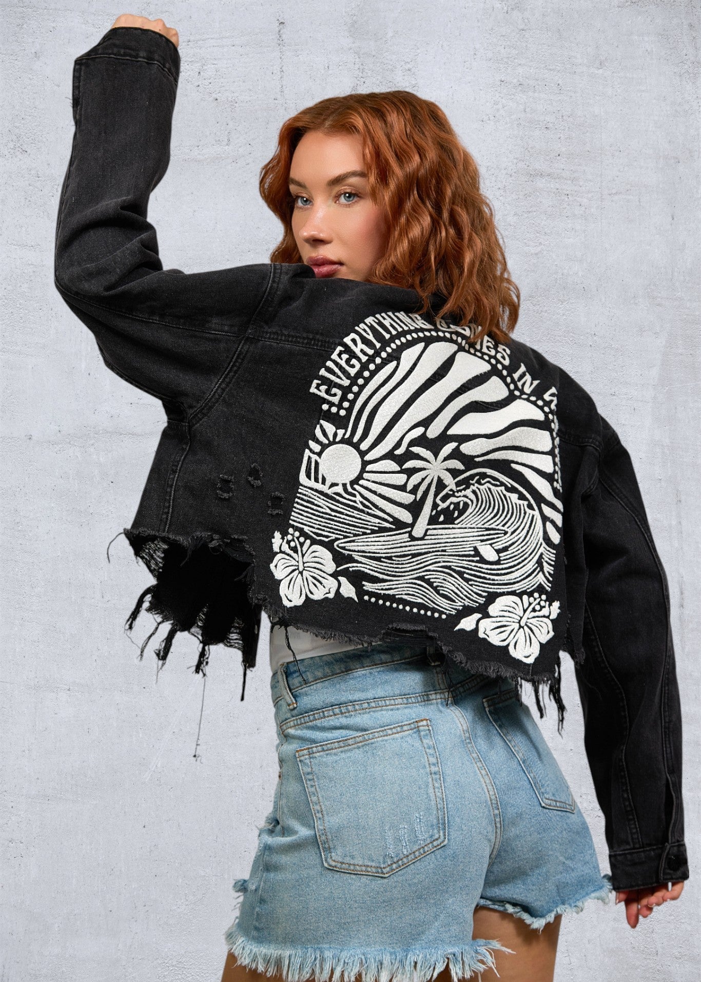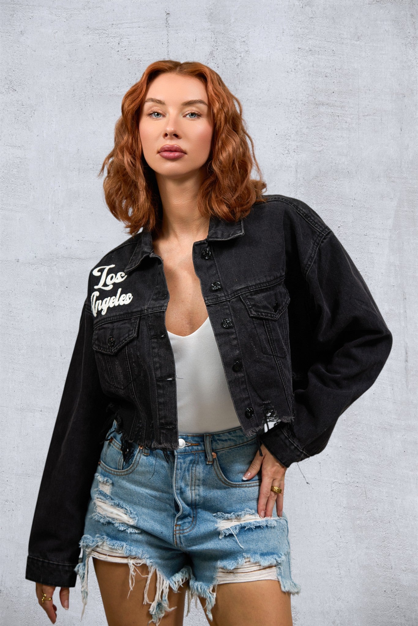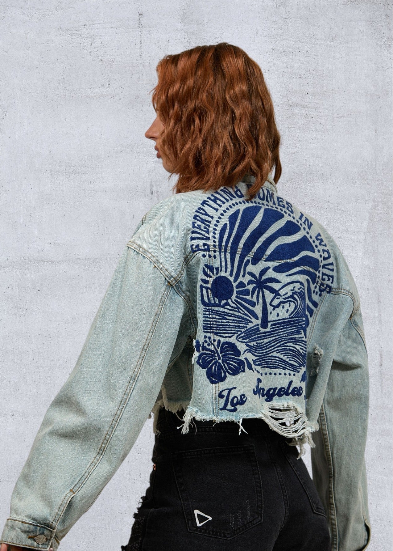 Cropped Distressed Denim Jacket, crafted distressed hemline,