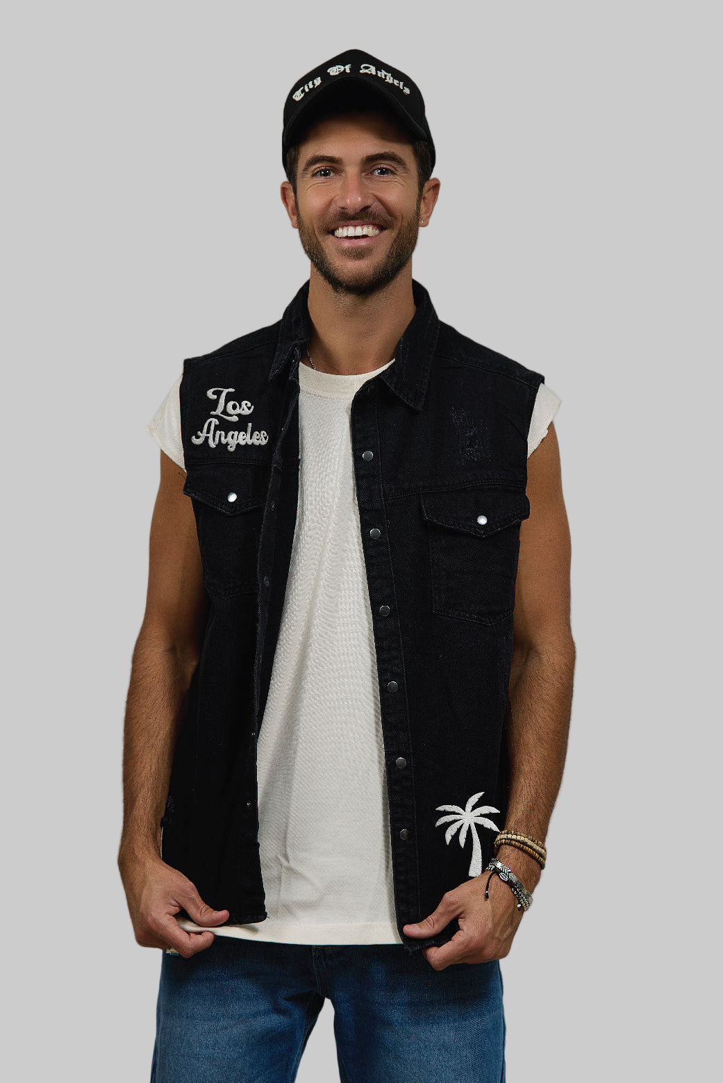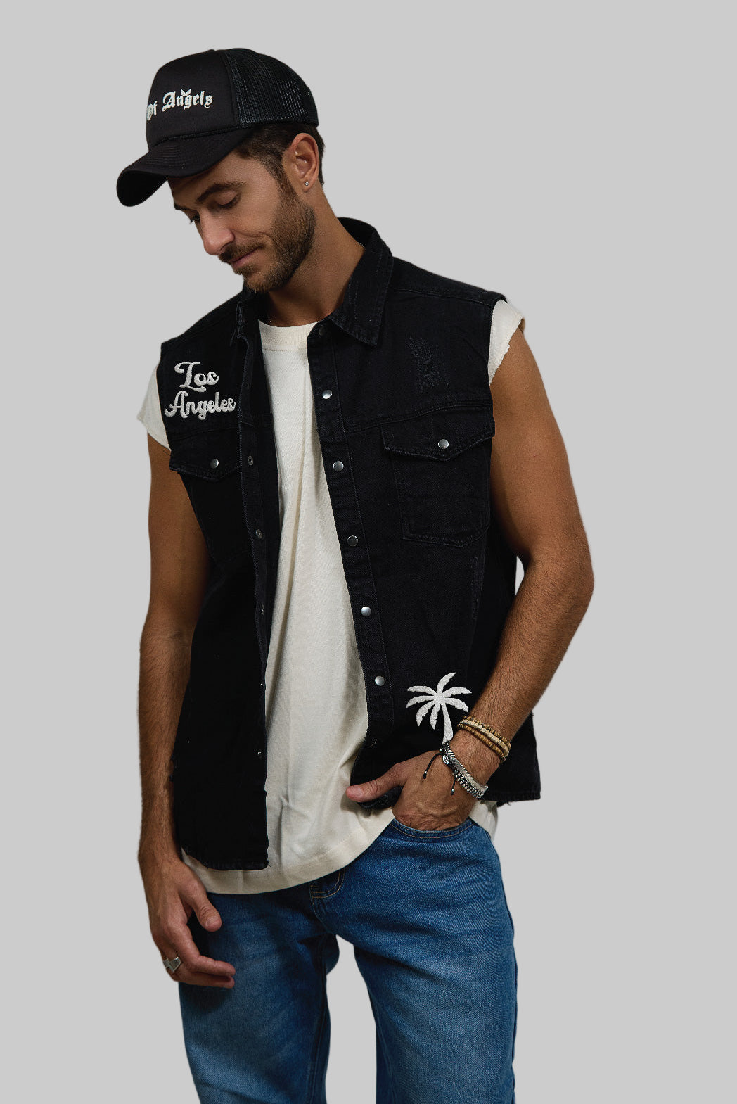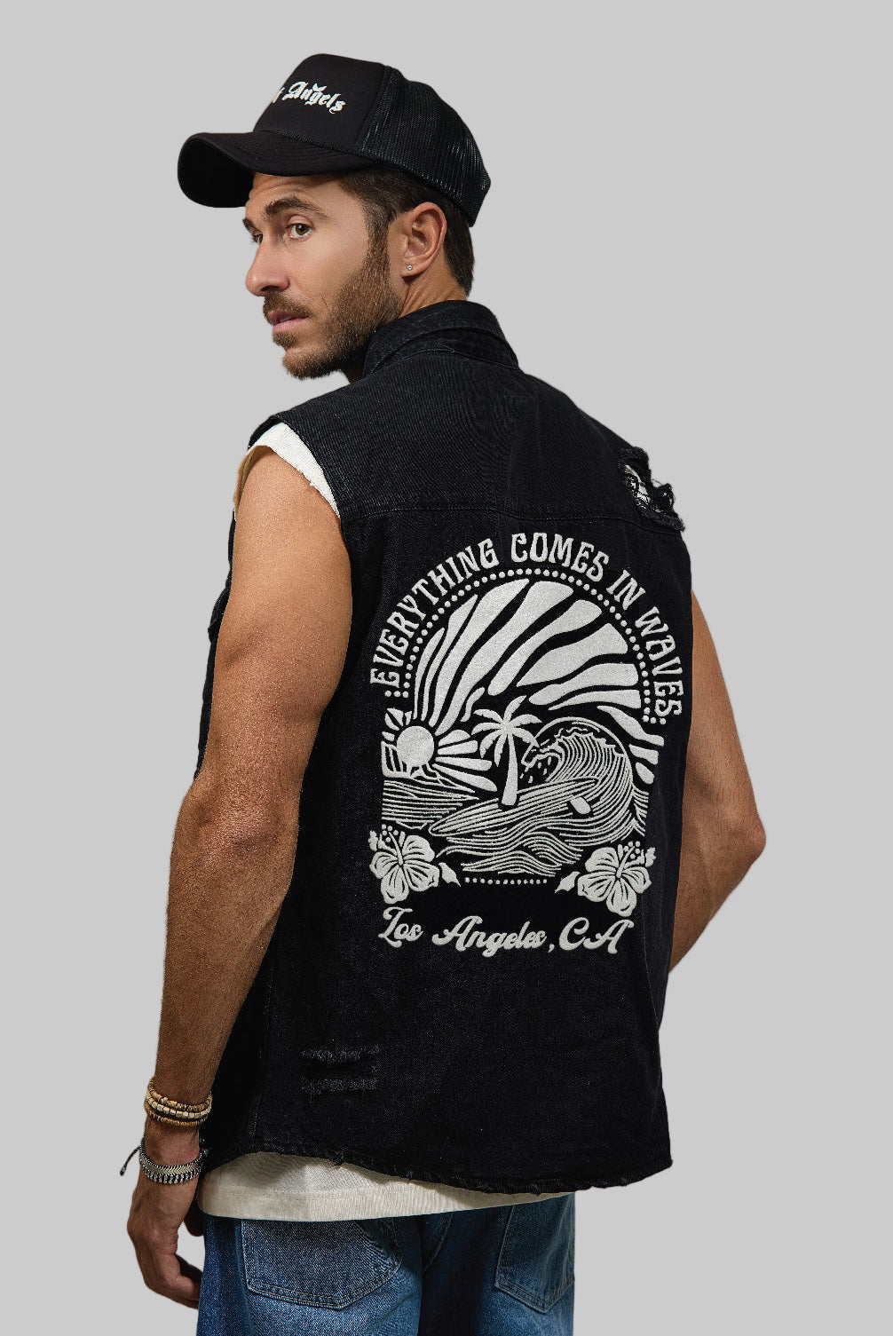 COMES IN WAVES Men Denim Vest Jacket