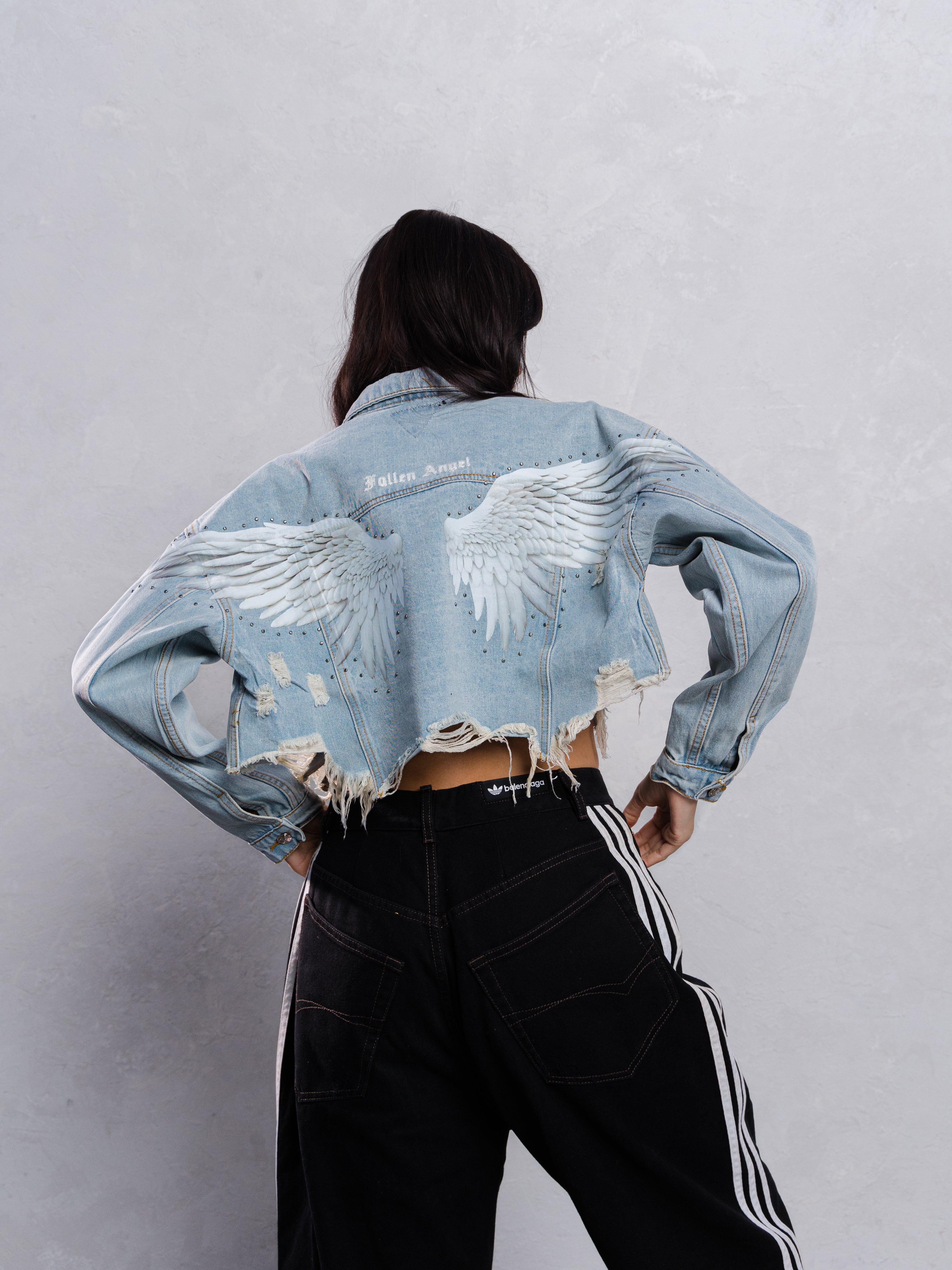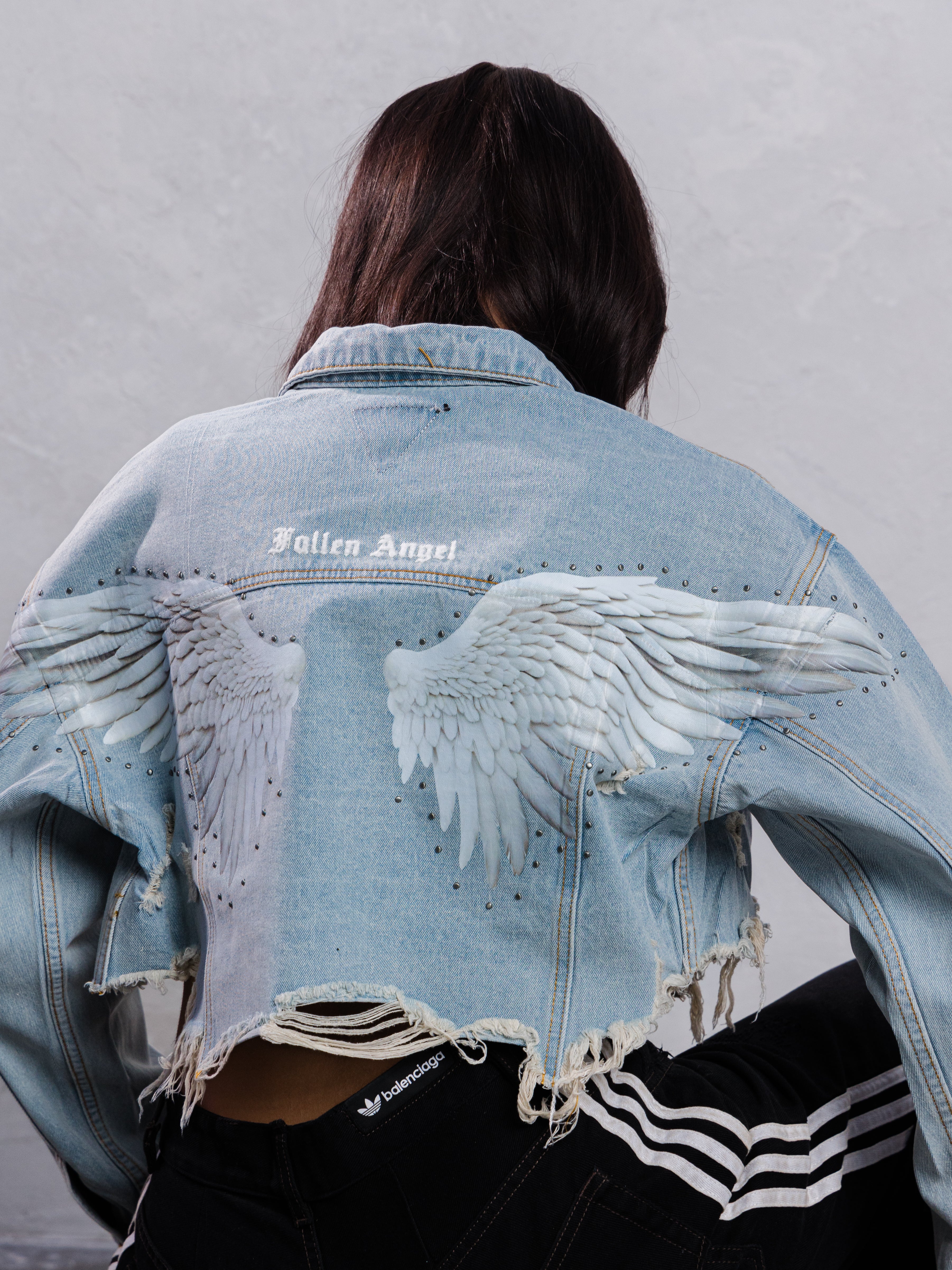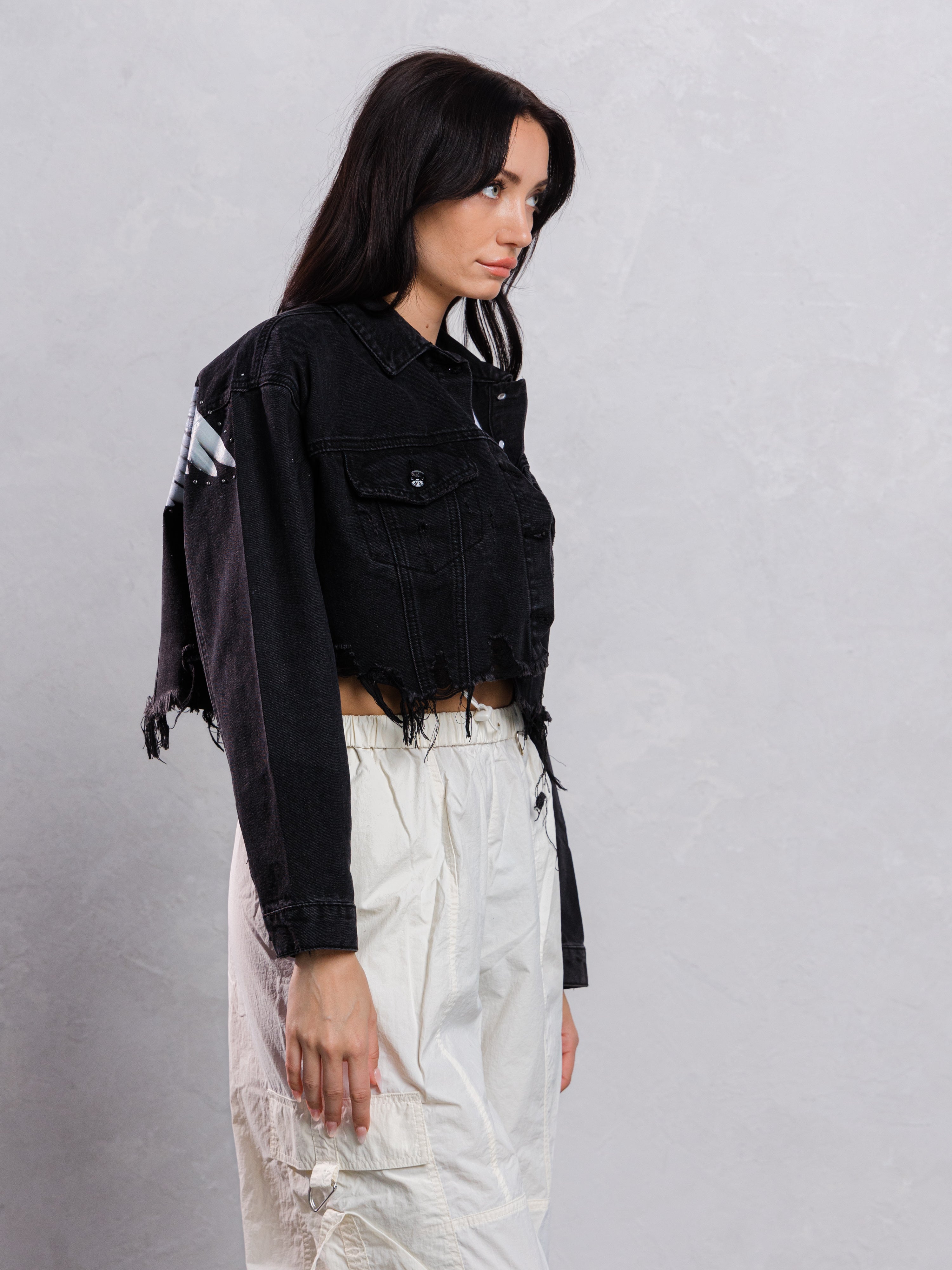 Cropped Distressed Denim Jacket, crafted distressed hemline,