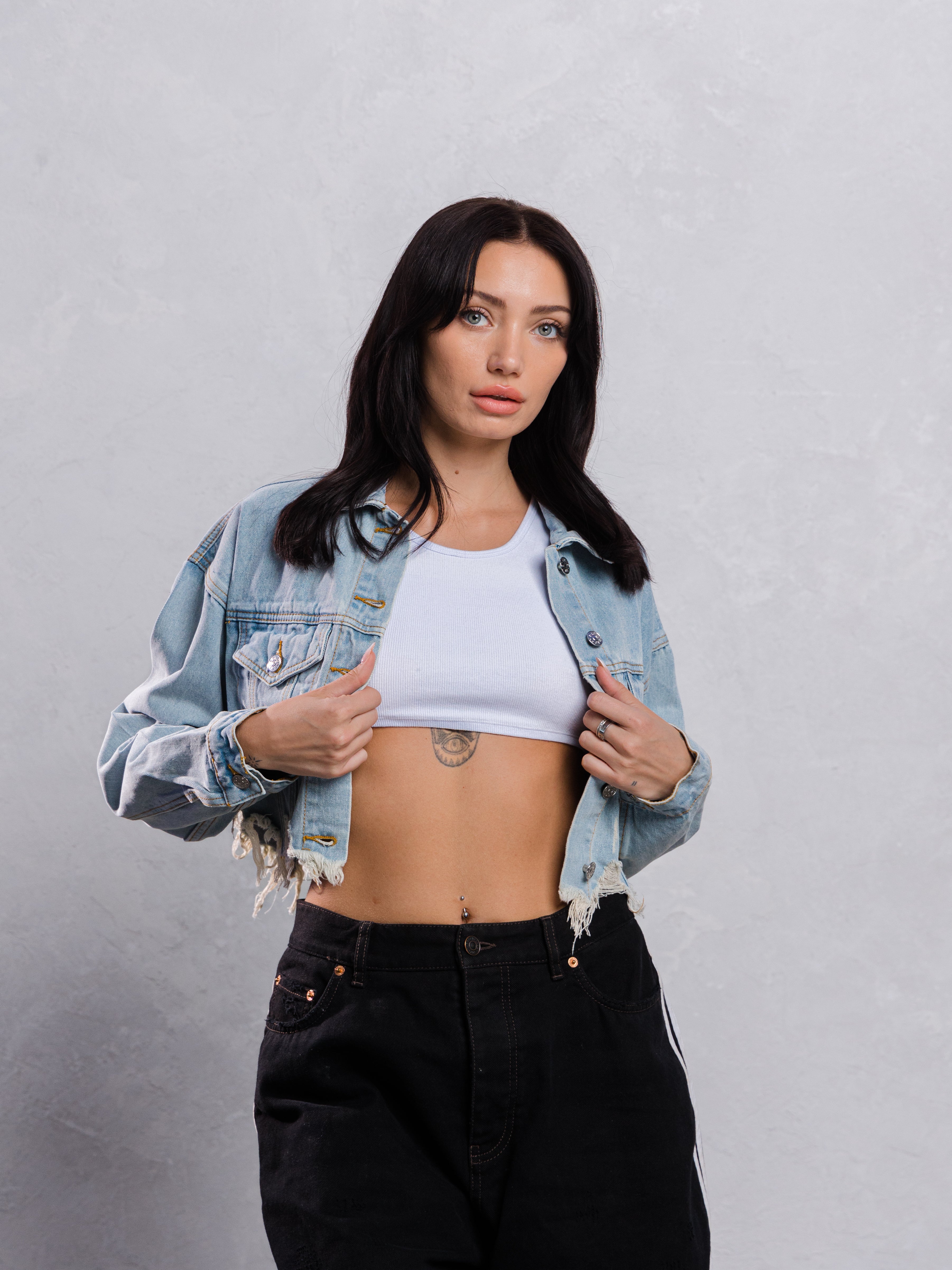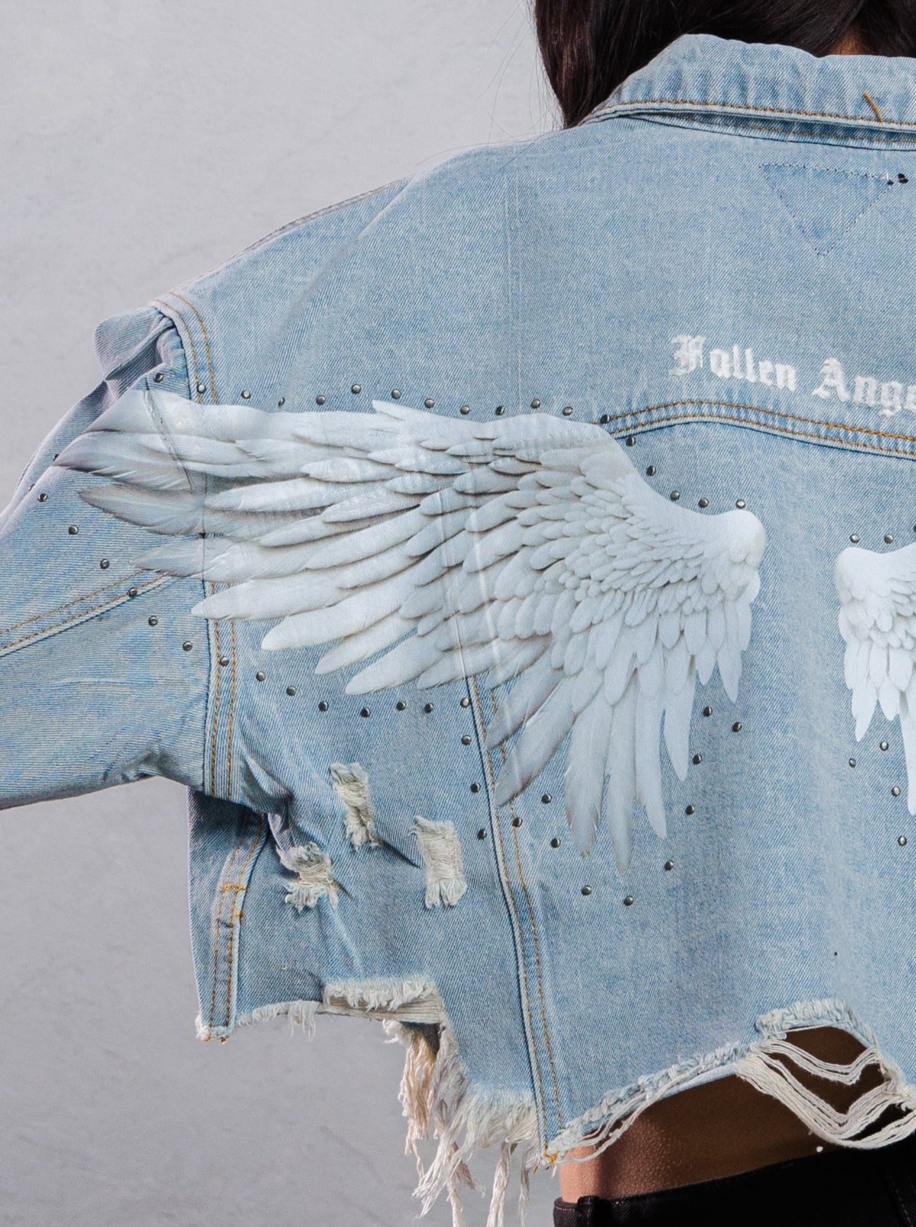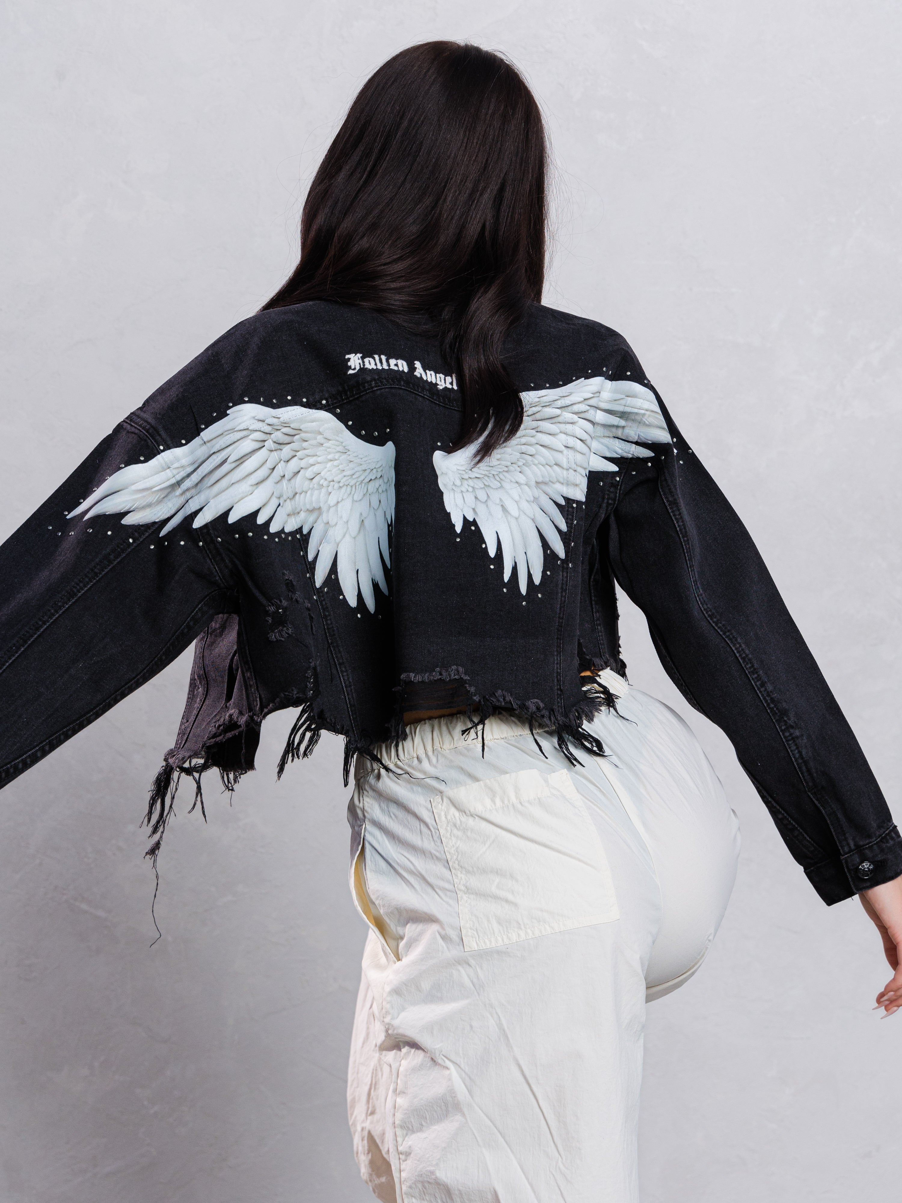 Cropped Distressed Denim Jacket, crafted distressed hemline,
