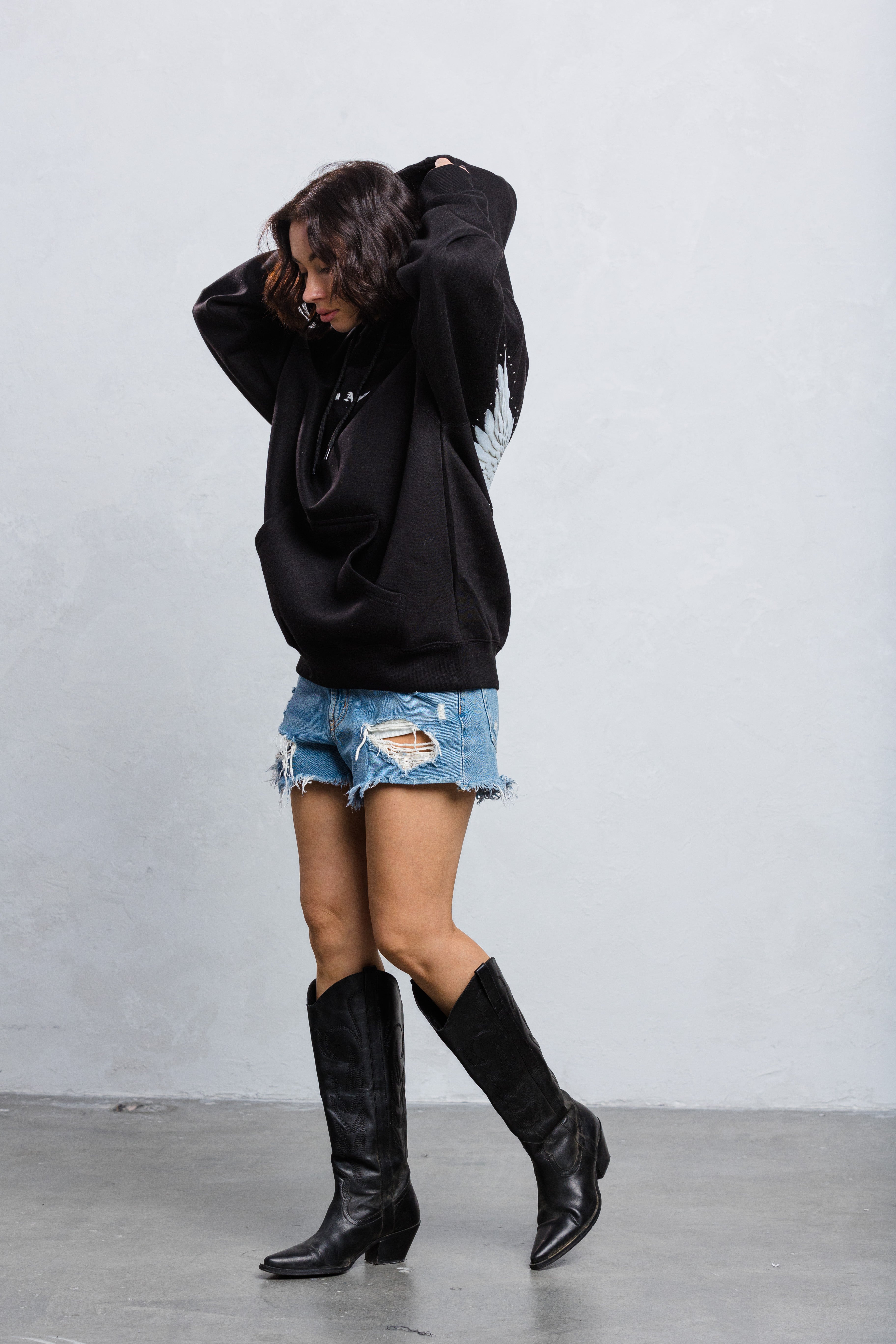 Classic mid-weight hoodie is spun from our premium 3-end fleece,