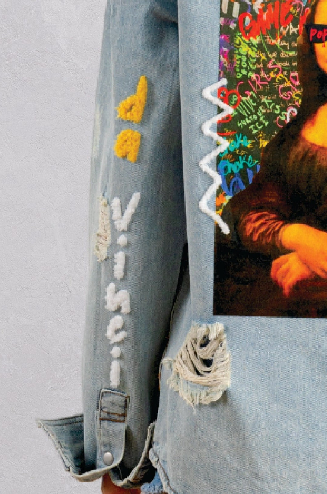 Featuring a crafted 3D Fuzzy texture Patch design on the back .