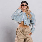 Cropped Distressed Denim Jacket, crafted distressed hemline,