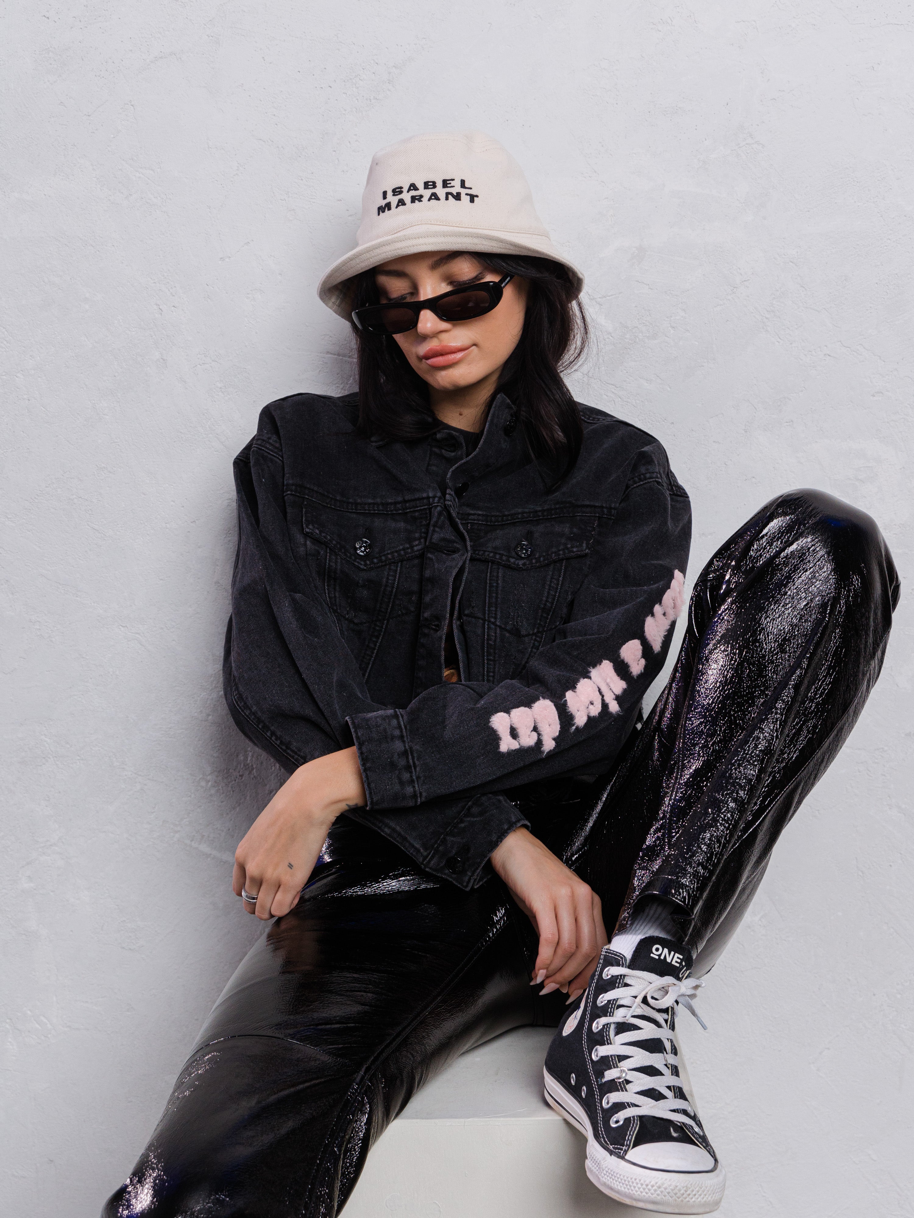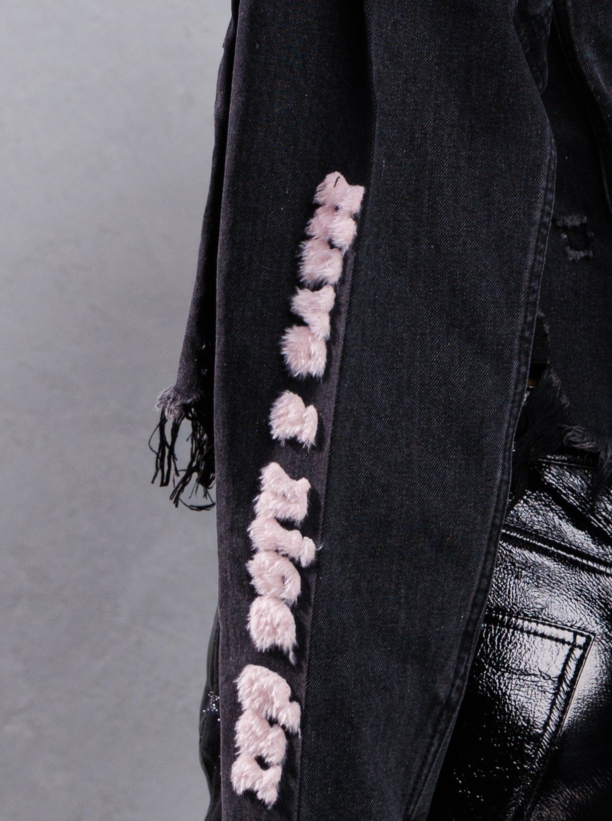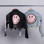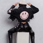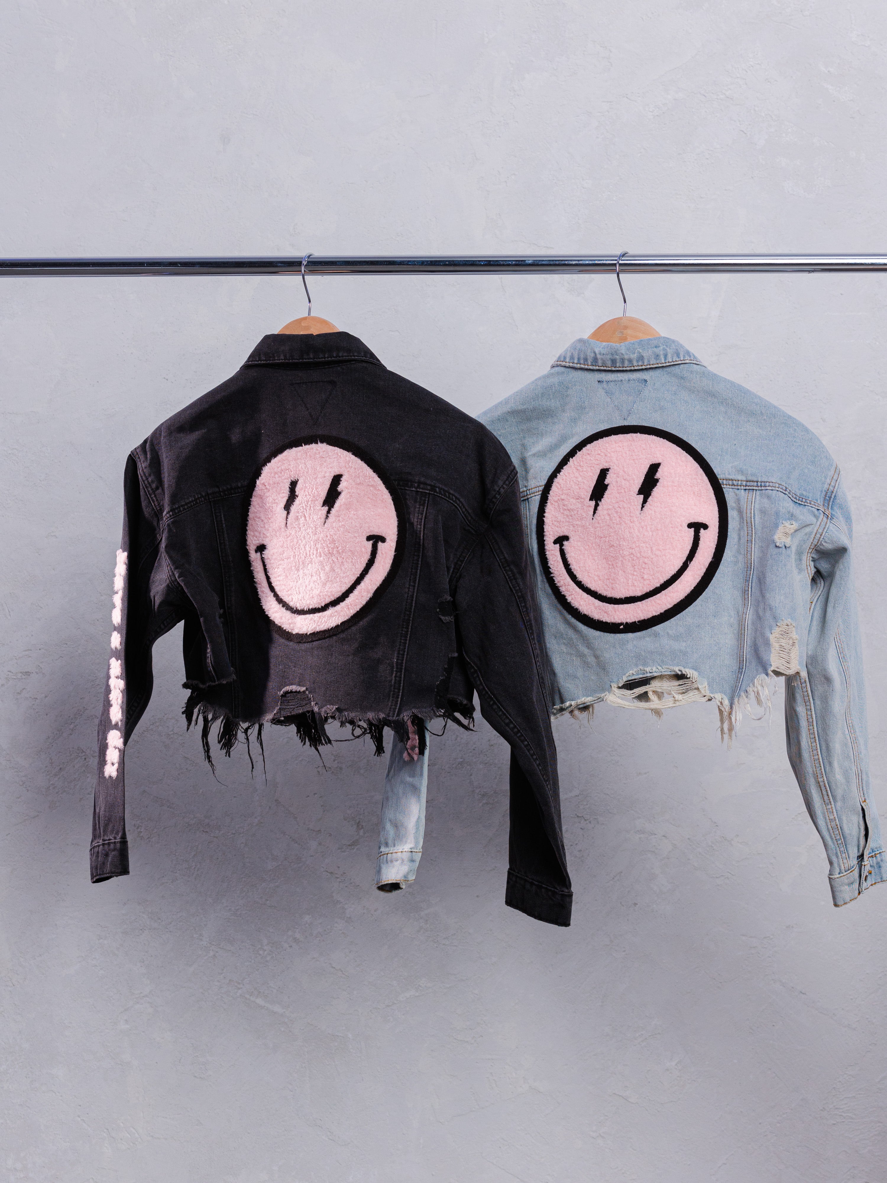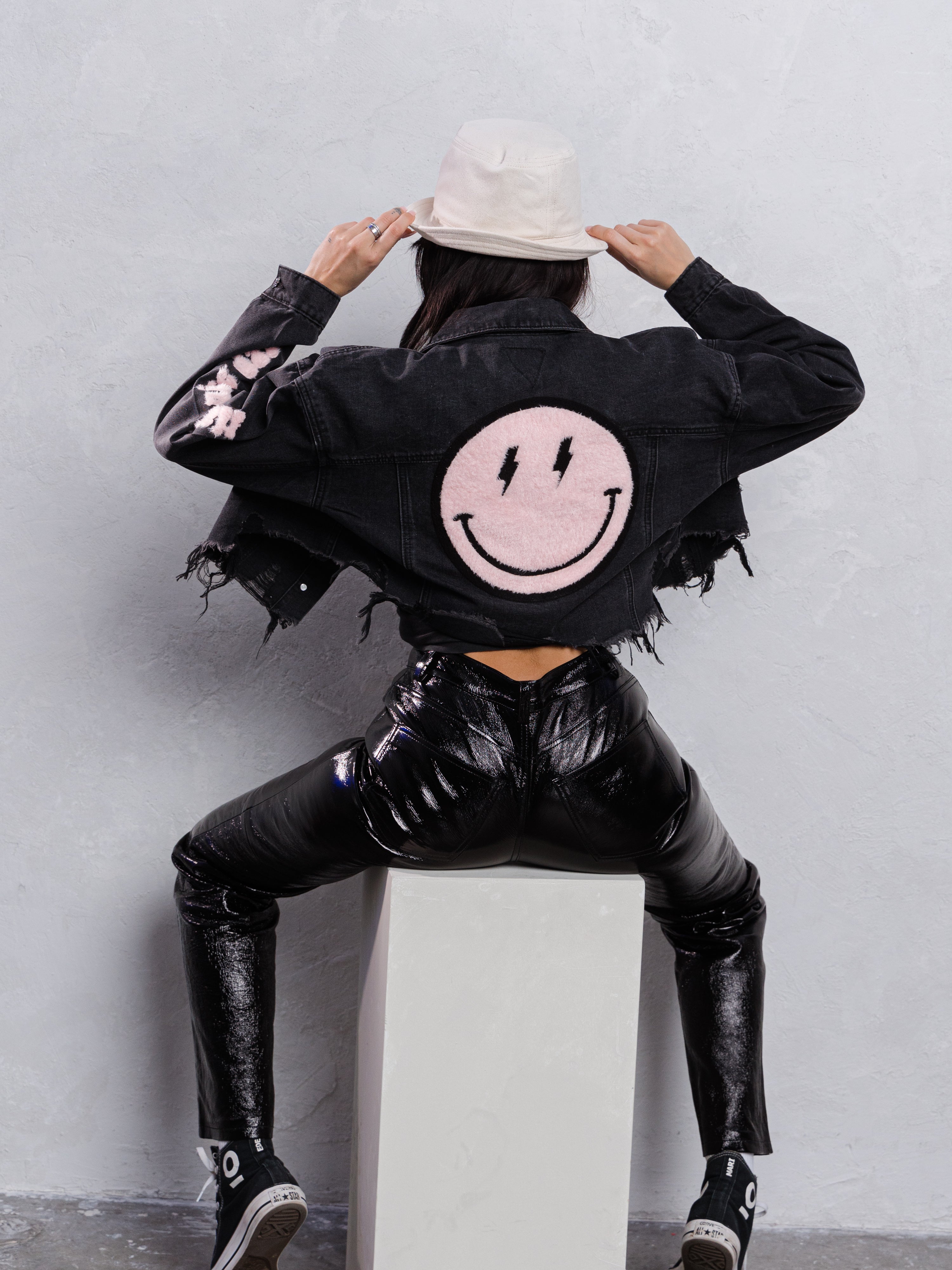 HAVE A NICE DAY pink smiley Crop Denim Jacket
