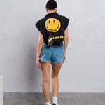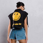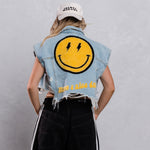 HAVE A NICE DAY yellow smiley Crop Denim Vest
