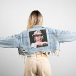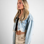 Cropped Distressed Denim Jacket, crafted distressed hemline,
