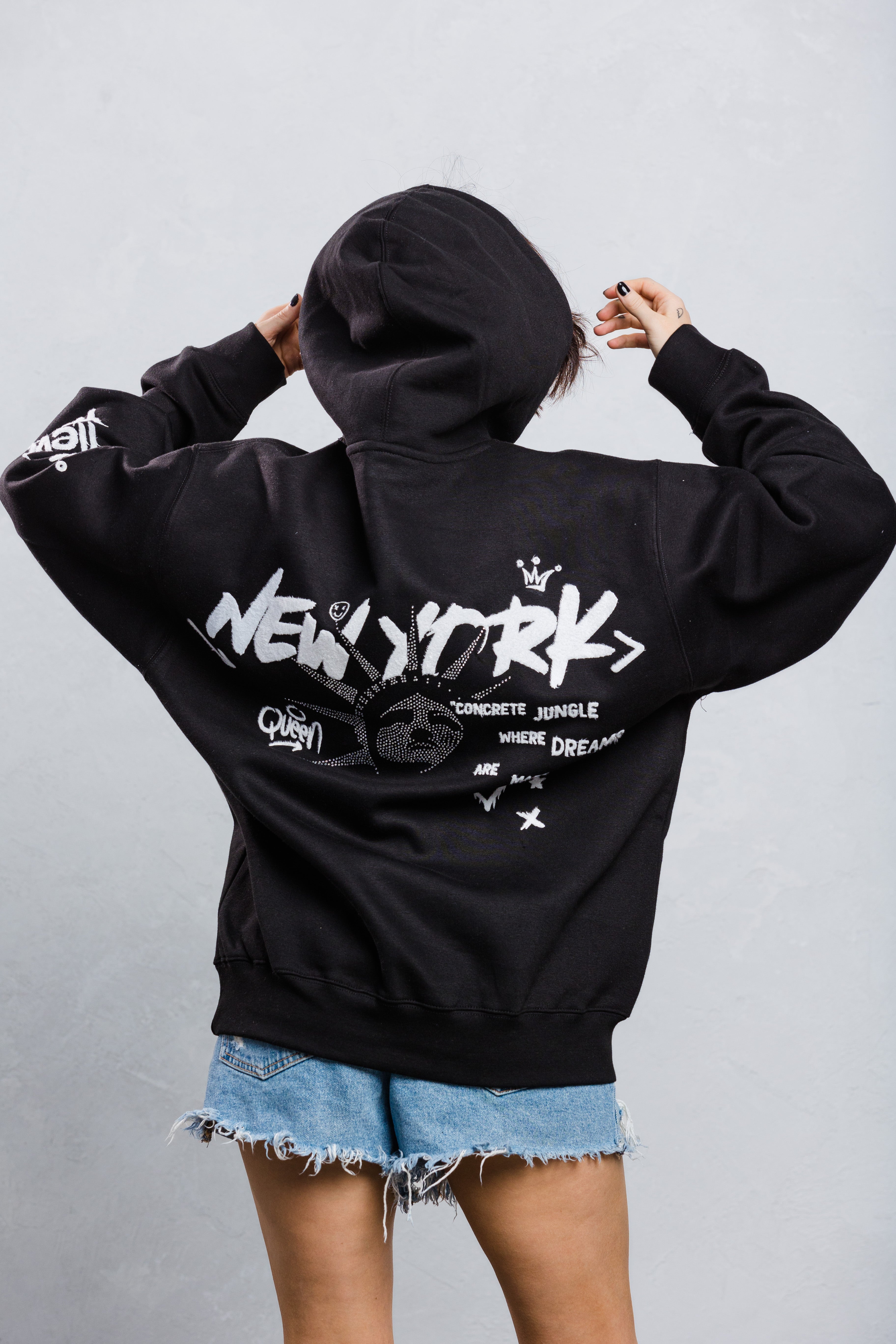Classic mid-weight hoodie is spun from our premium 3-end fleece,