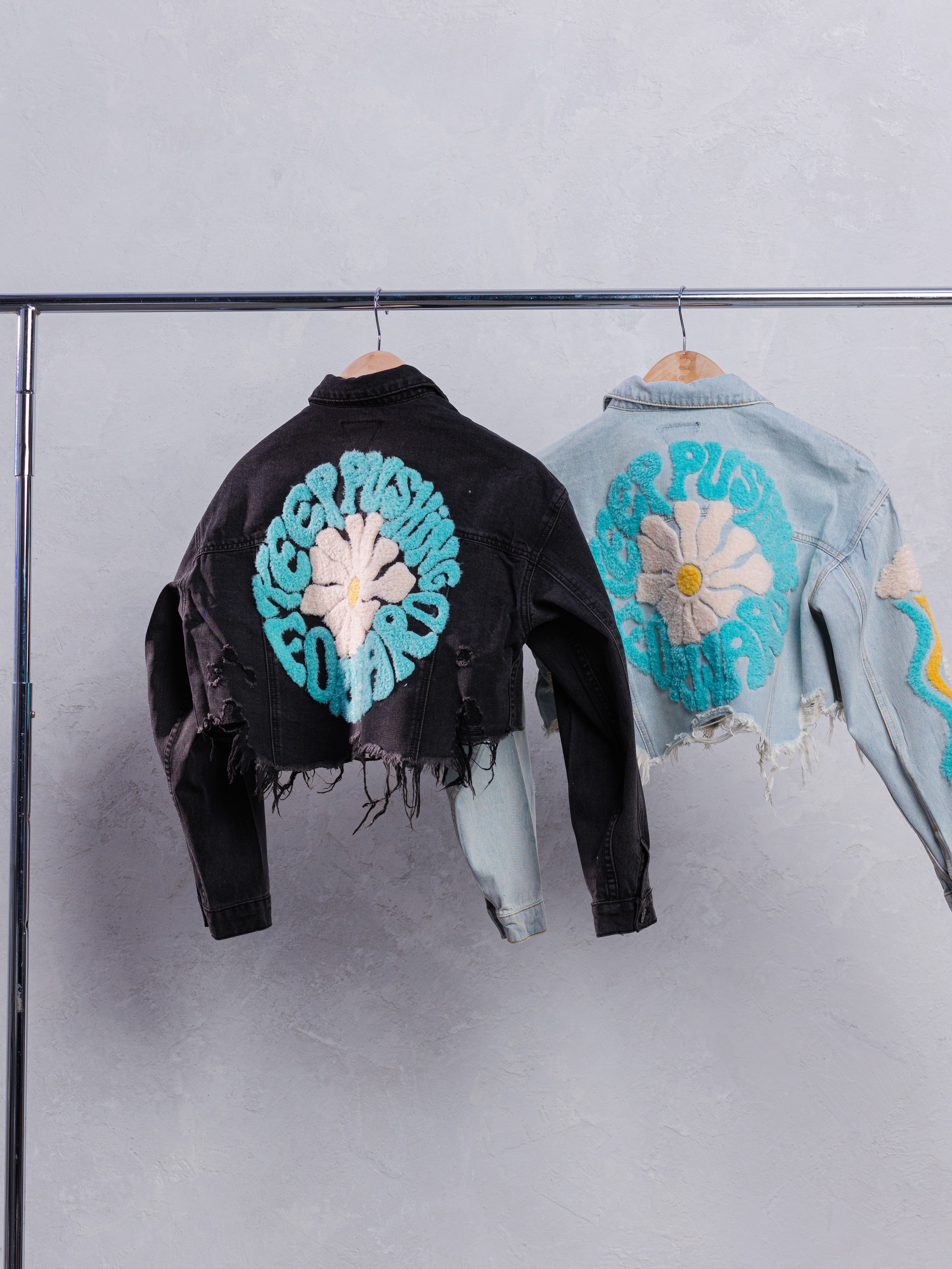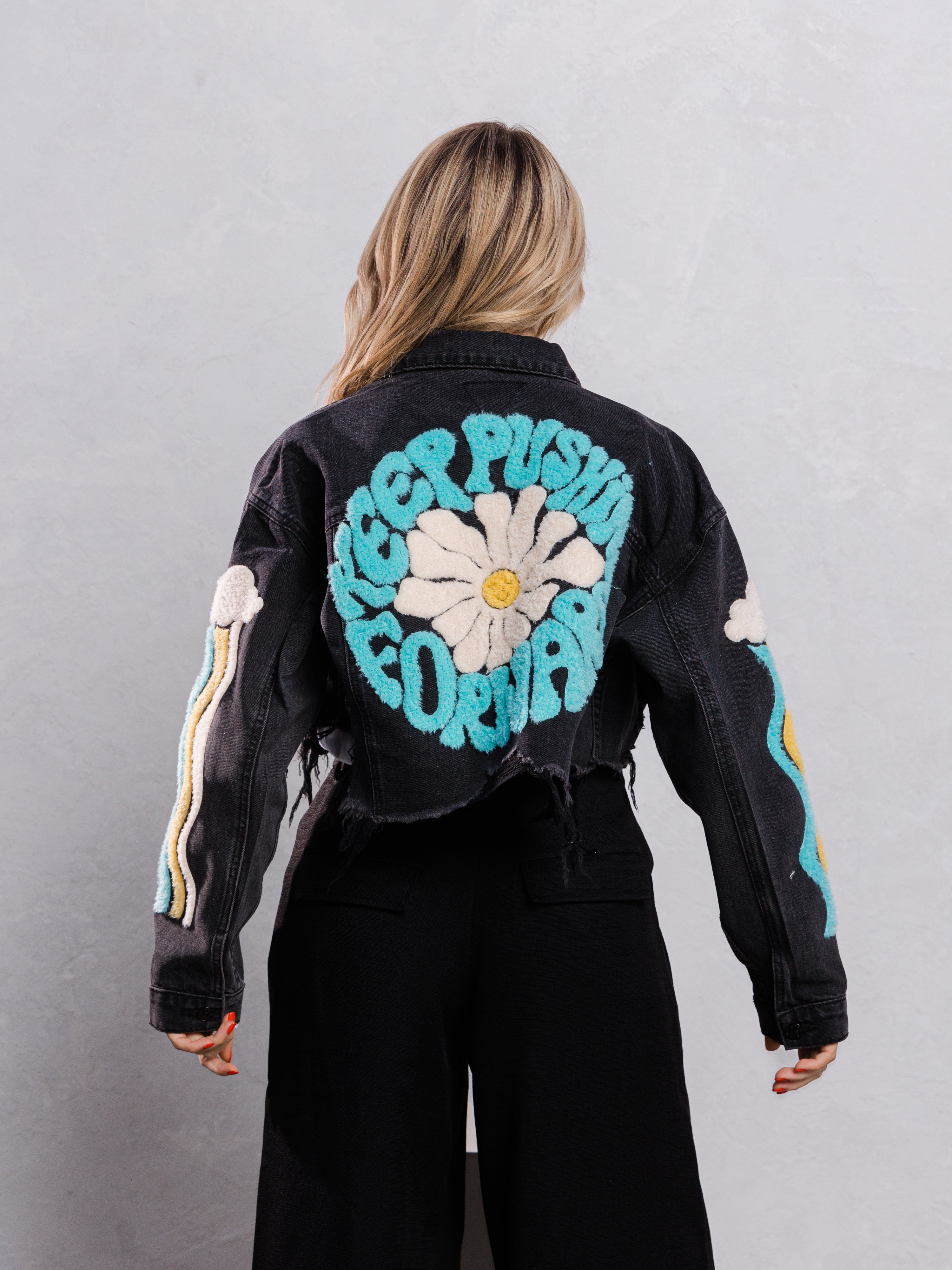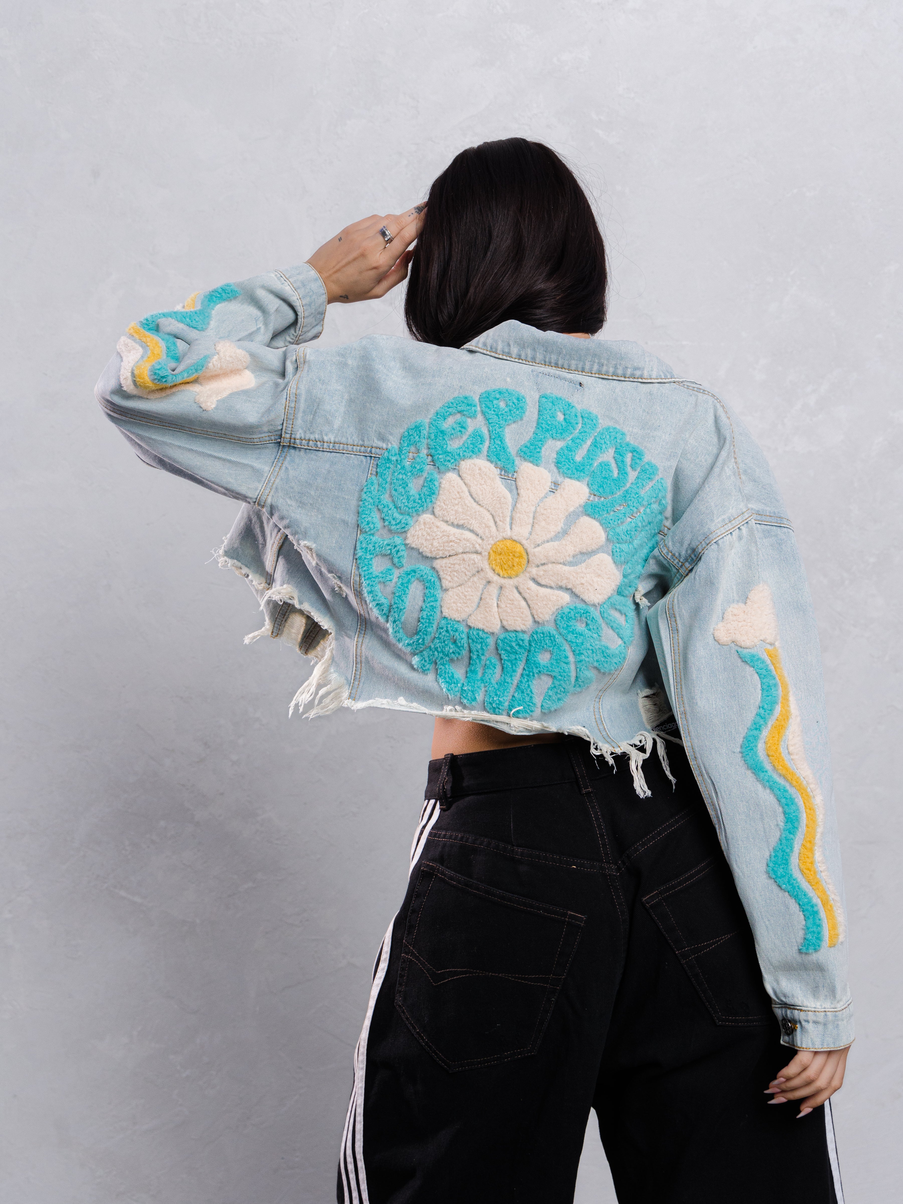 KEEP PUSHING FORWARD Crop Denim Jacket