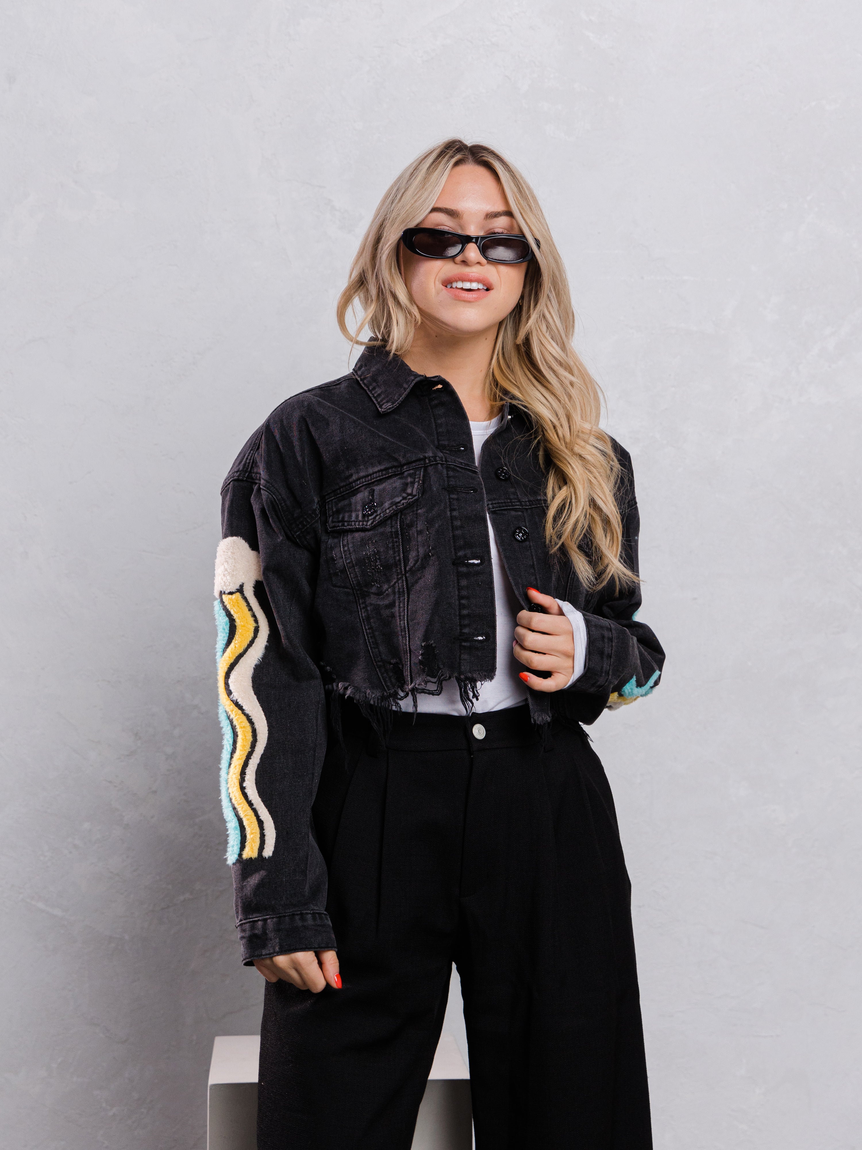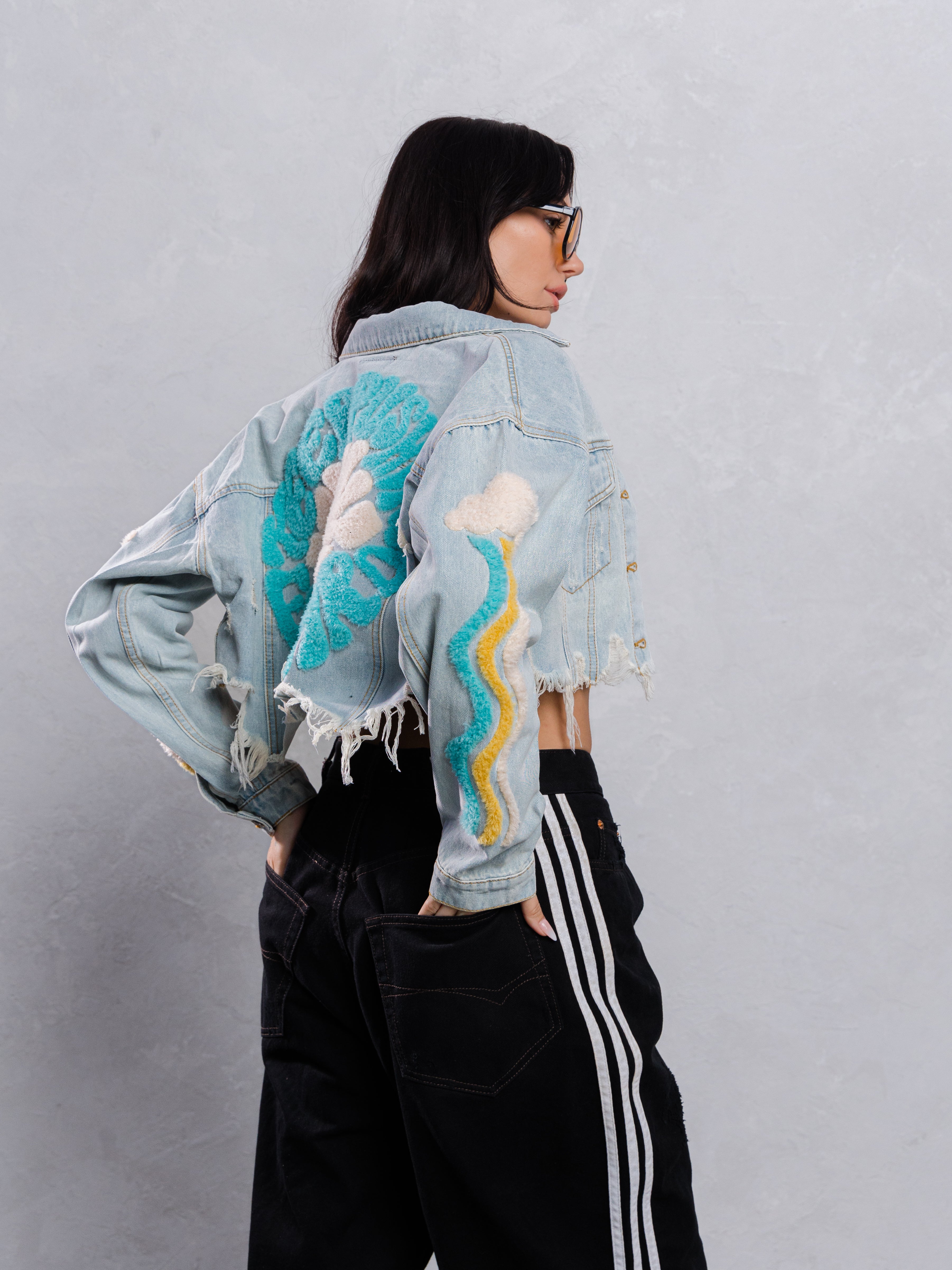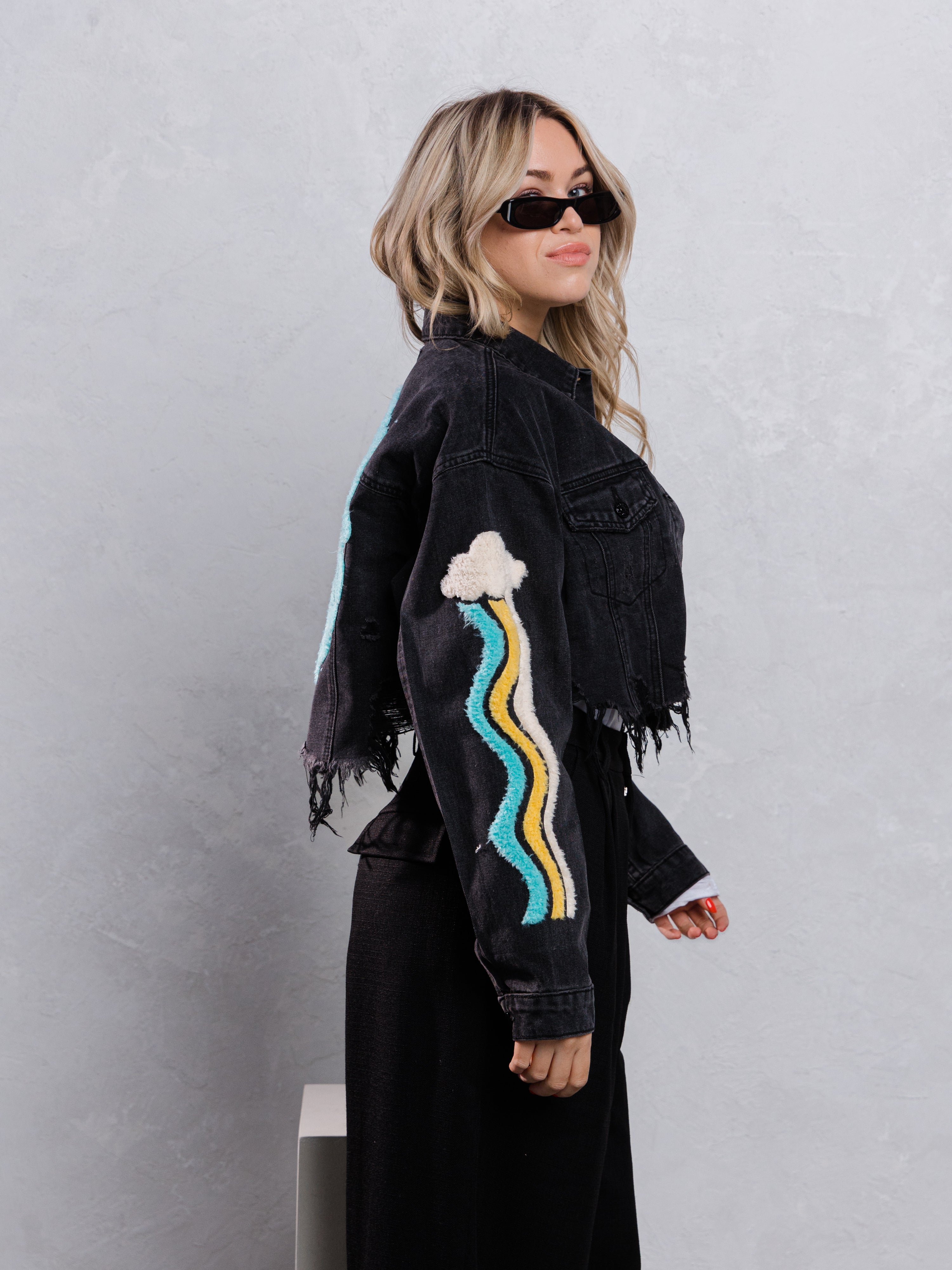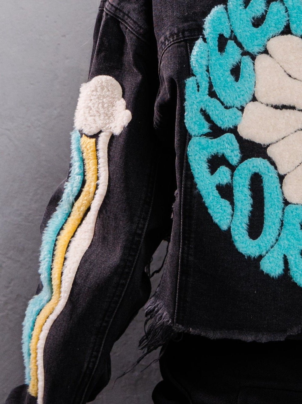 KEEP PUSHING FORWARD Crop Denim Jacket