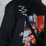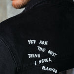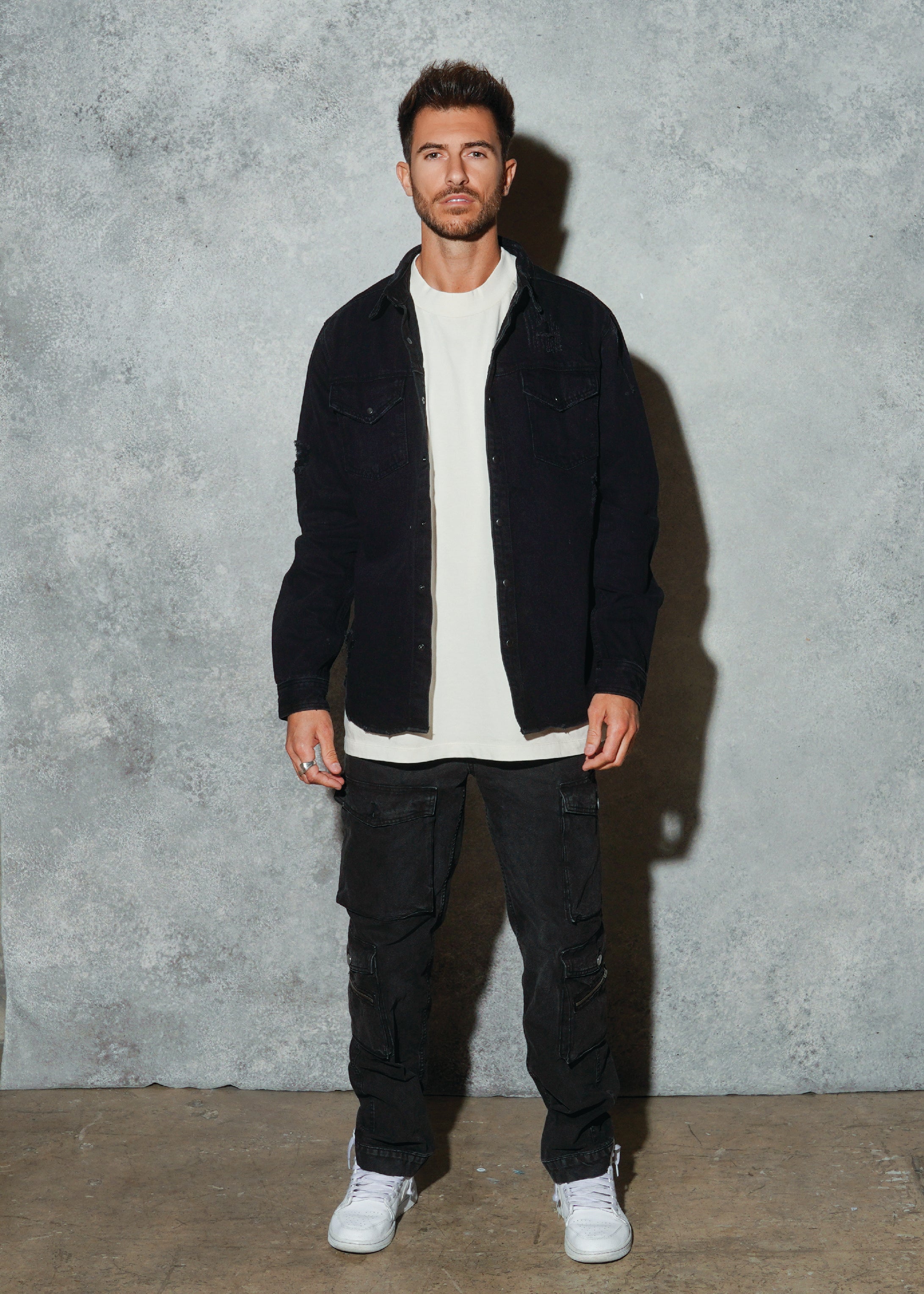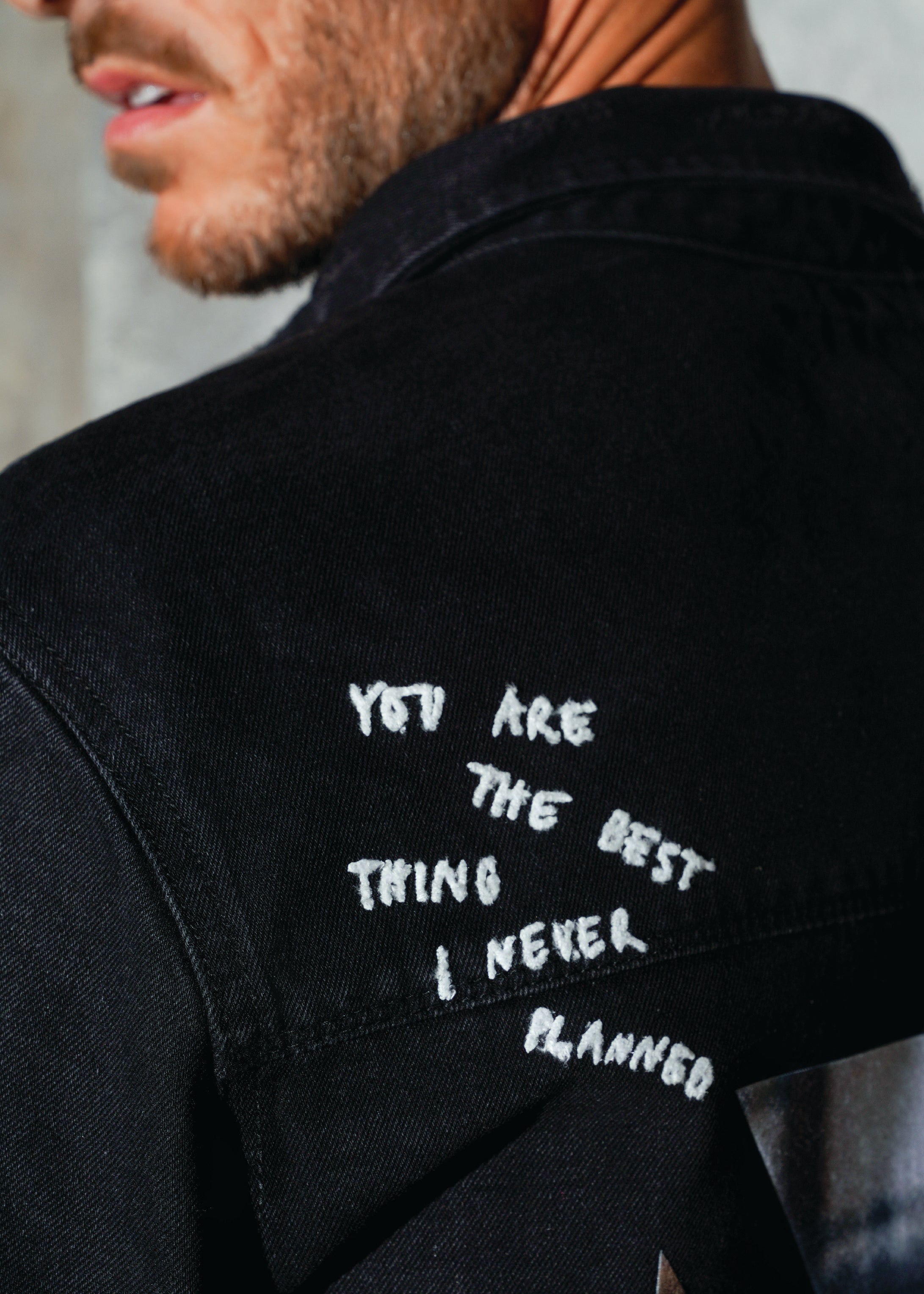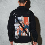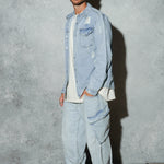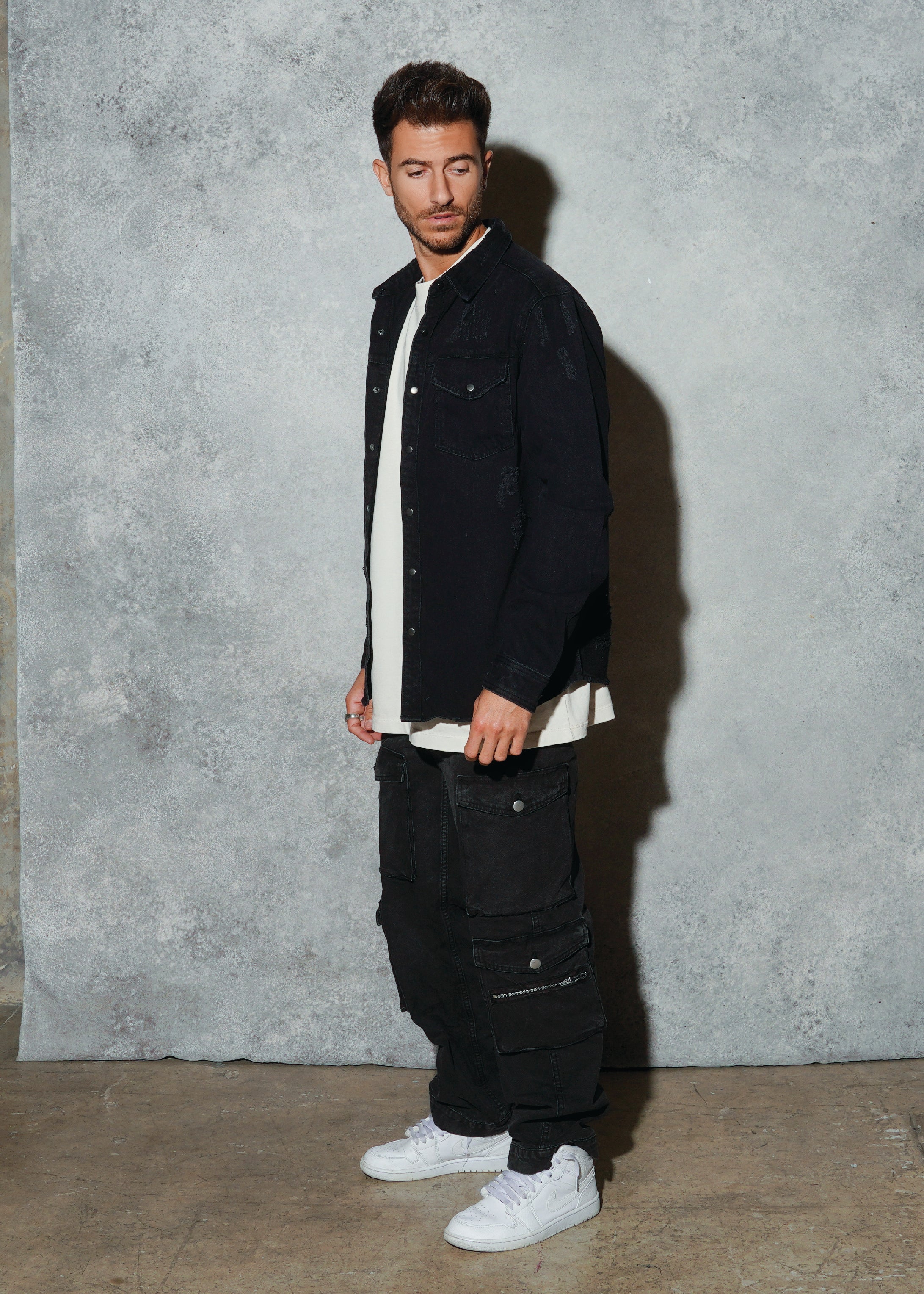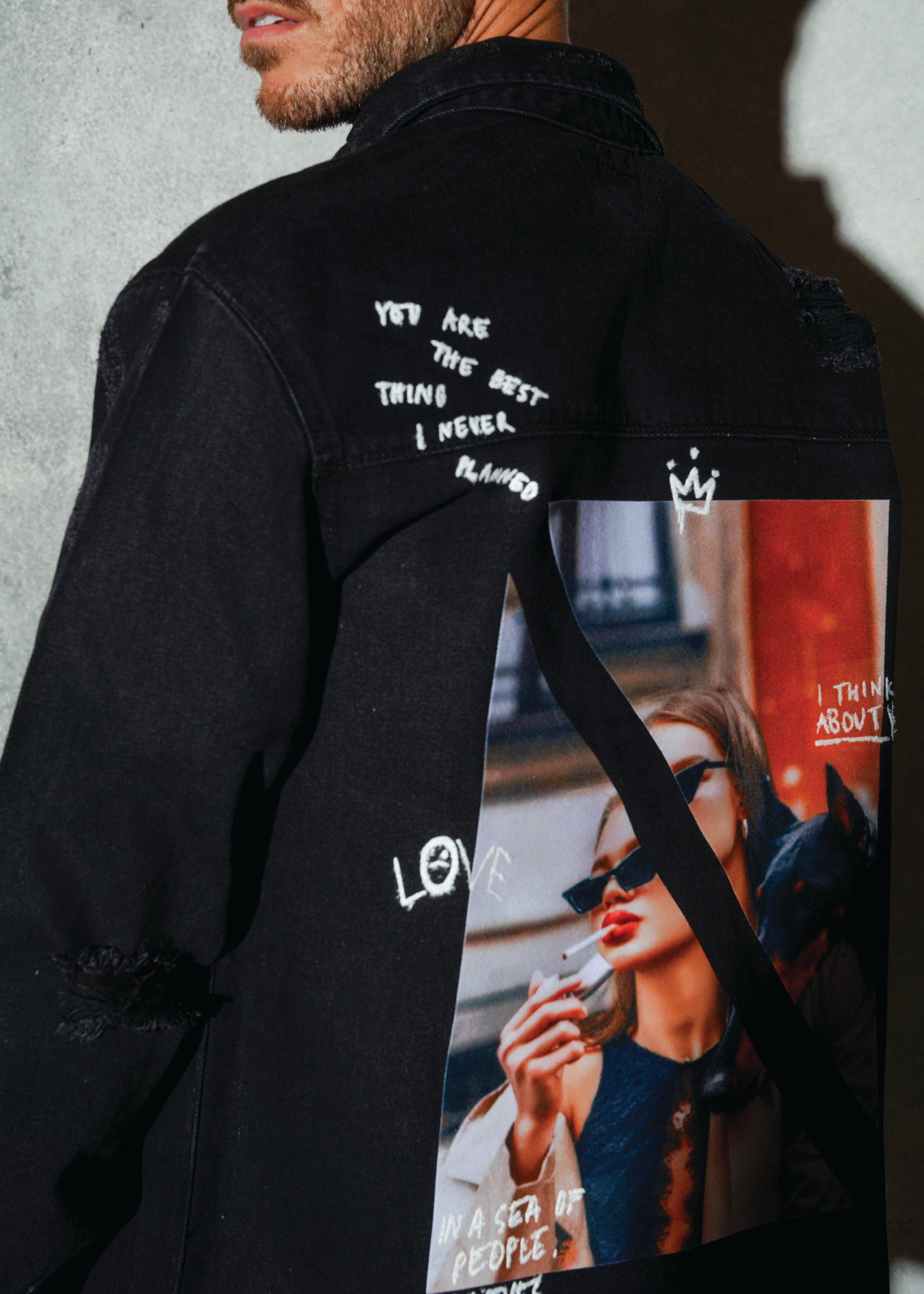 Long Distressed Denim Jacket, crafted distressed hemline,
