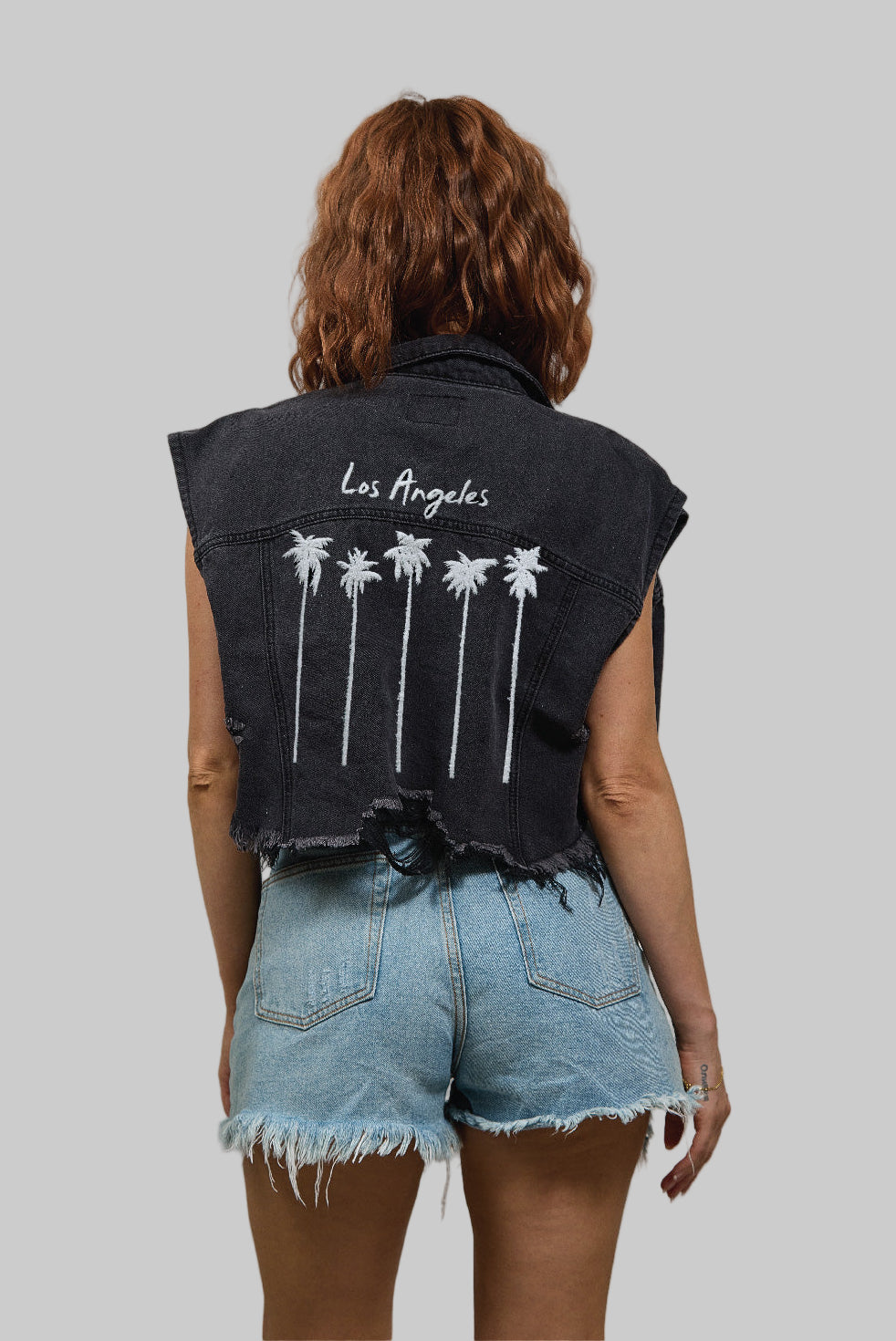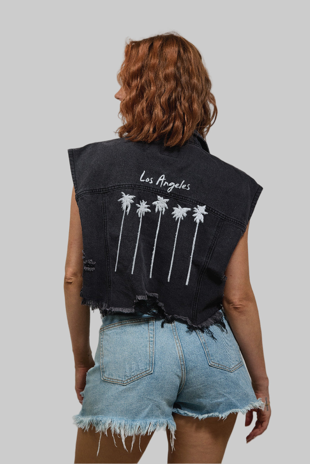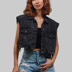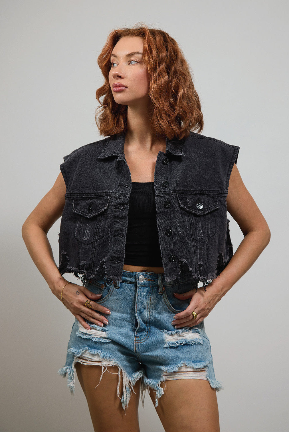 Cropped Distressed Denim Jacket, crafted distressed hemline,