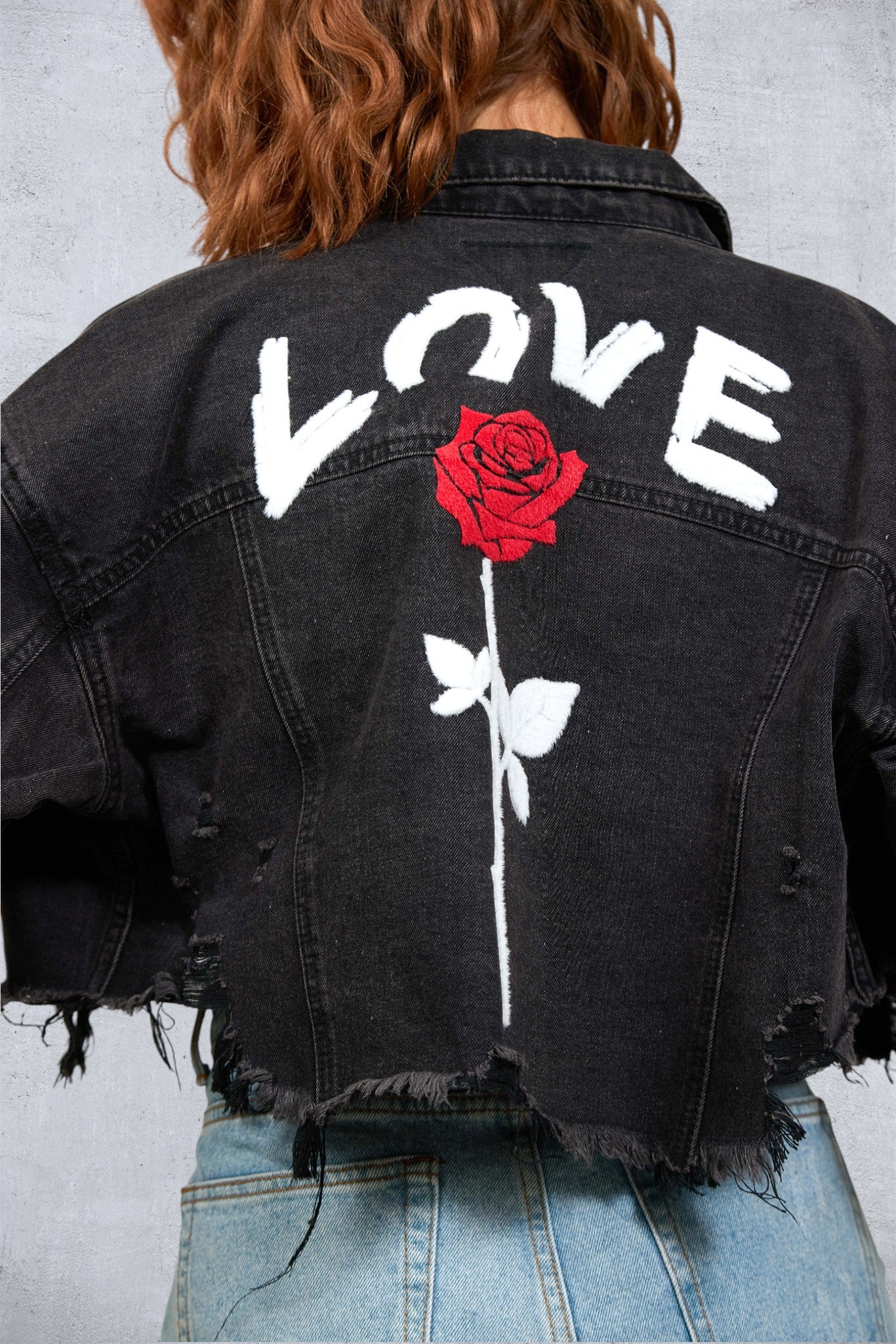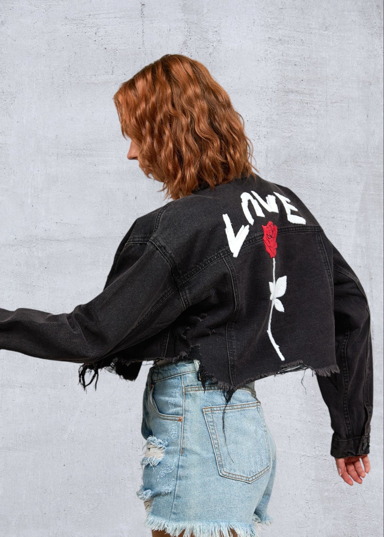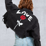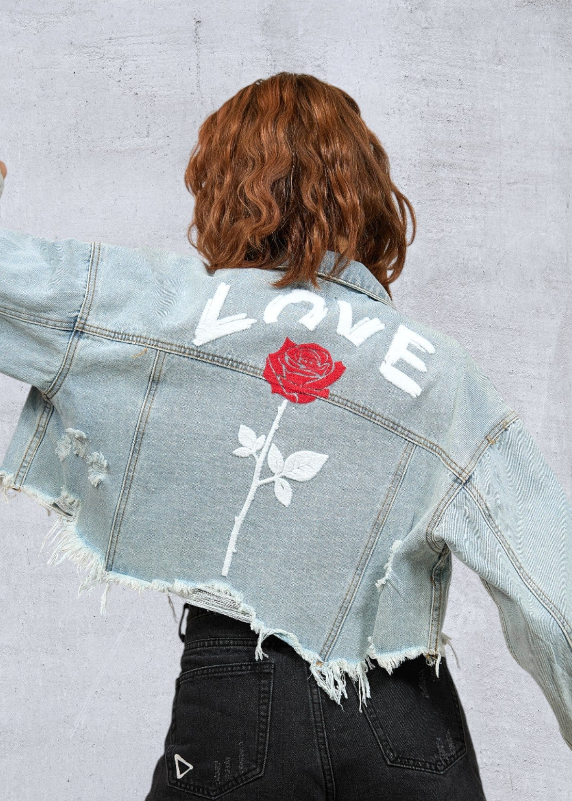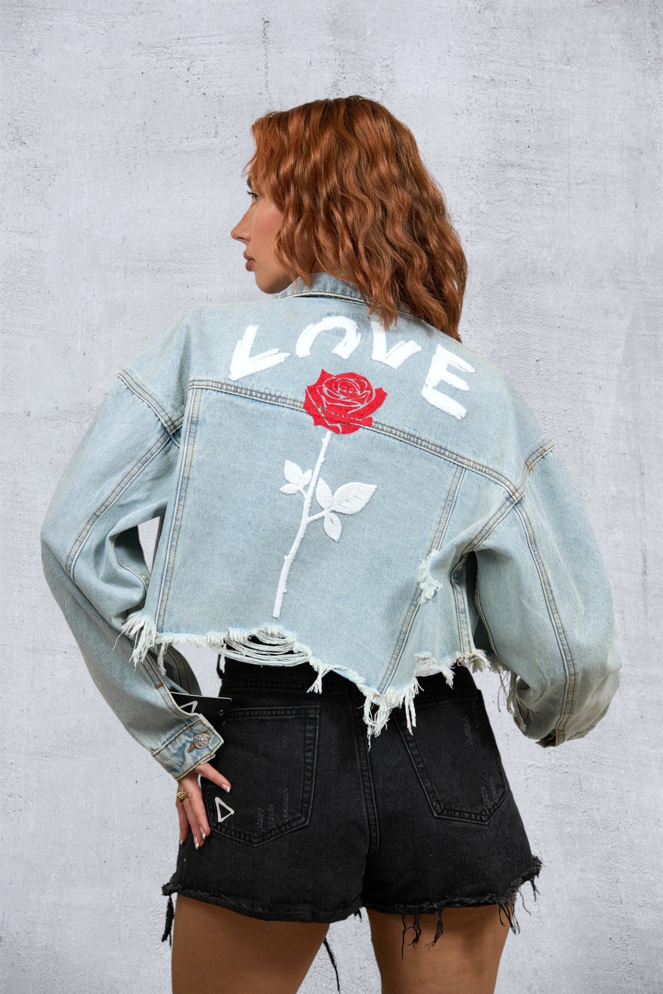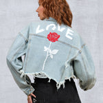 Cropped Distressed Denim Jacket, crafted distressed hemline,