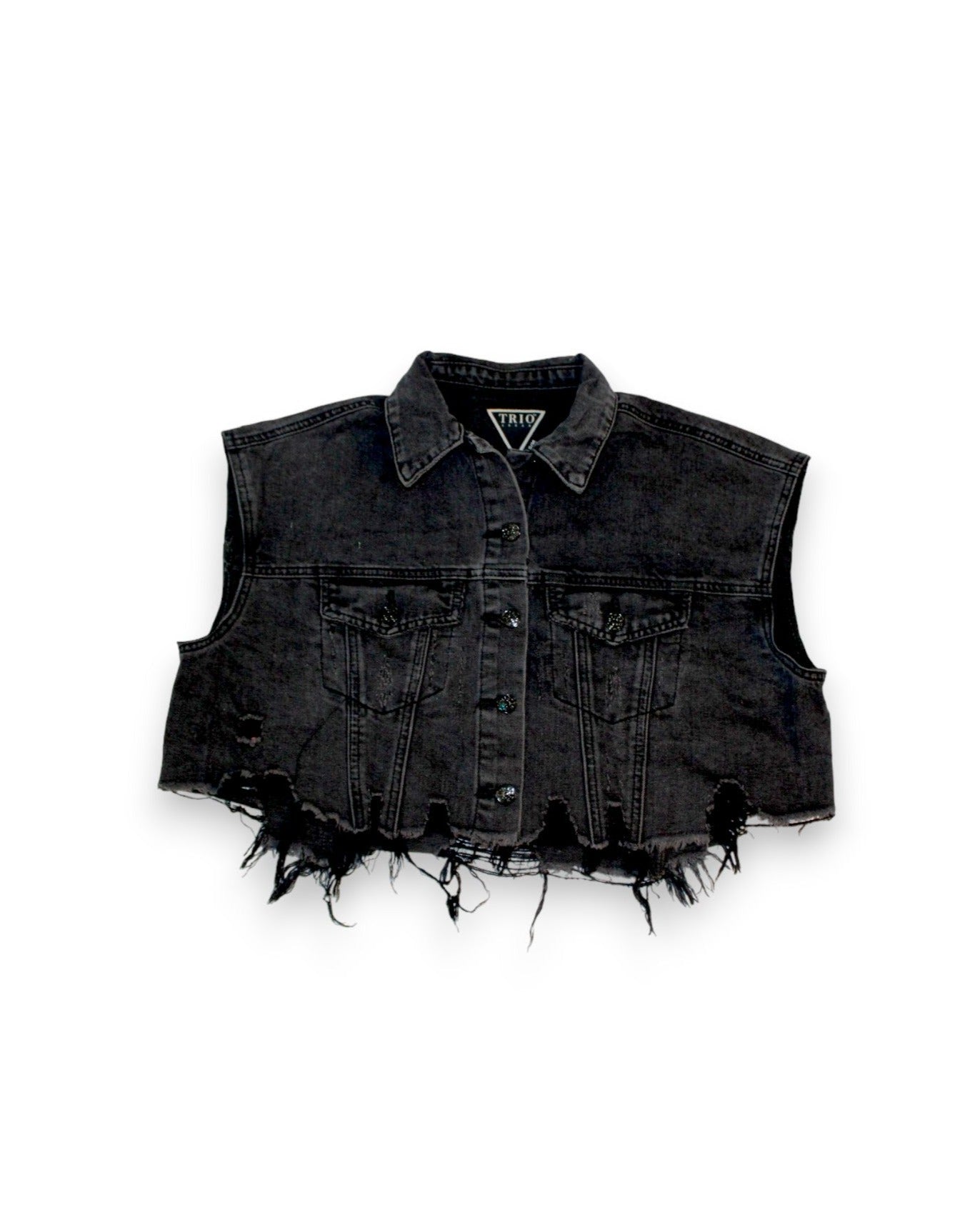Cropped Distressed Denim Jacket, crafted distressed hemline,