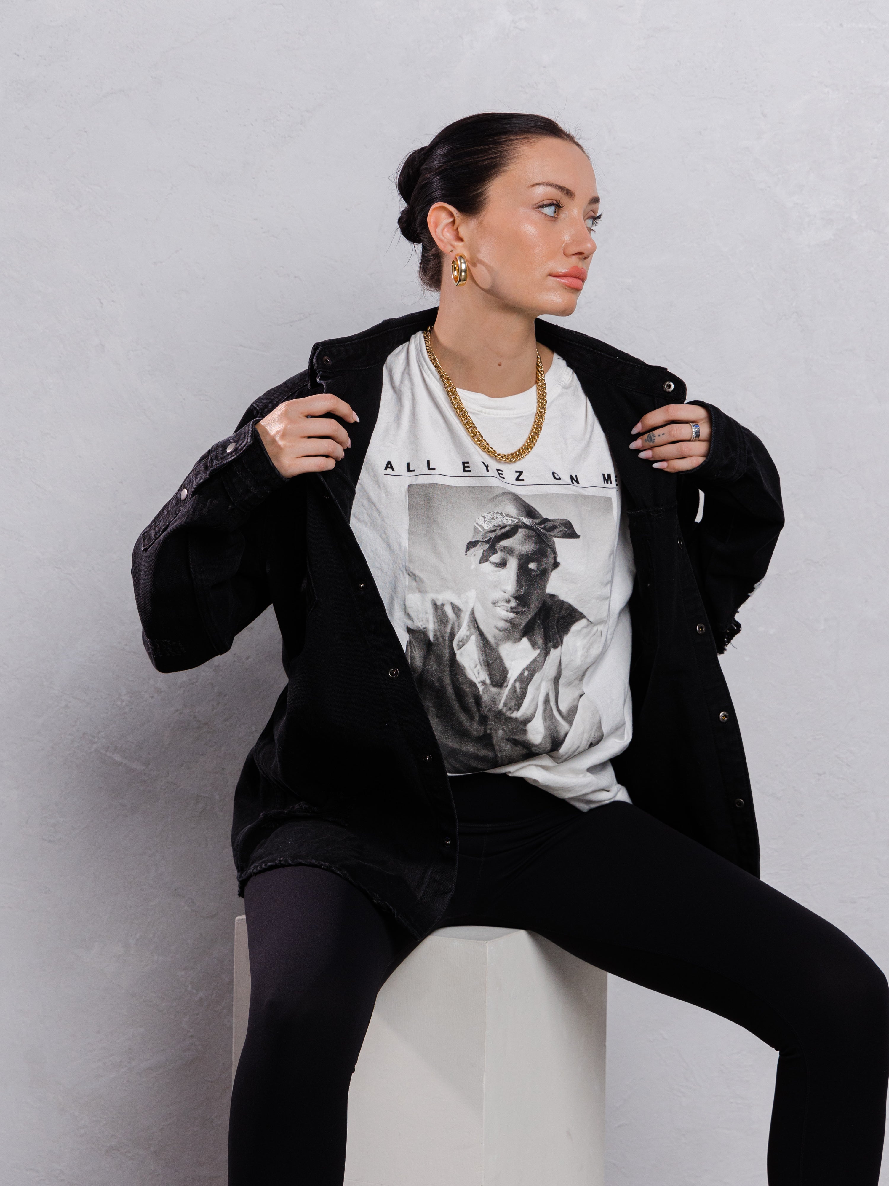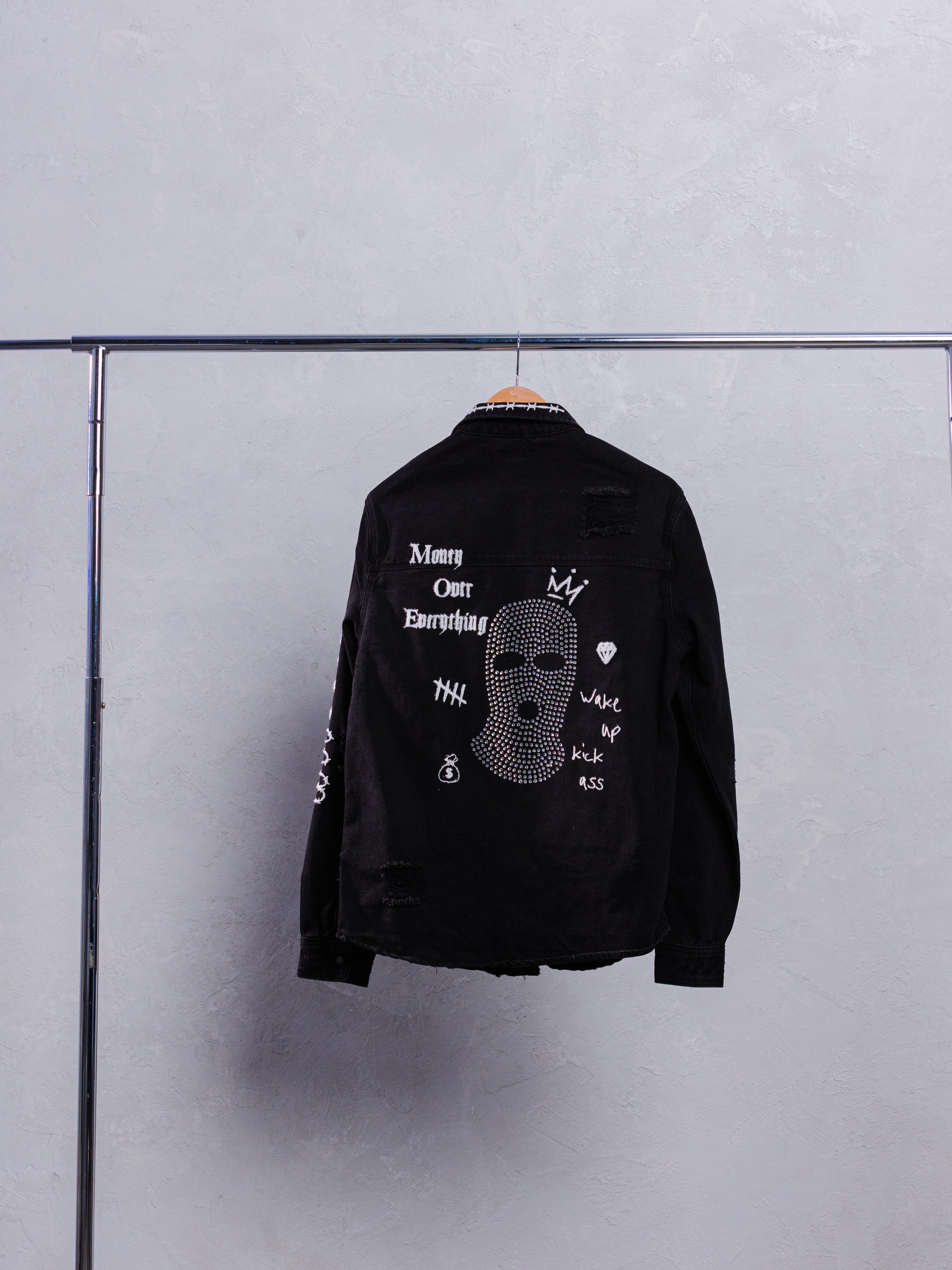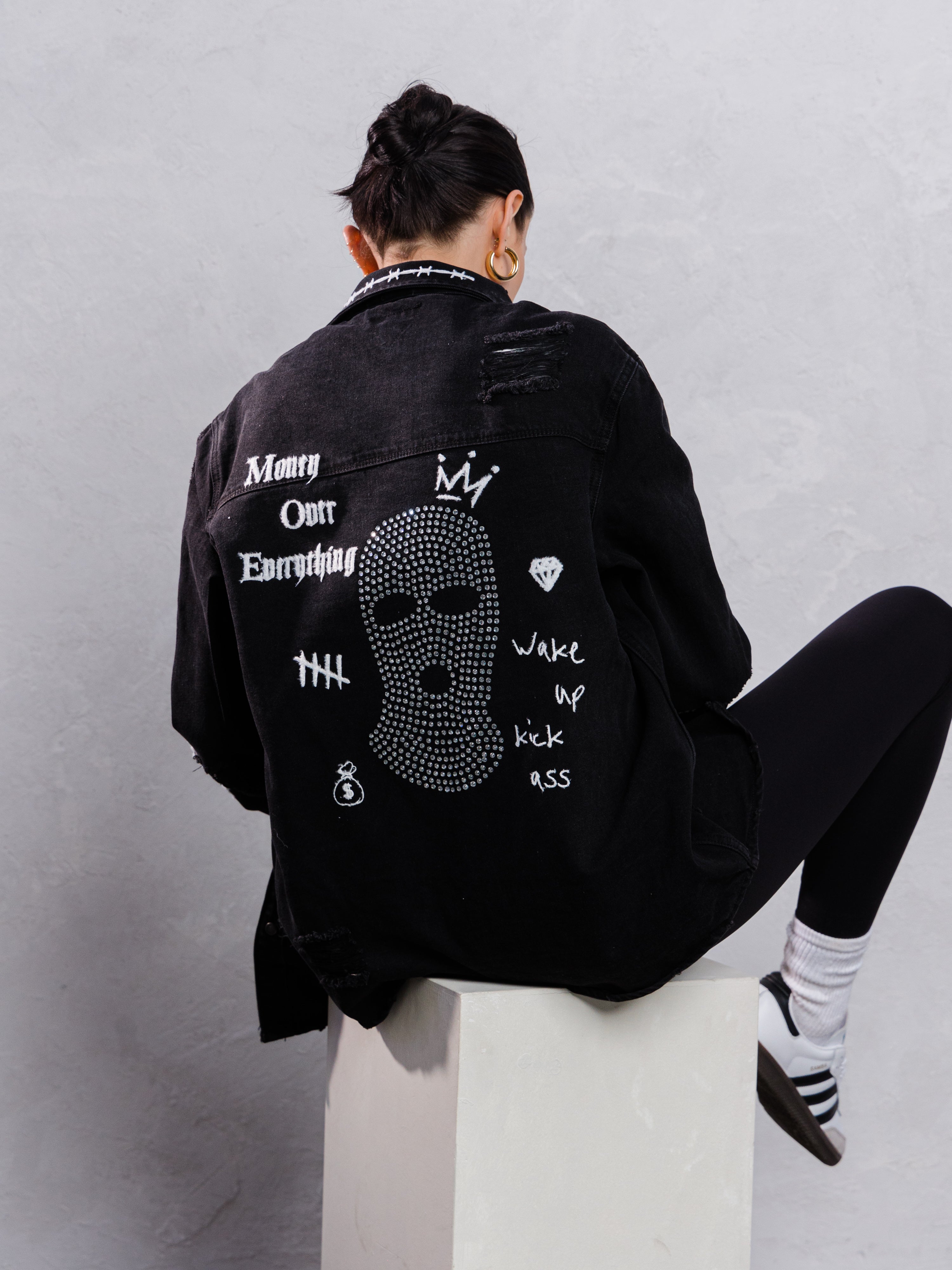 Long Distressed Denim Jacket, crafted distressed hemline,