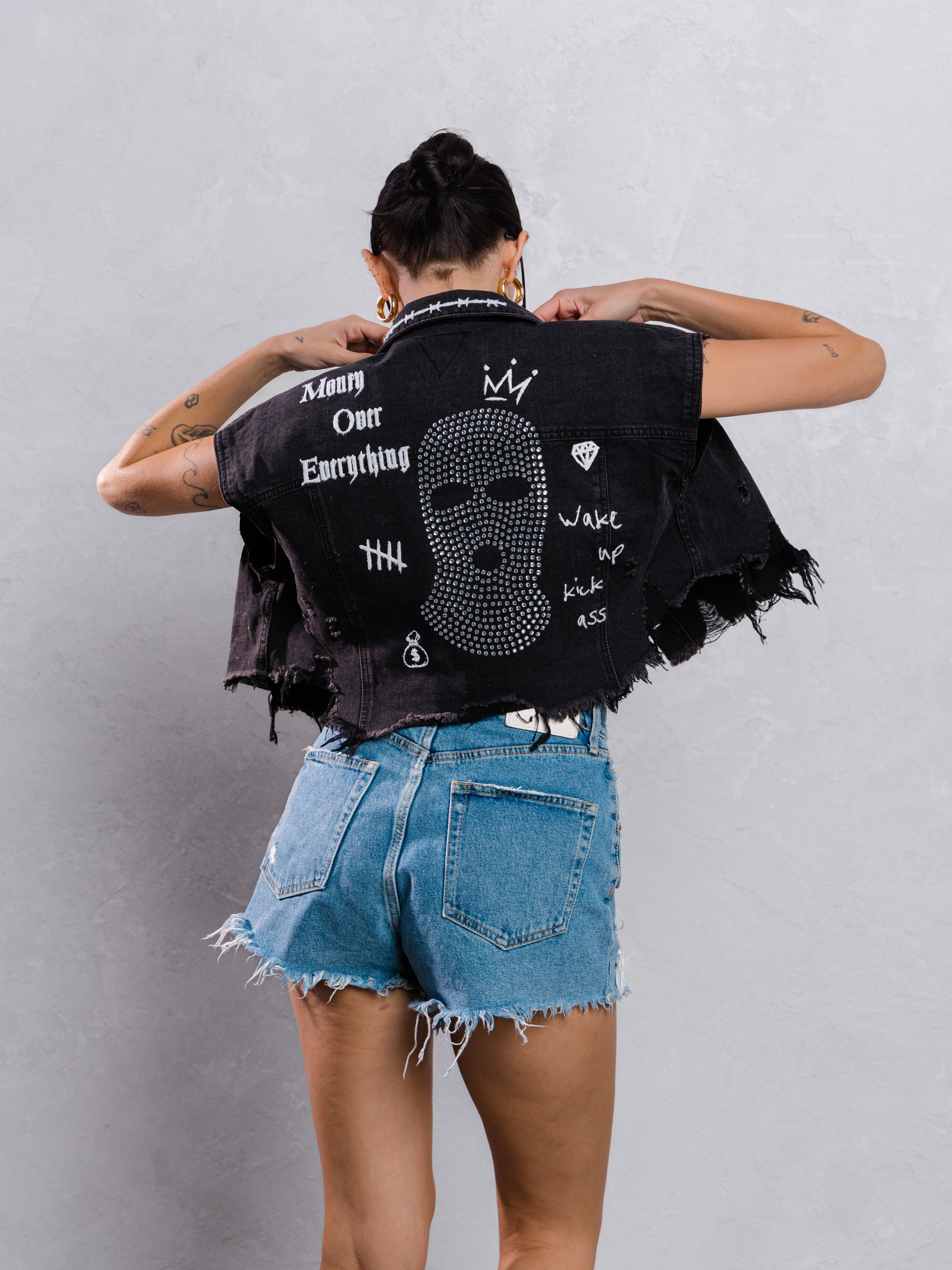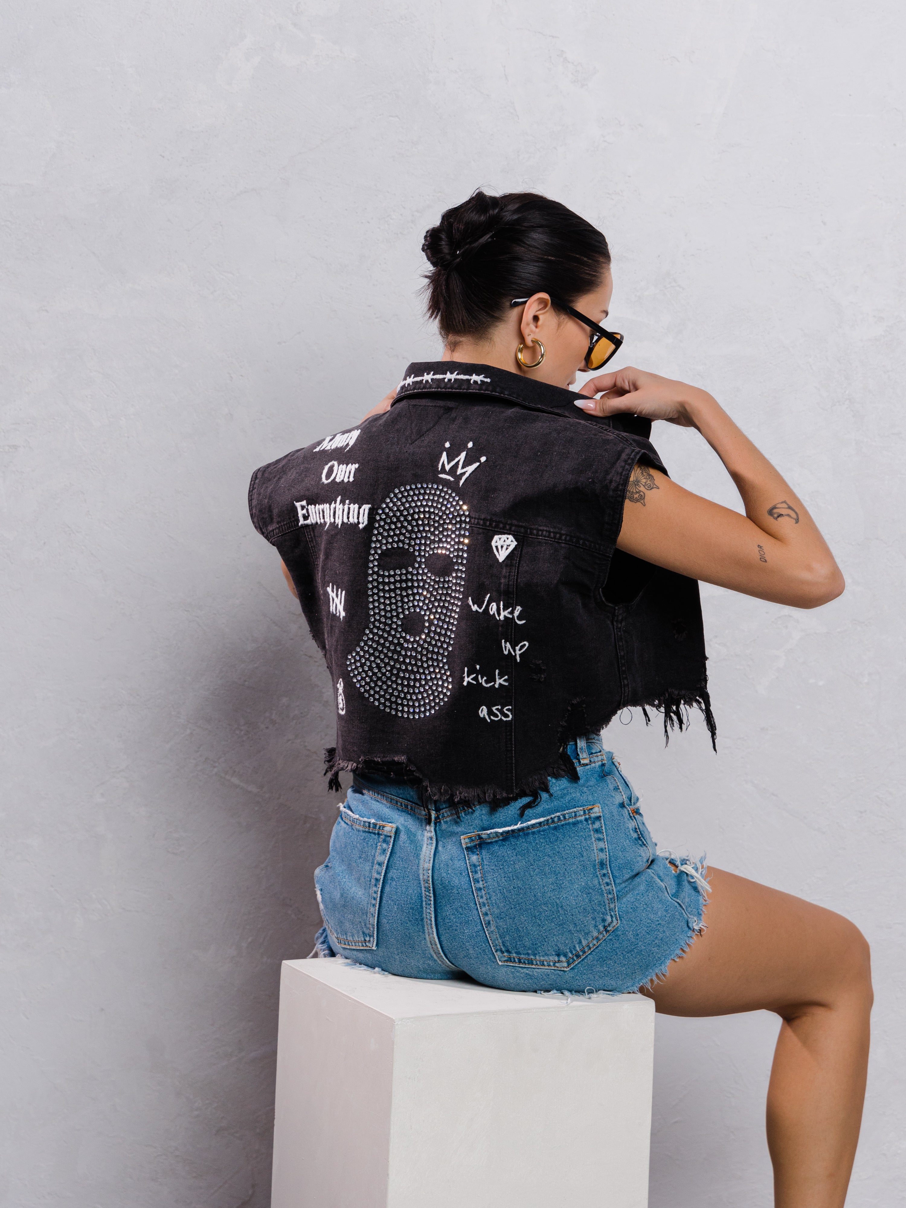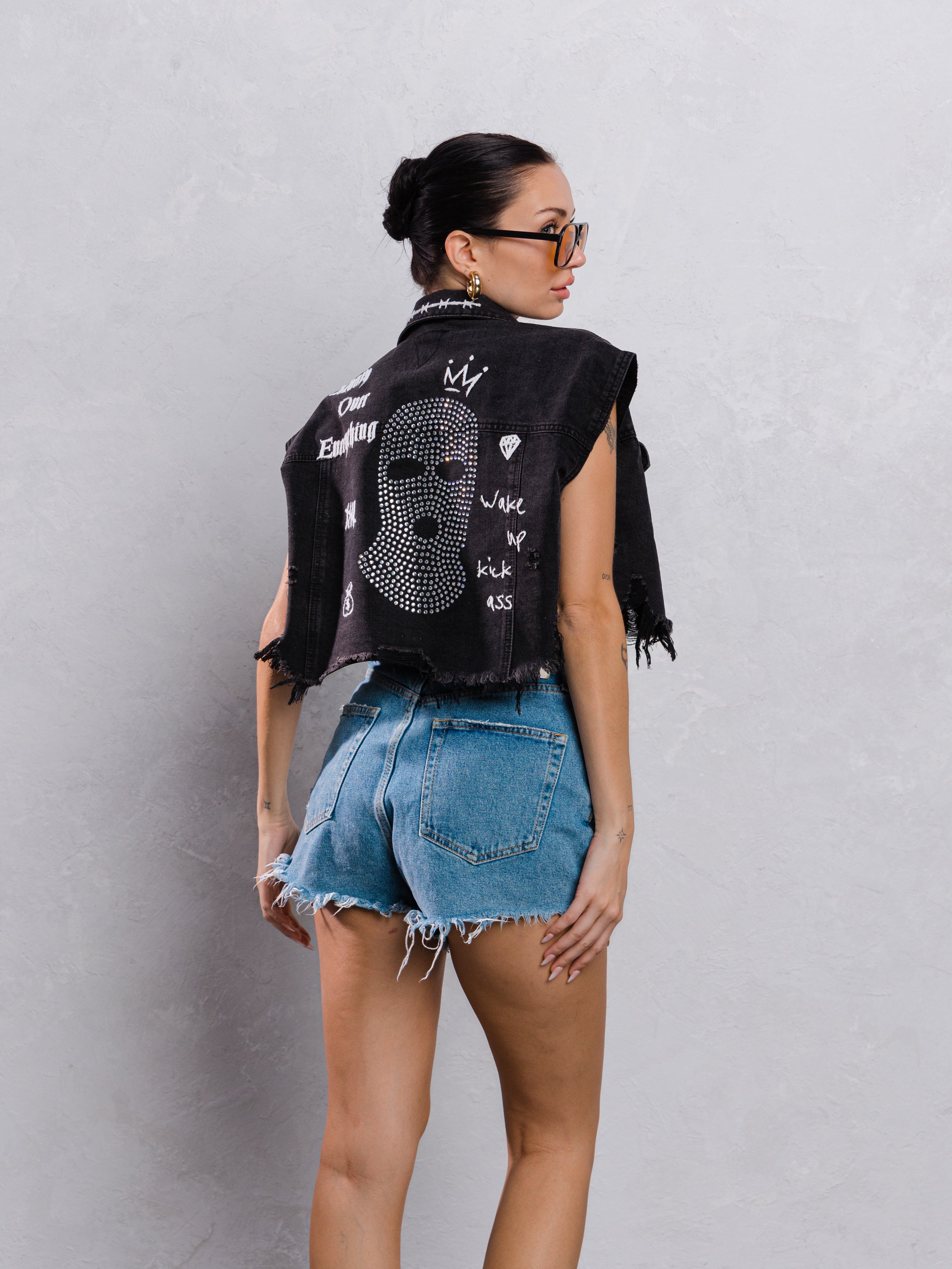 Cropped Distressed Denim Jacket, crafted distressed hemline,