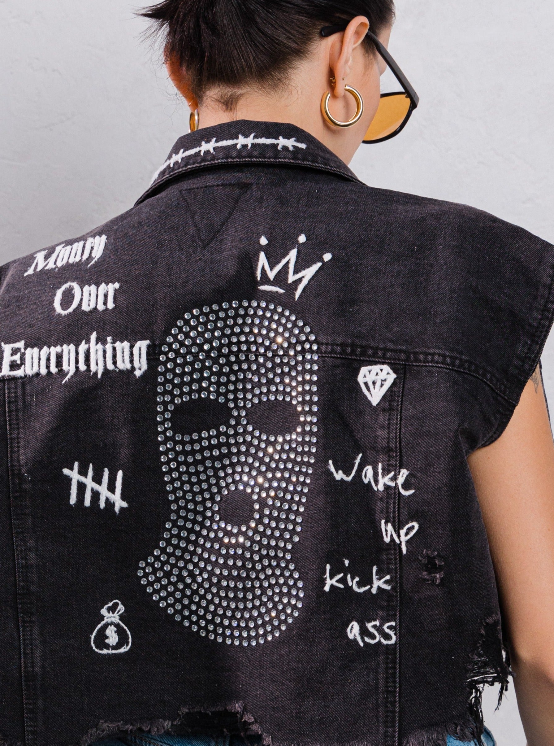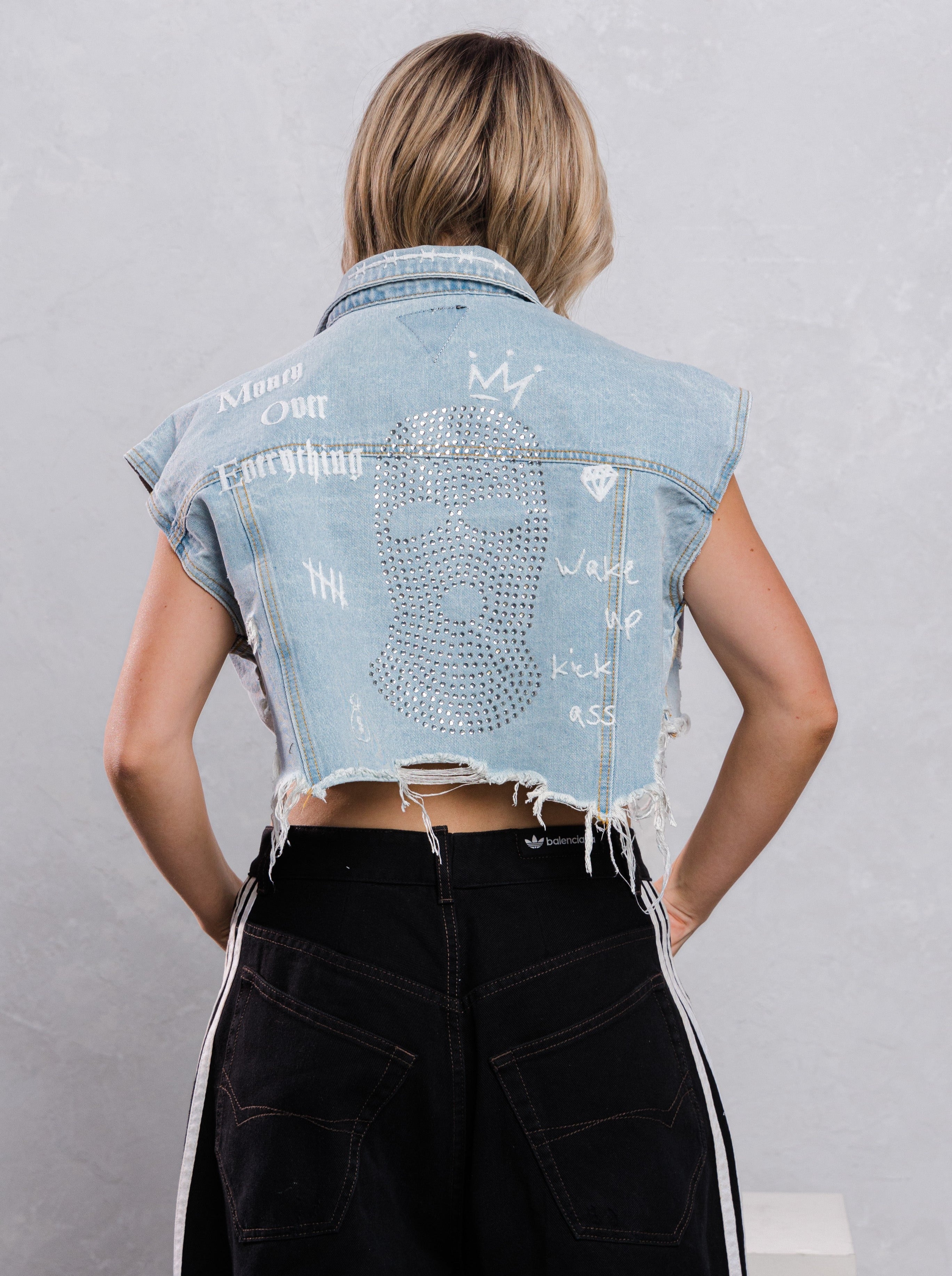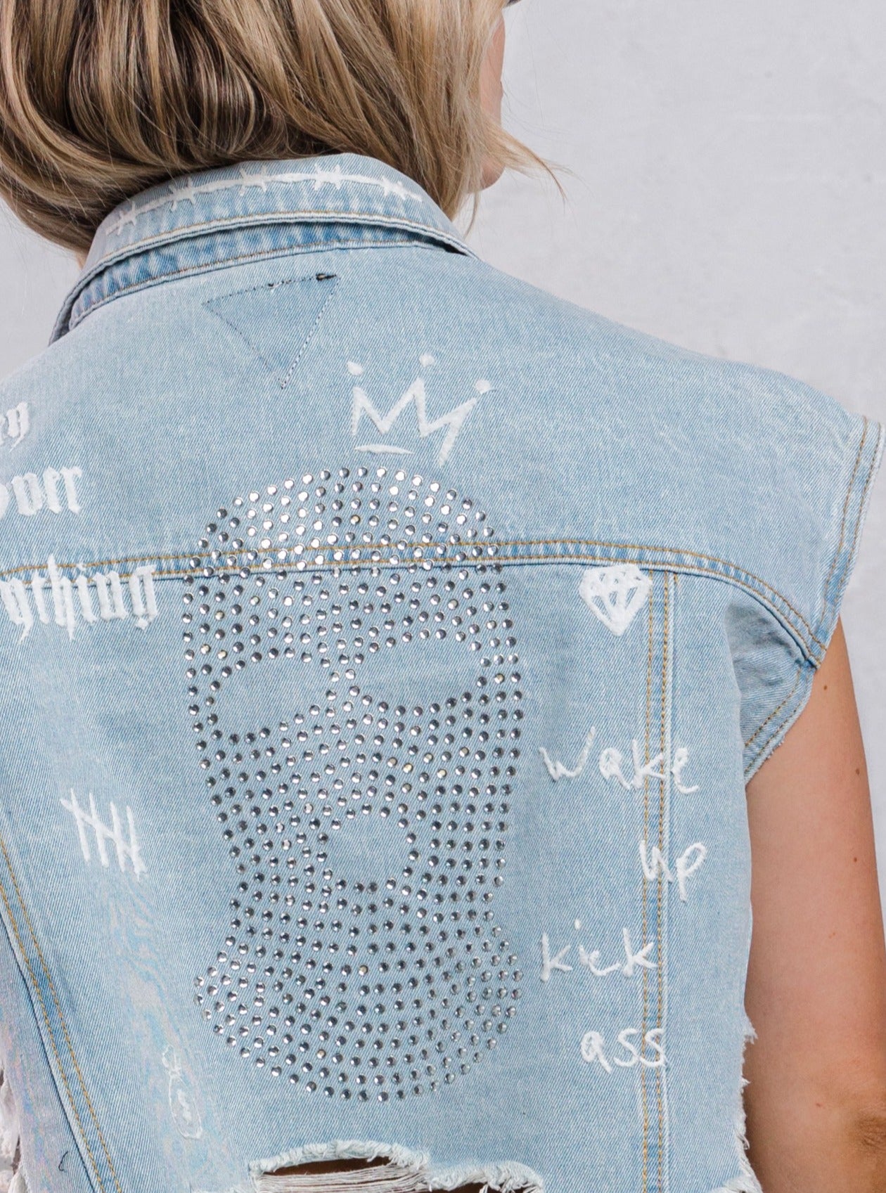 Cropped Distressed Denim Jacket, crafted distressed hemline,
