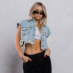 CALI LOVE Crop Denim Vest