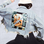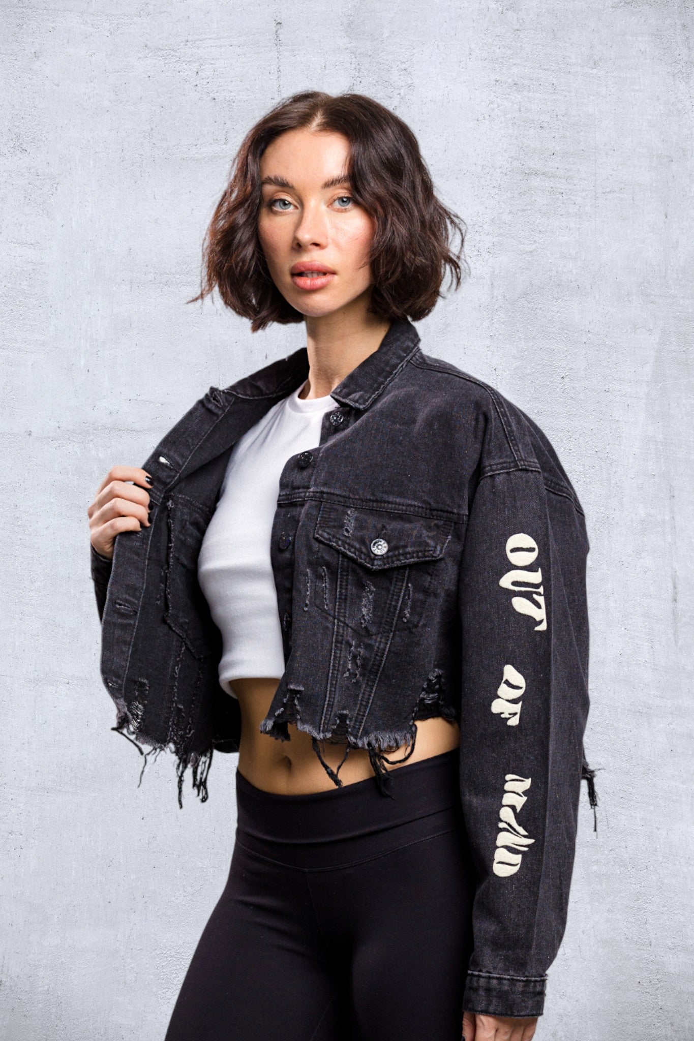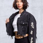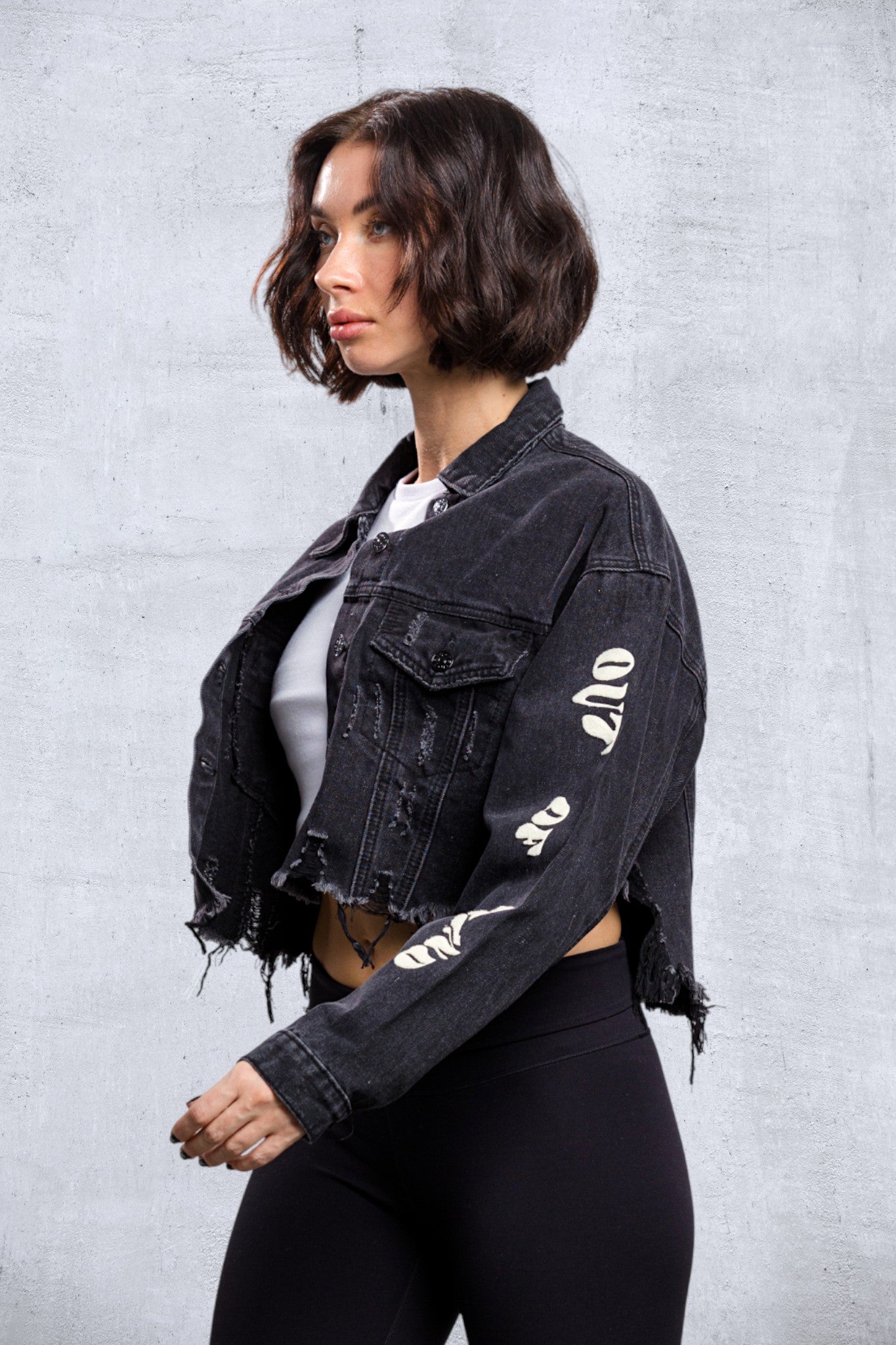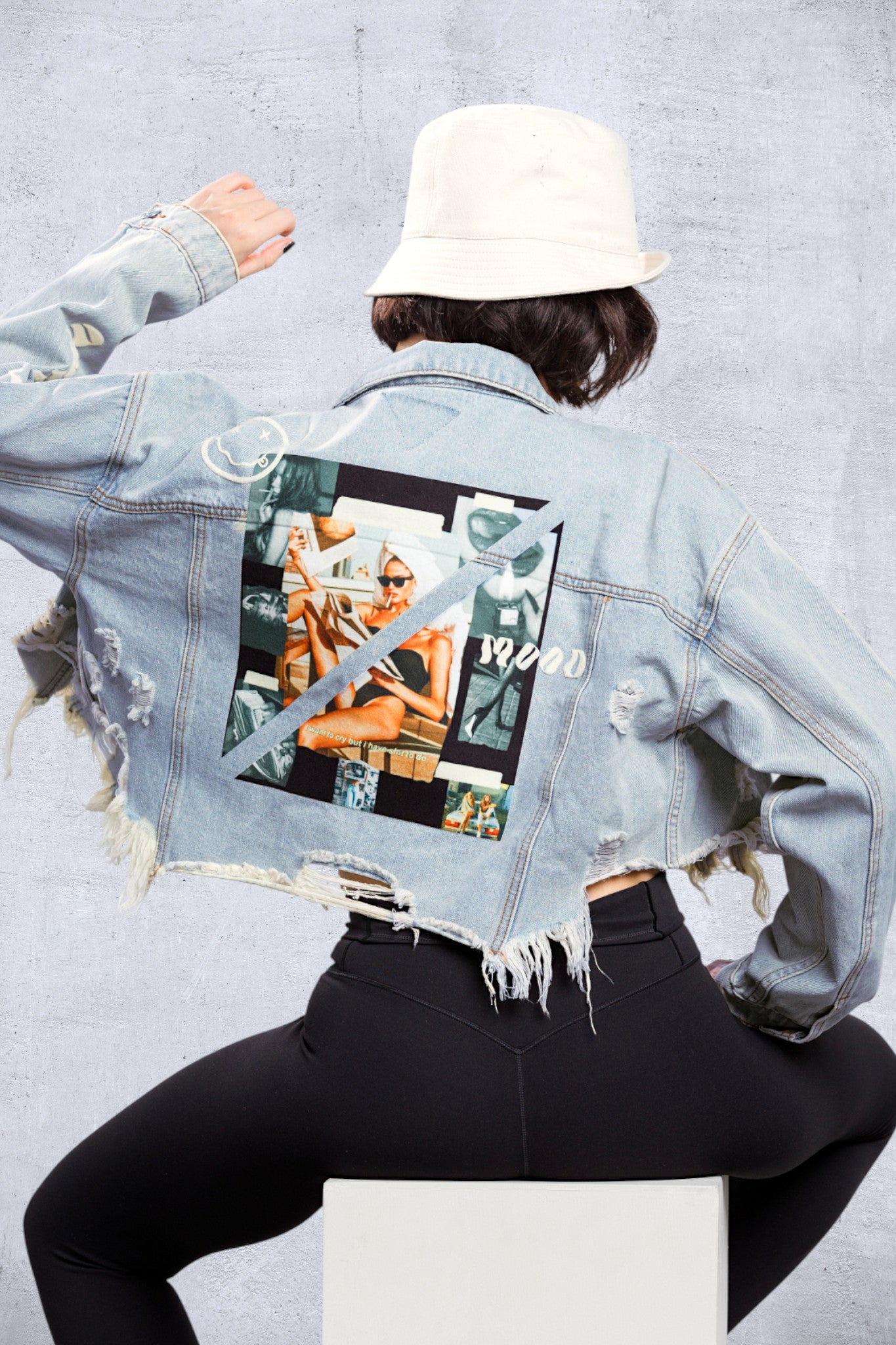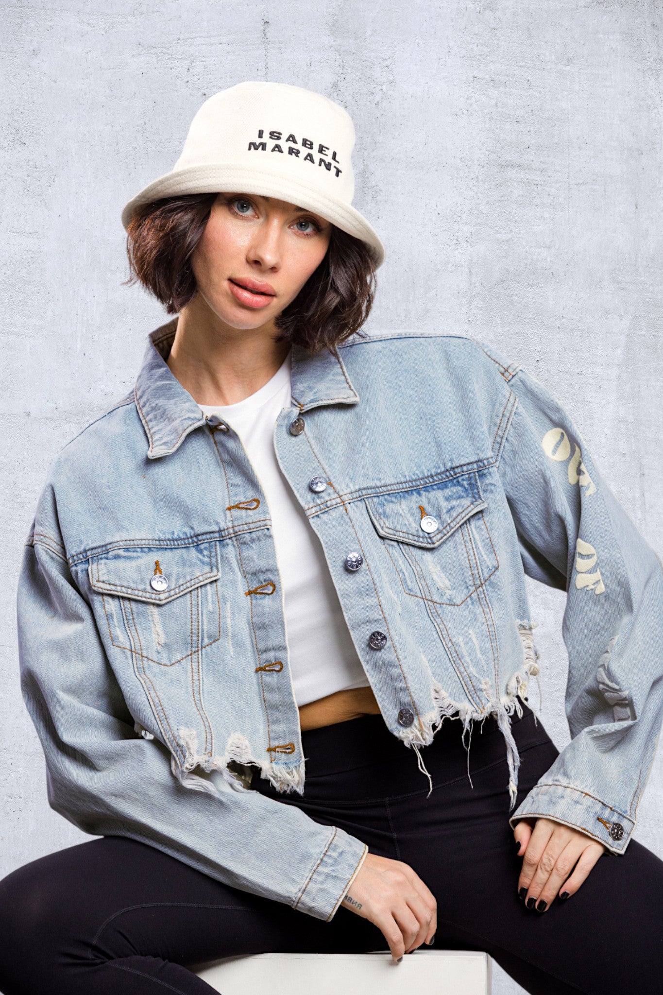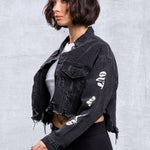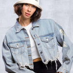 Cropped Distressed Denim Jacket, crafted distressed hemline,