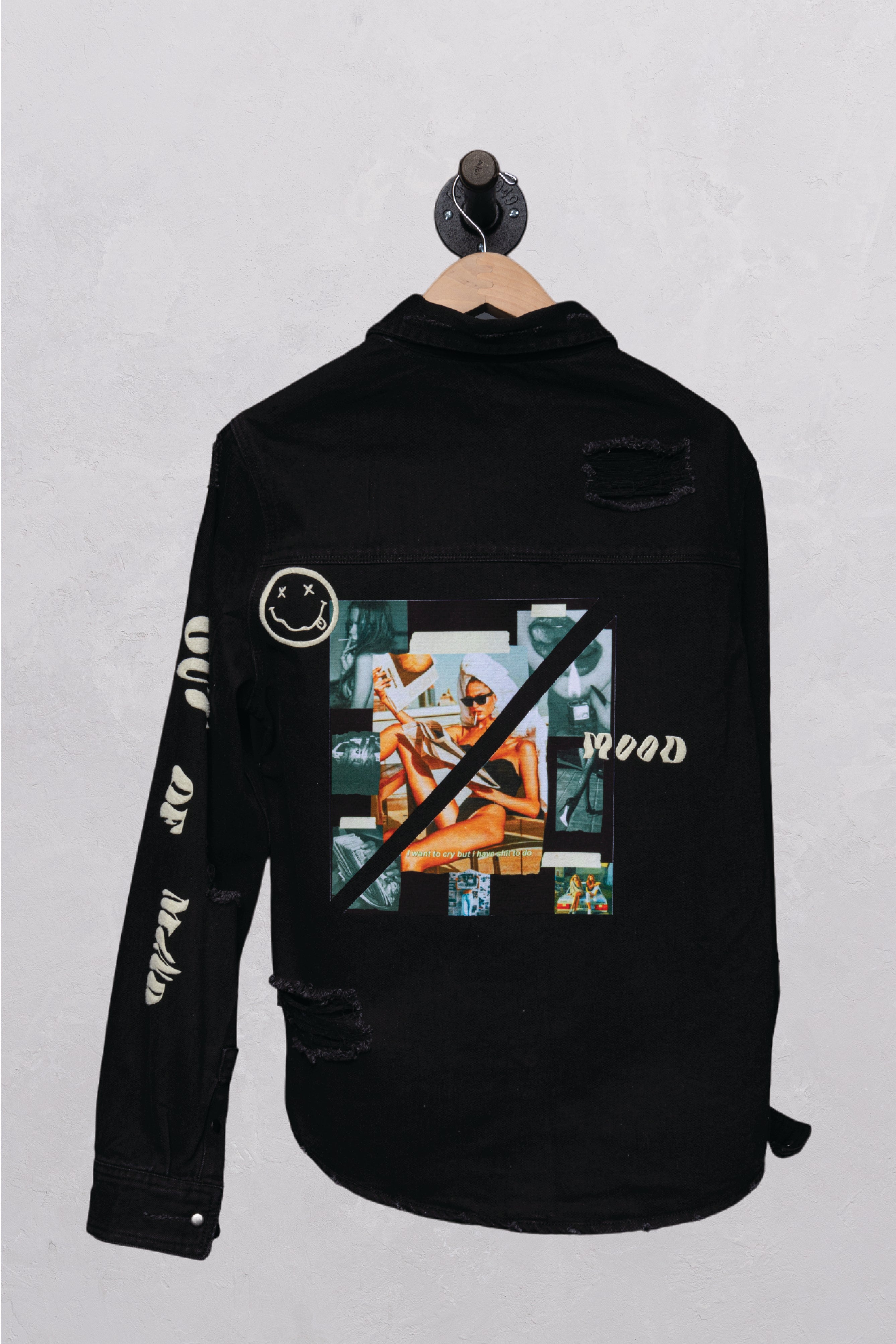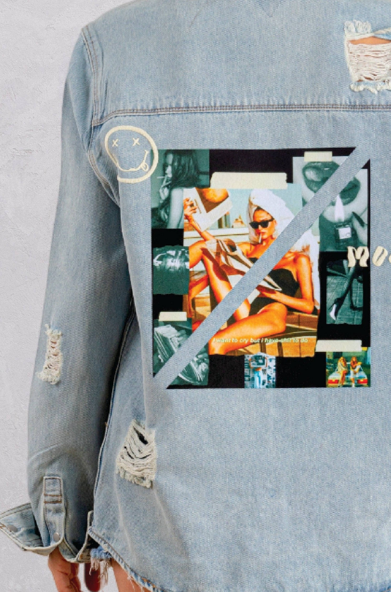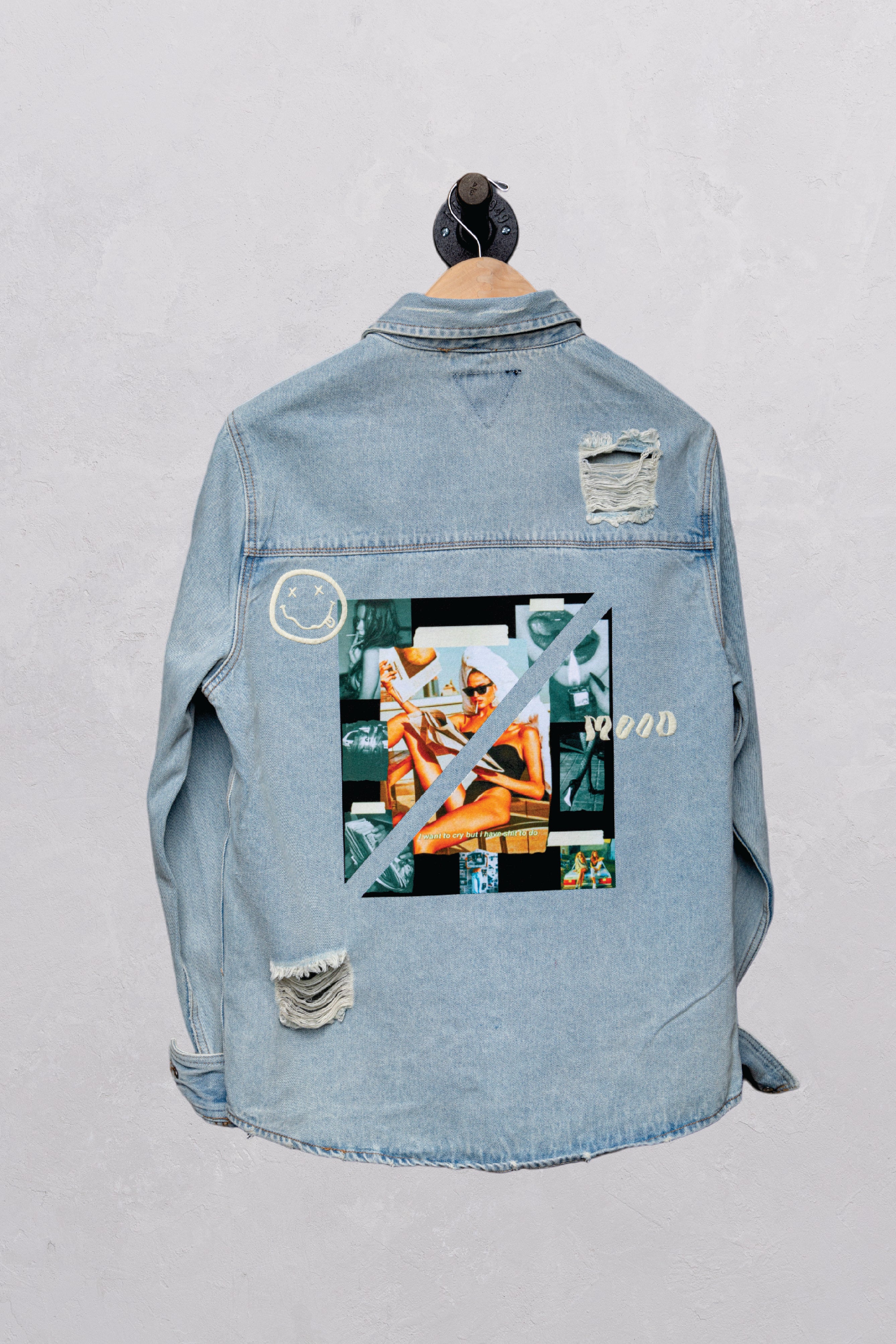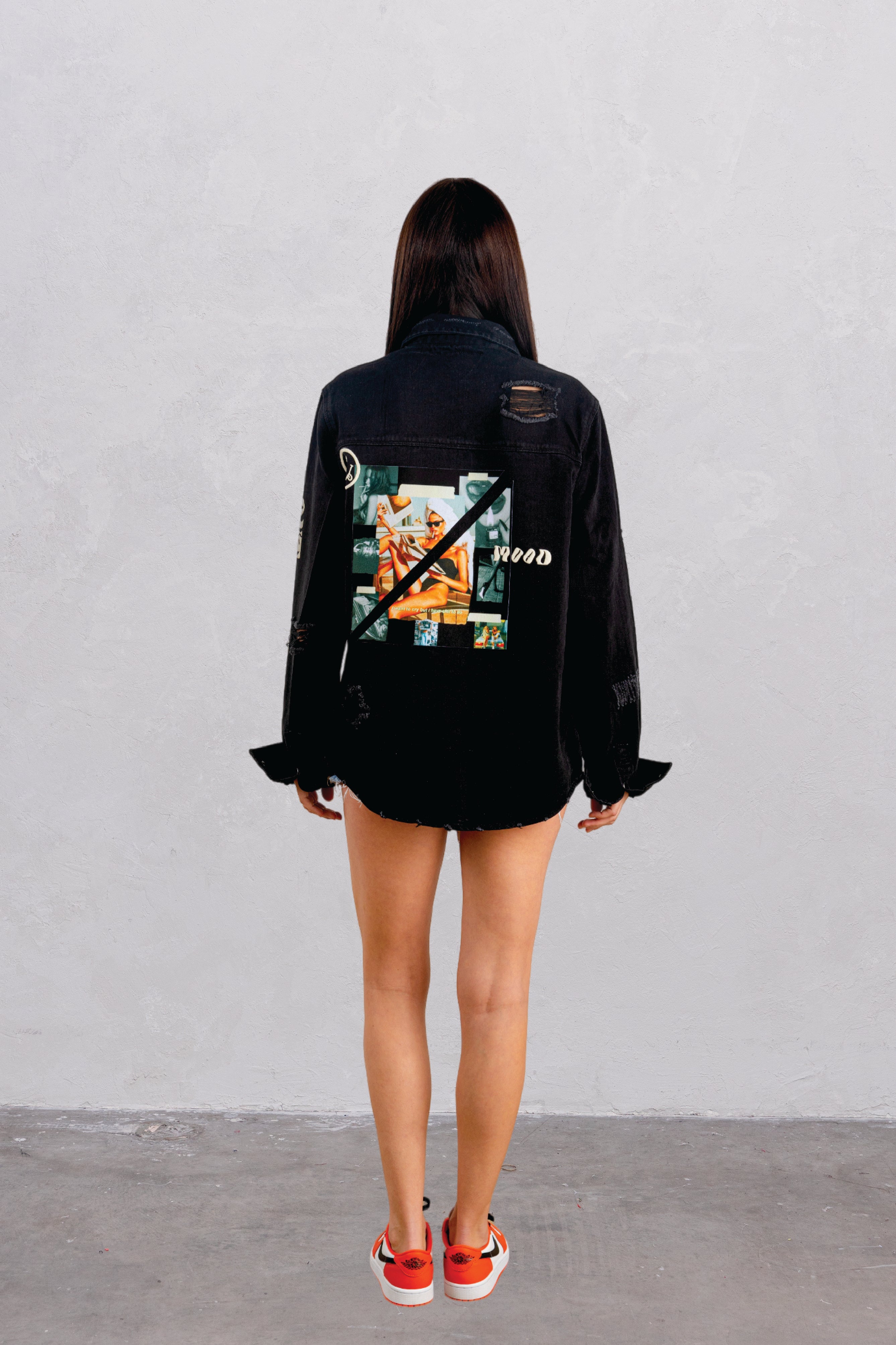 Long Distressed Denim Jacket, crafted distressed hemline,