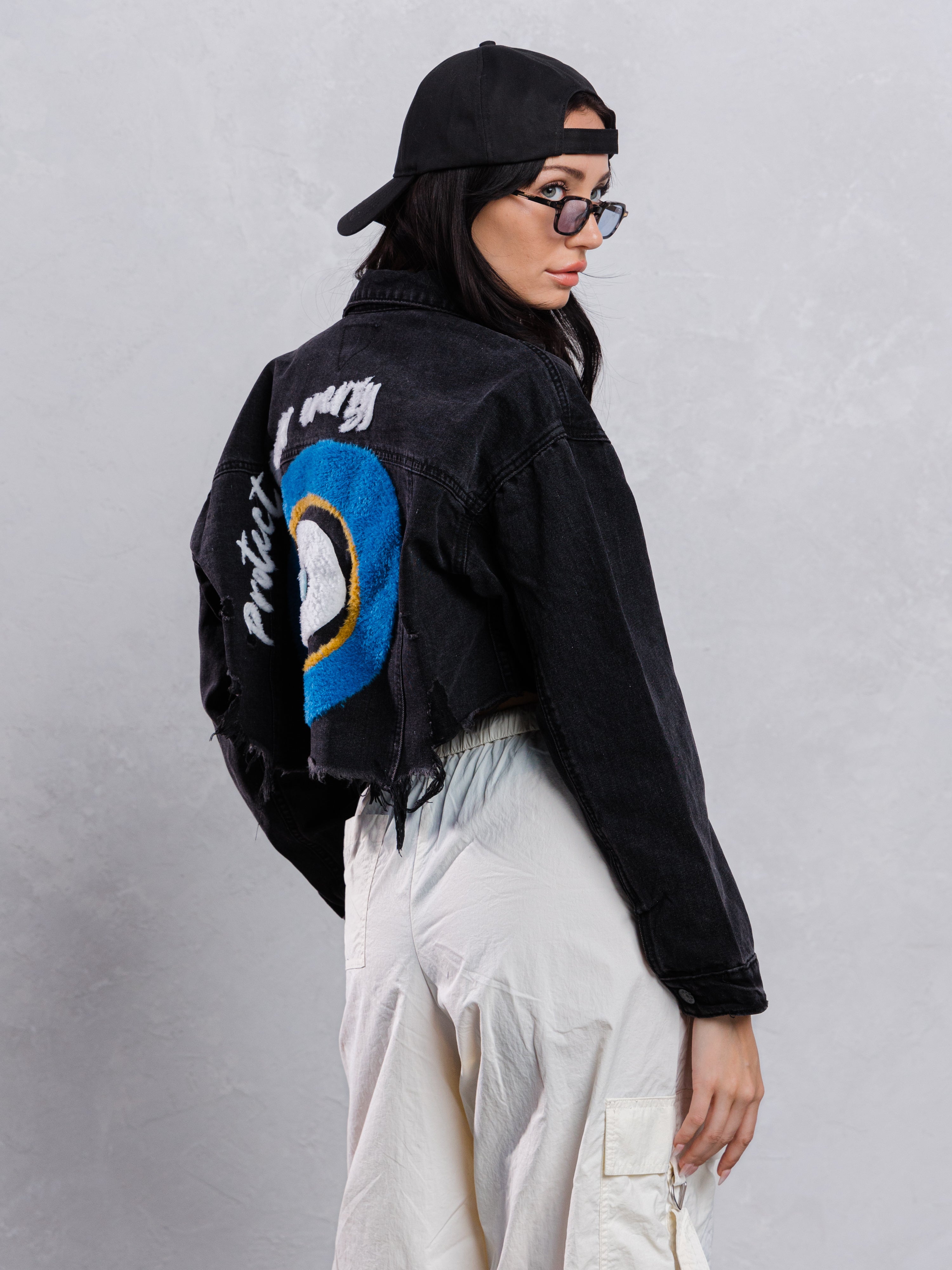 PROTECT YOUR ENERGY Crop Denim Jacket