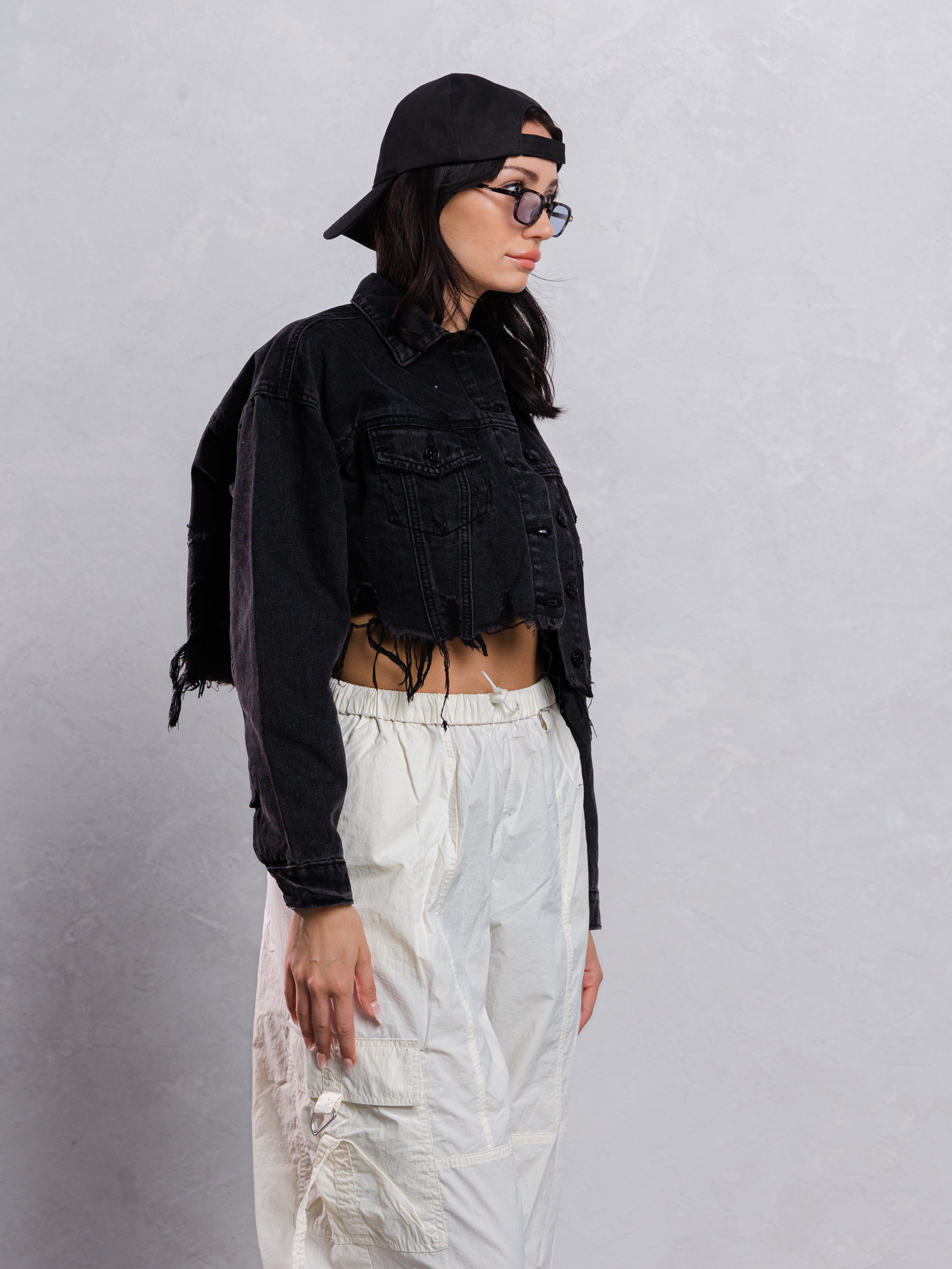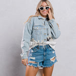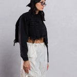 Cropped Distressed Denim Jacket, crafted distressed hemline,