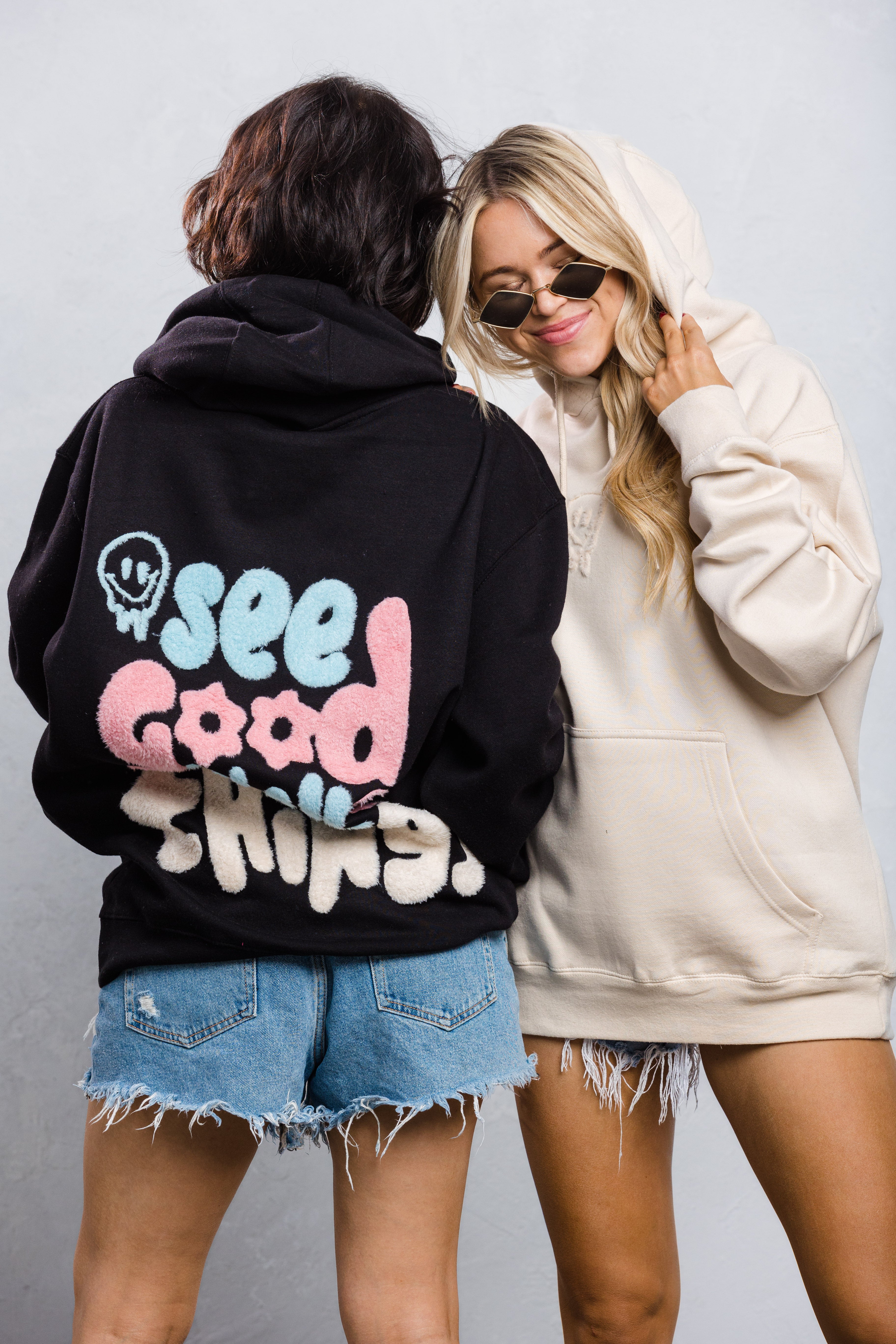 Classic mid-weight hoodie is spun from our premium 3-end fleece,